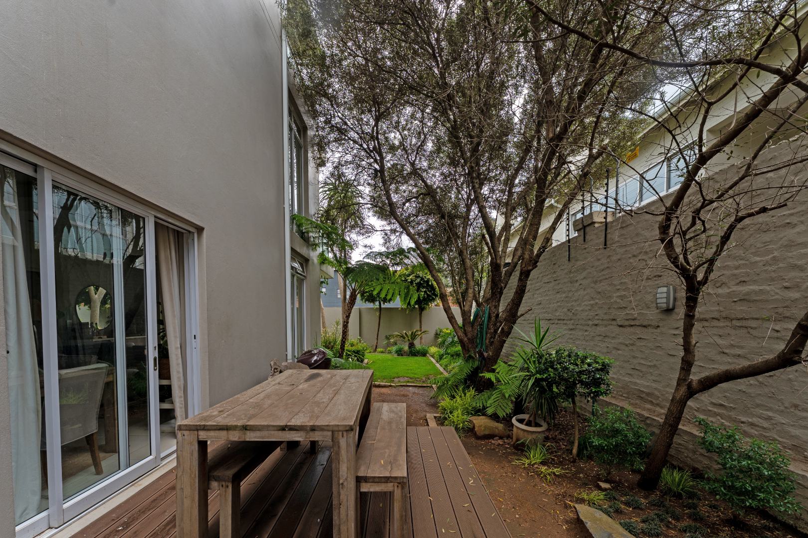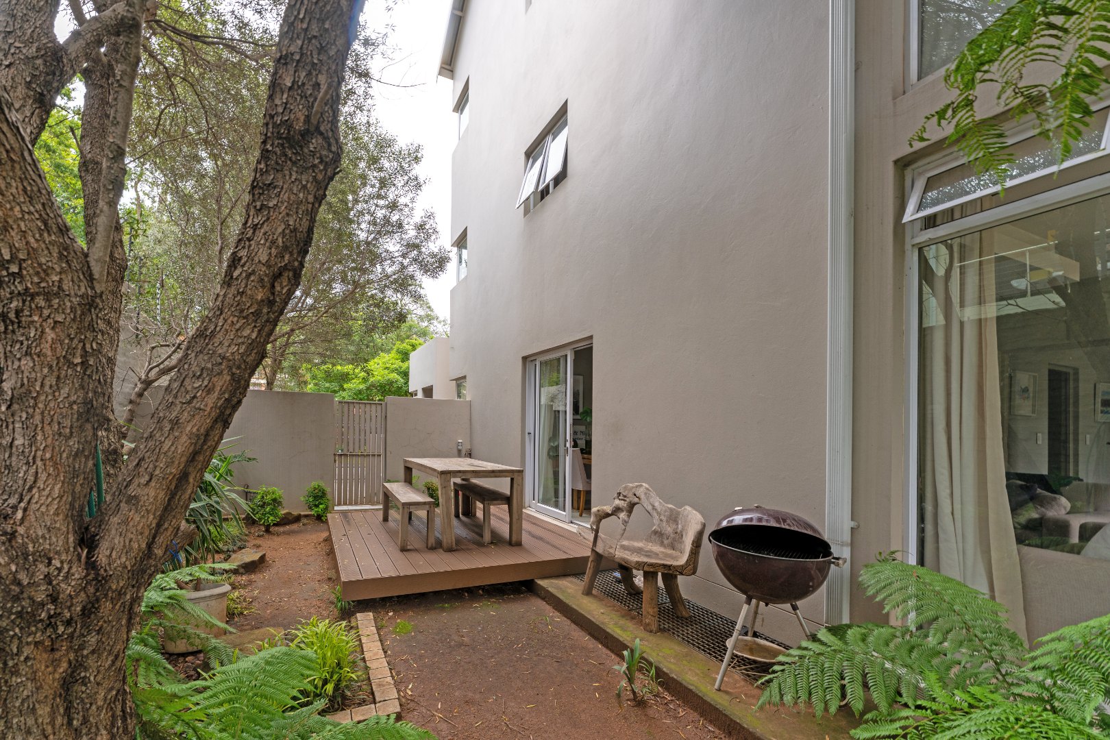 The spacious living area includes a built-in desk, ample room for a large lounge suite and dining table, and a gas fireplace for cozy evenings. Stackable aluminium doors allow natural light to flood the space and open onto an extended undercover patio, ideal for relaxed afternoon lunches with friends and family. The lush garden is complemented by a beautiful wooden deck, offering additional outdoor space for entertaining. There is also space to add a splash pool should you wish to do so in the future.