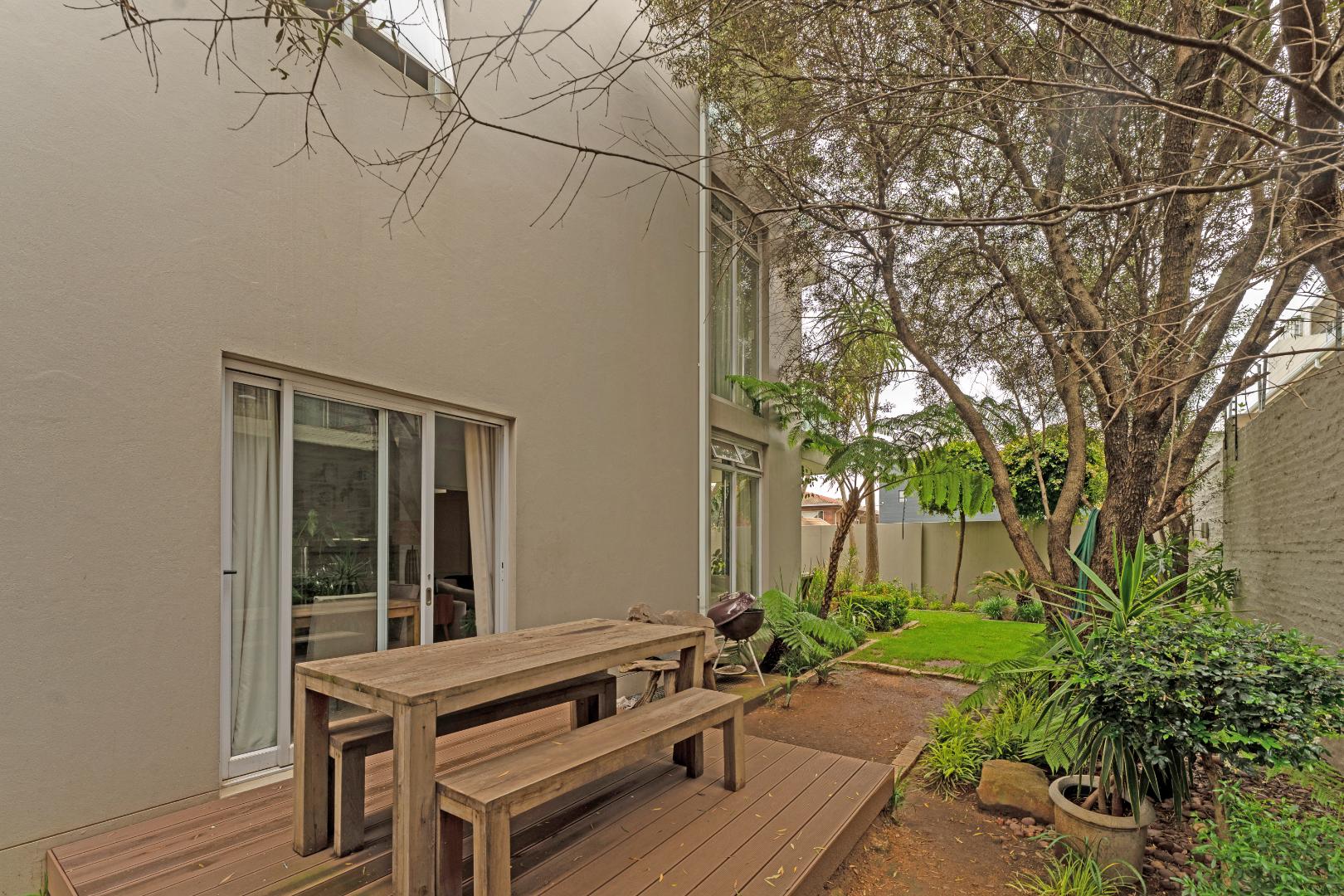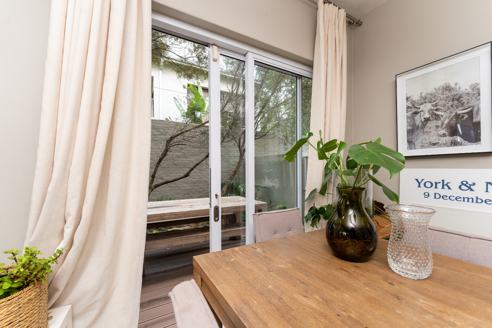 The spacious living area includes a built-in desk, ample room for a large lounge suite and dining table, and a gas fireplace for cozy evenings. Stackable aluminium doors allow natural light to flood the space and open onto an extended undercover patio, ideal for relaxed afternoon lunches with friends and family. The lush garden is complemented by a beautiful wooden deck, offering additional outdoor space for entertaining. There is also space to add a splash pool should you wish to do so in the future.