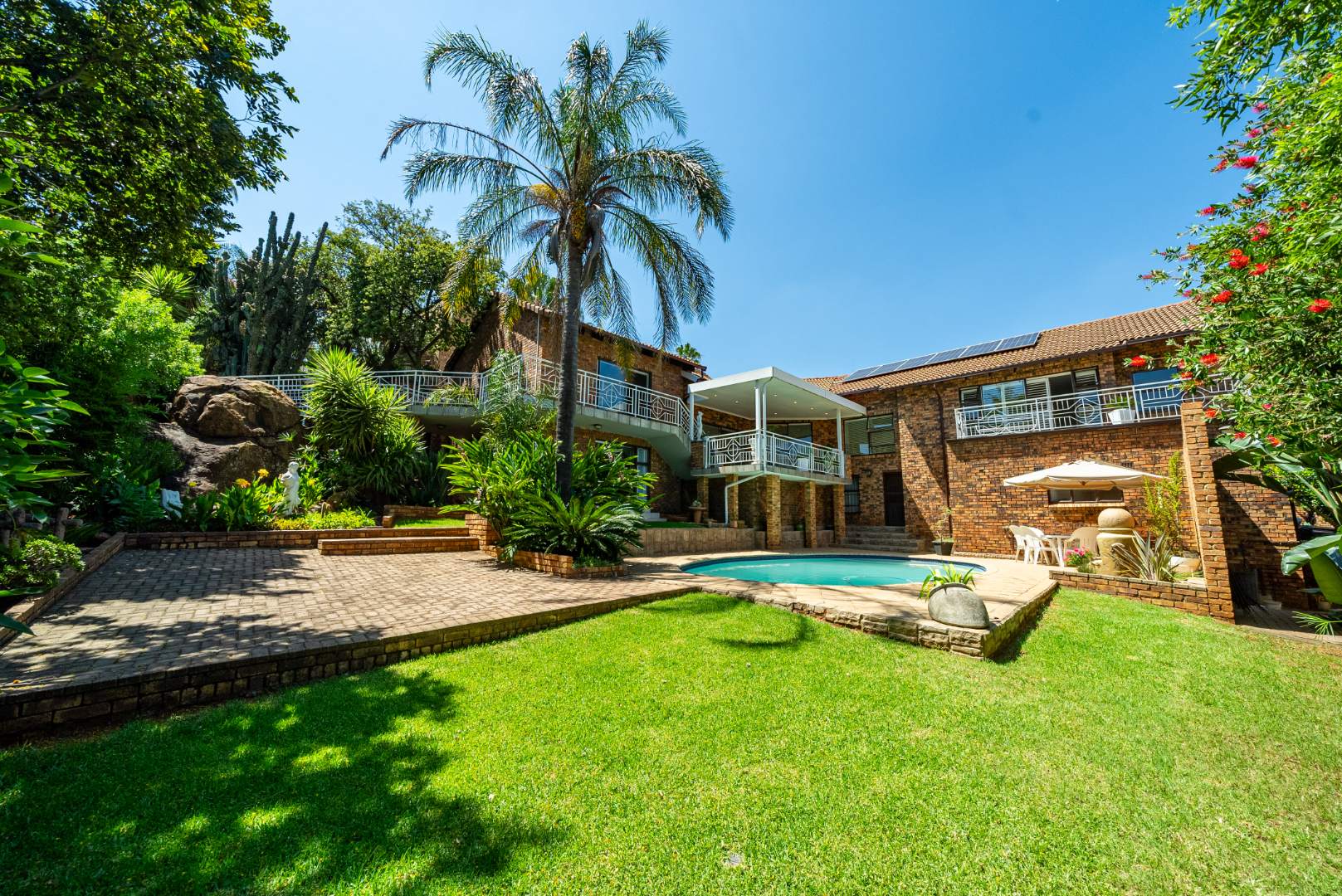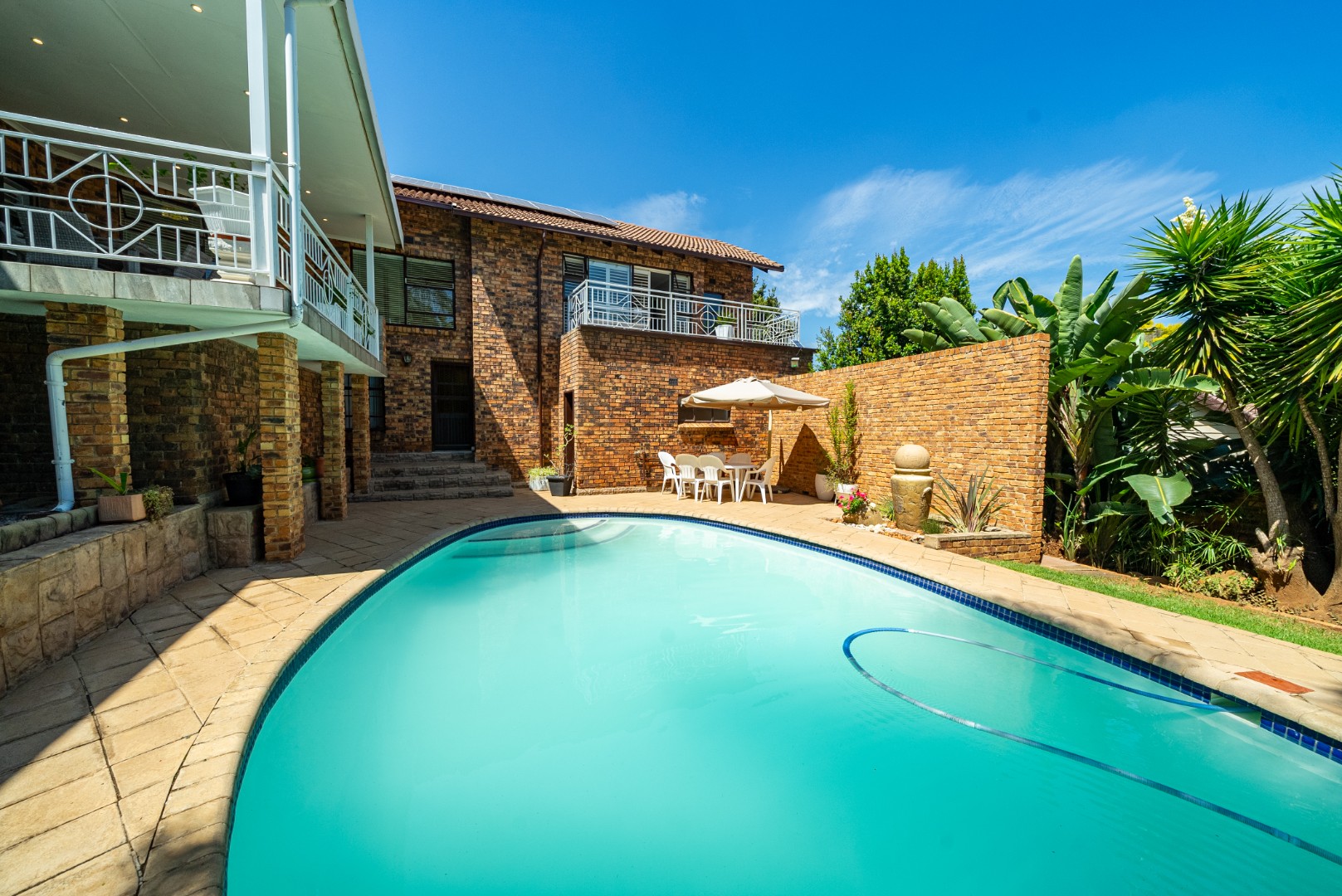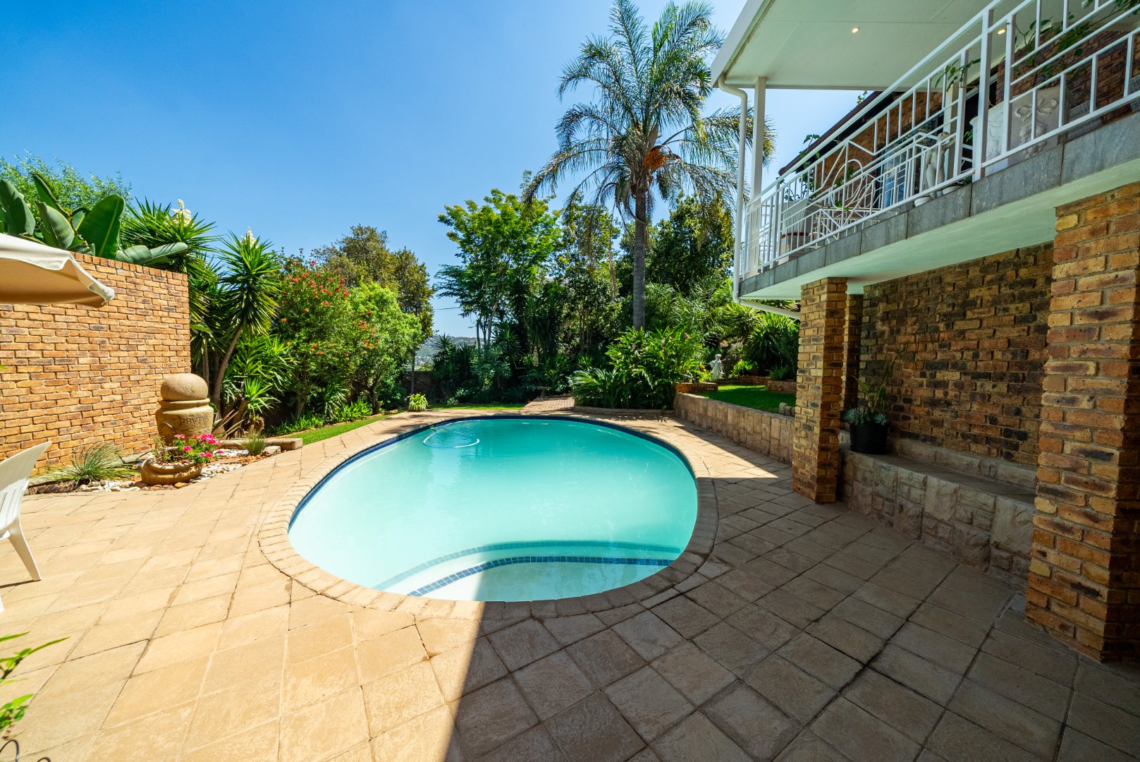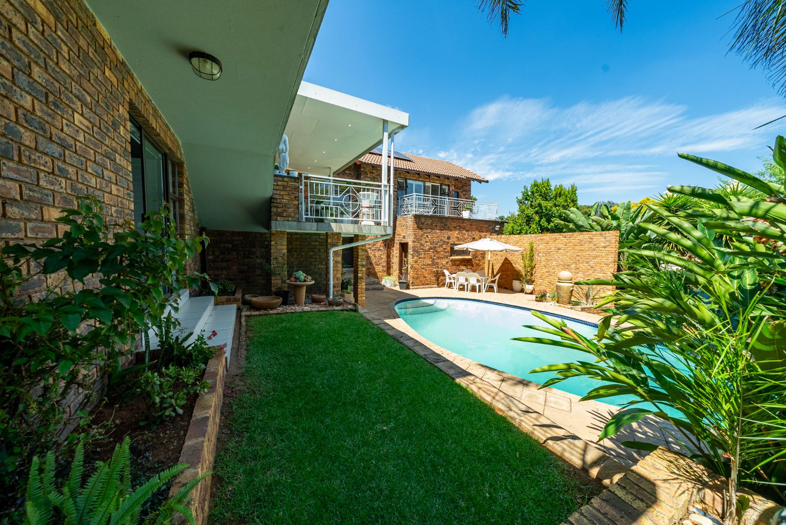 The living areas open out to an incredible outdoor entertainment space overlooking the lush garden and sparkling pool — your private retreat for relaxing weekends and social gatherings. Adding to the convenience is a dedicated pool room with a full bathroom, allowing guests and family to freshen up after enjoying the pool.