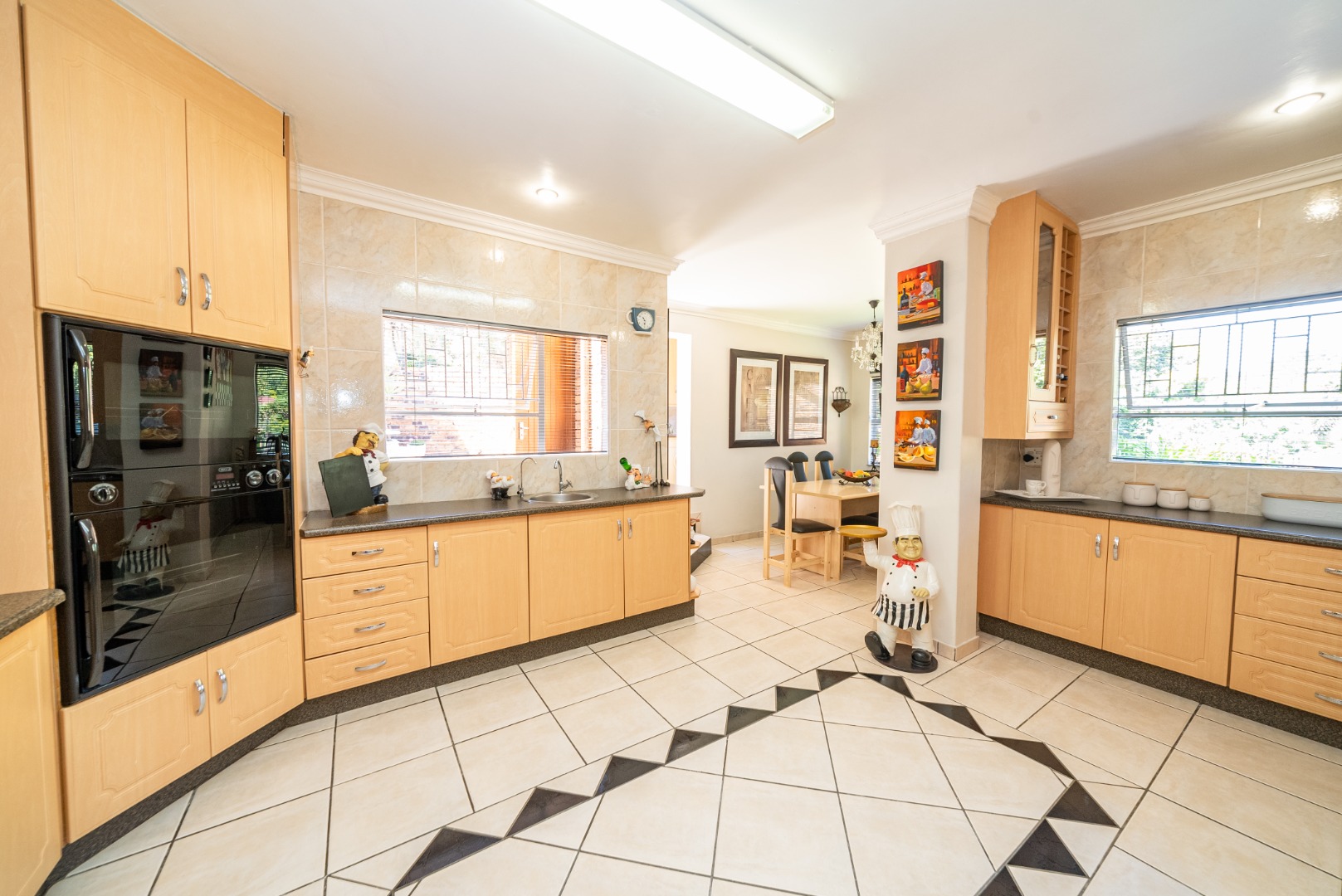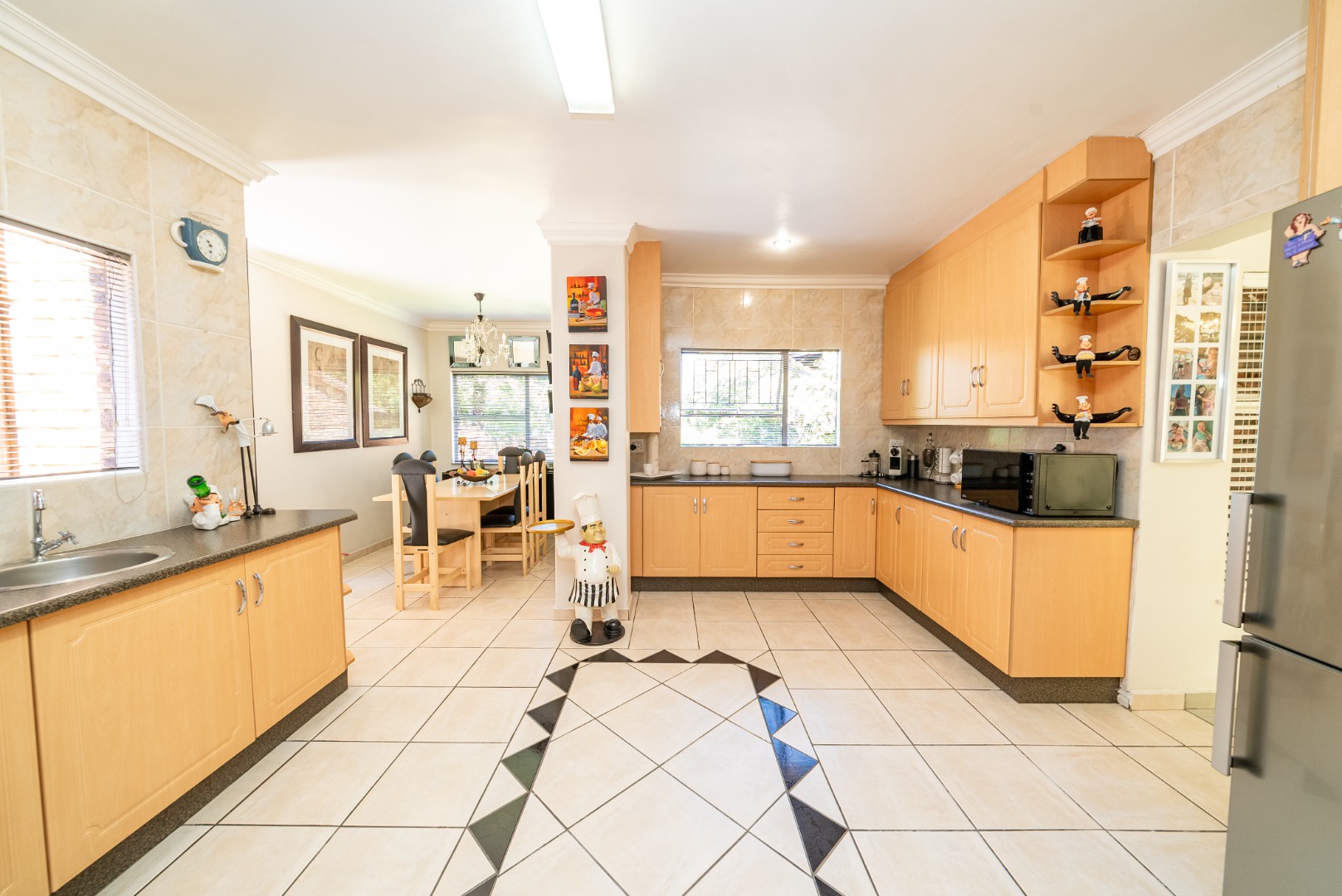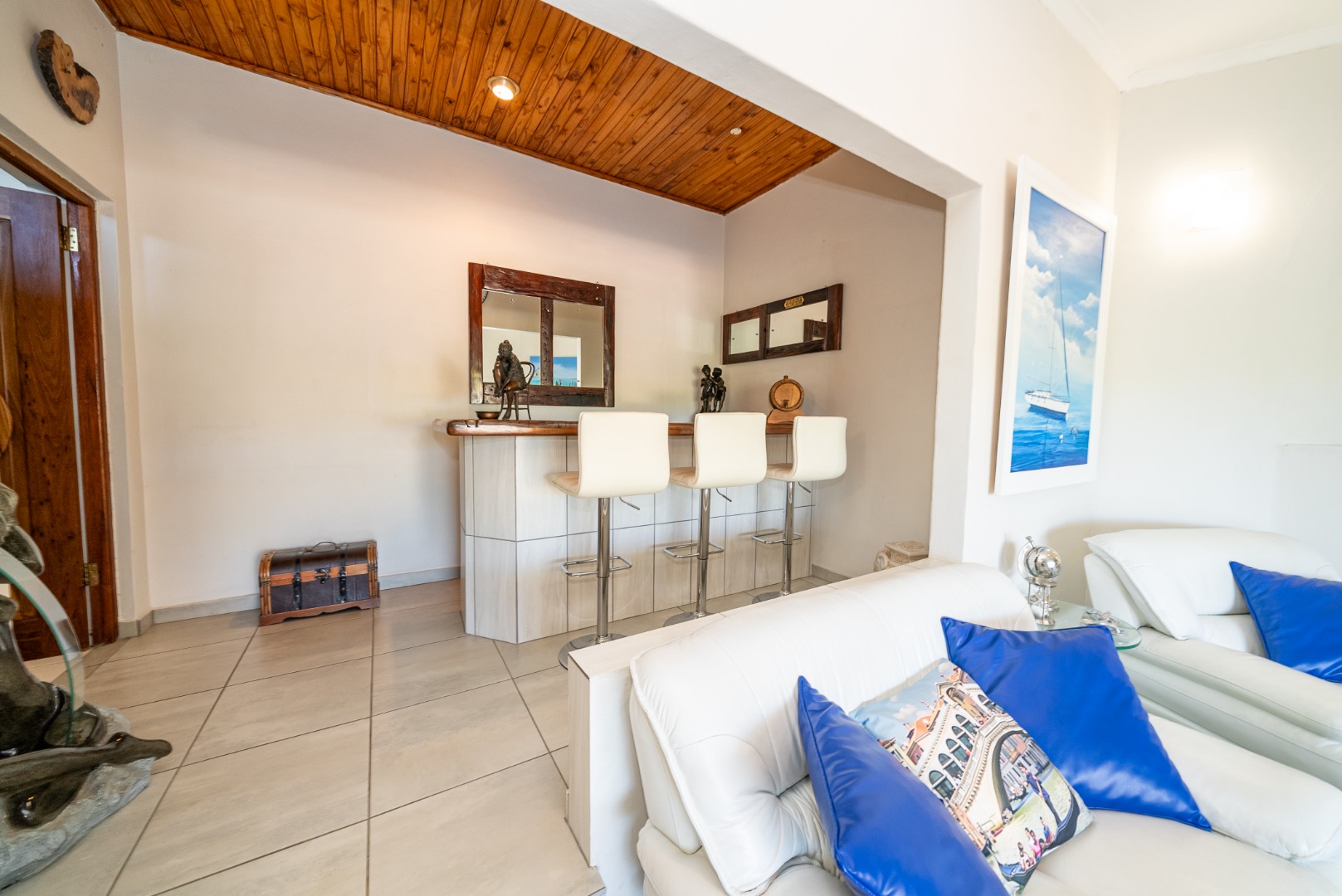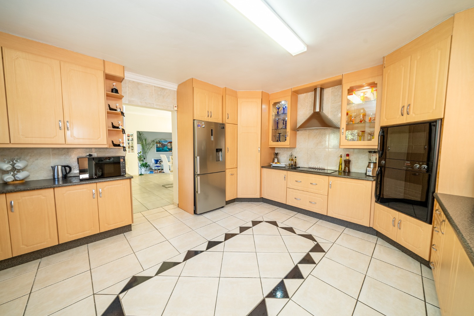 Step into a huge, well-designed kitchen with an offset scullery, offering ample space for cooking and storage while keeping the main kitchen neat and functional. The kitchen flows seamlessly into the lounge and dining area, complete with a built-in bar, creating a warm and inviting atmosphere perfect for hosting guests.