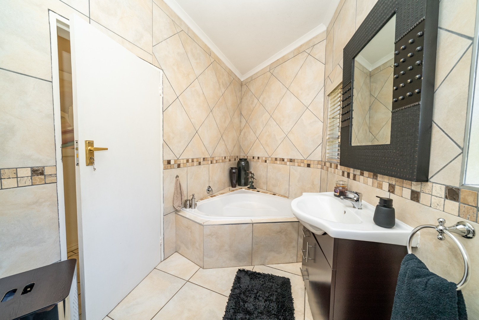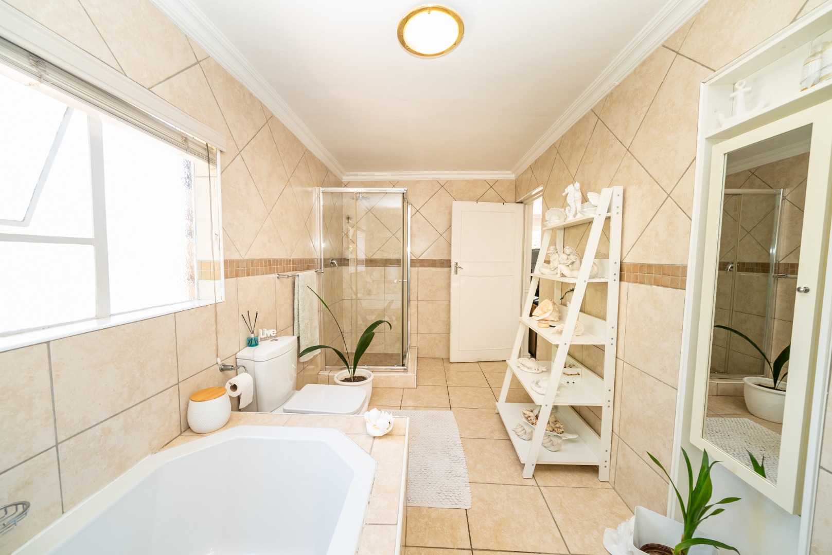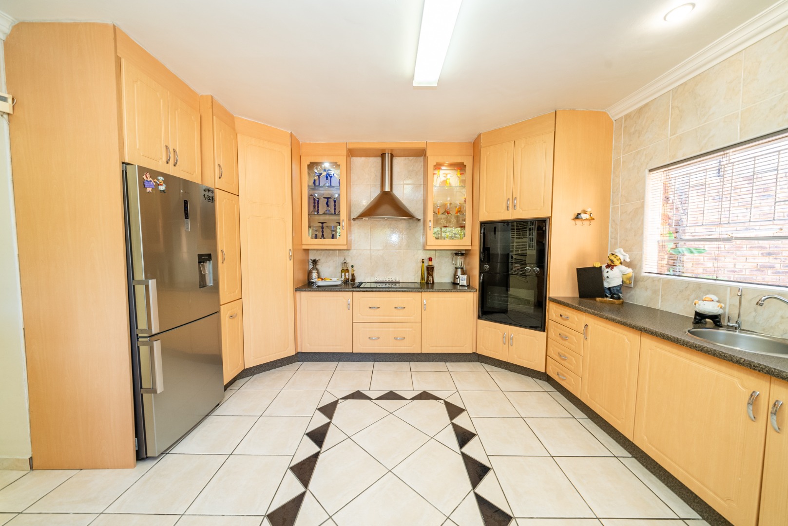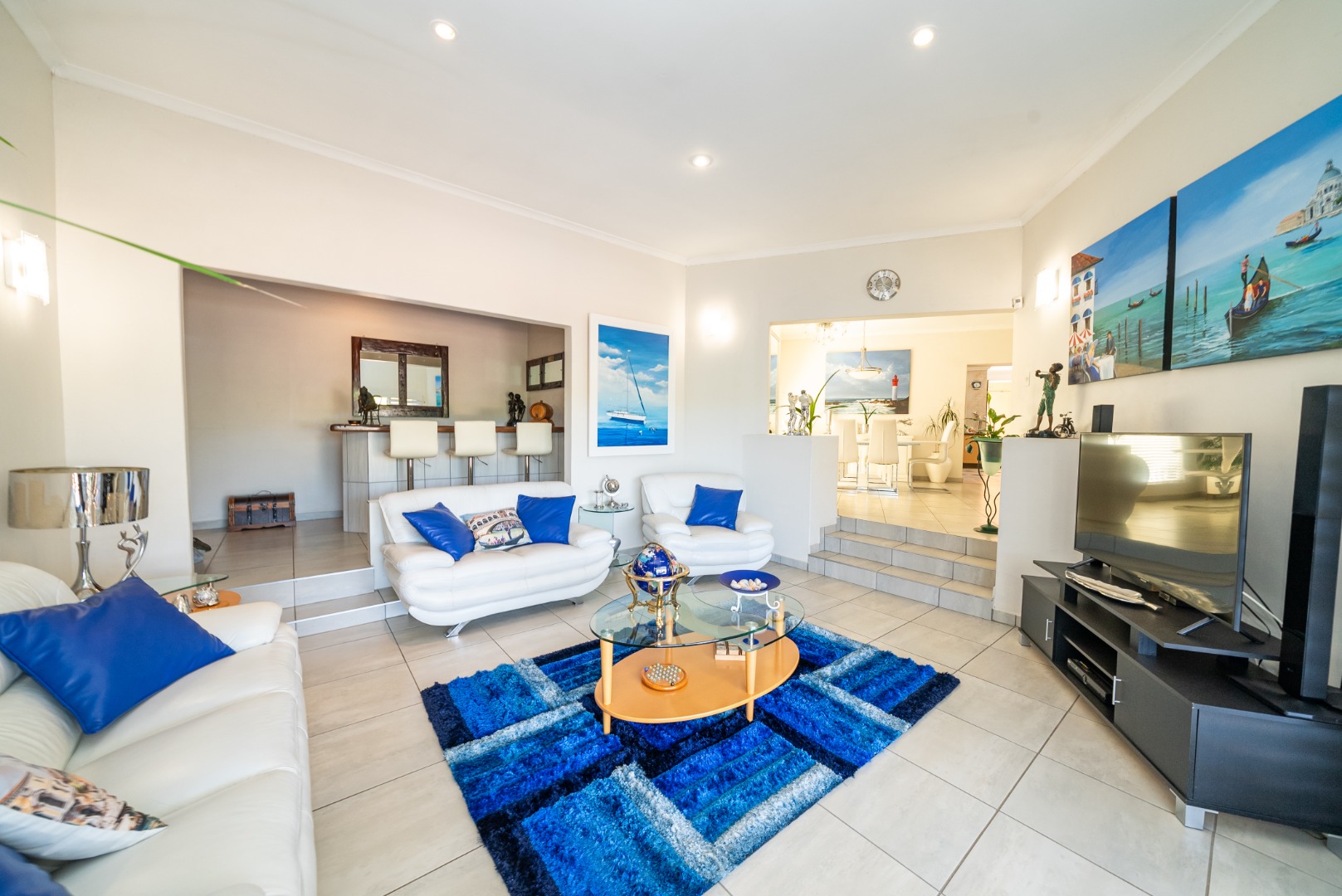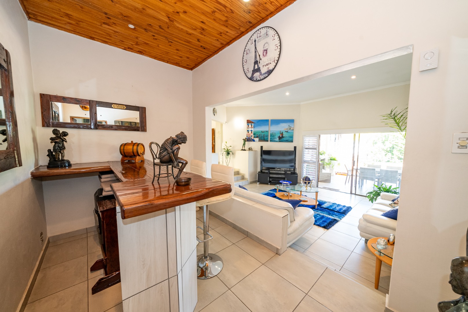 Step into a huge, well-designed kitchen with an offset scullery, offering ample space for cooking and storage while keeping the main kitchen neat and functional. The kitchen flows seamlessly into the lounge and dining area, complete with a built-in bar, creating a warm and inviting atmosphere perfect for hosting guests.
