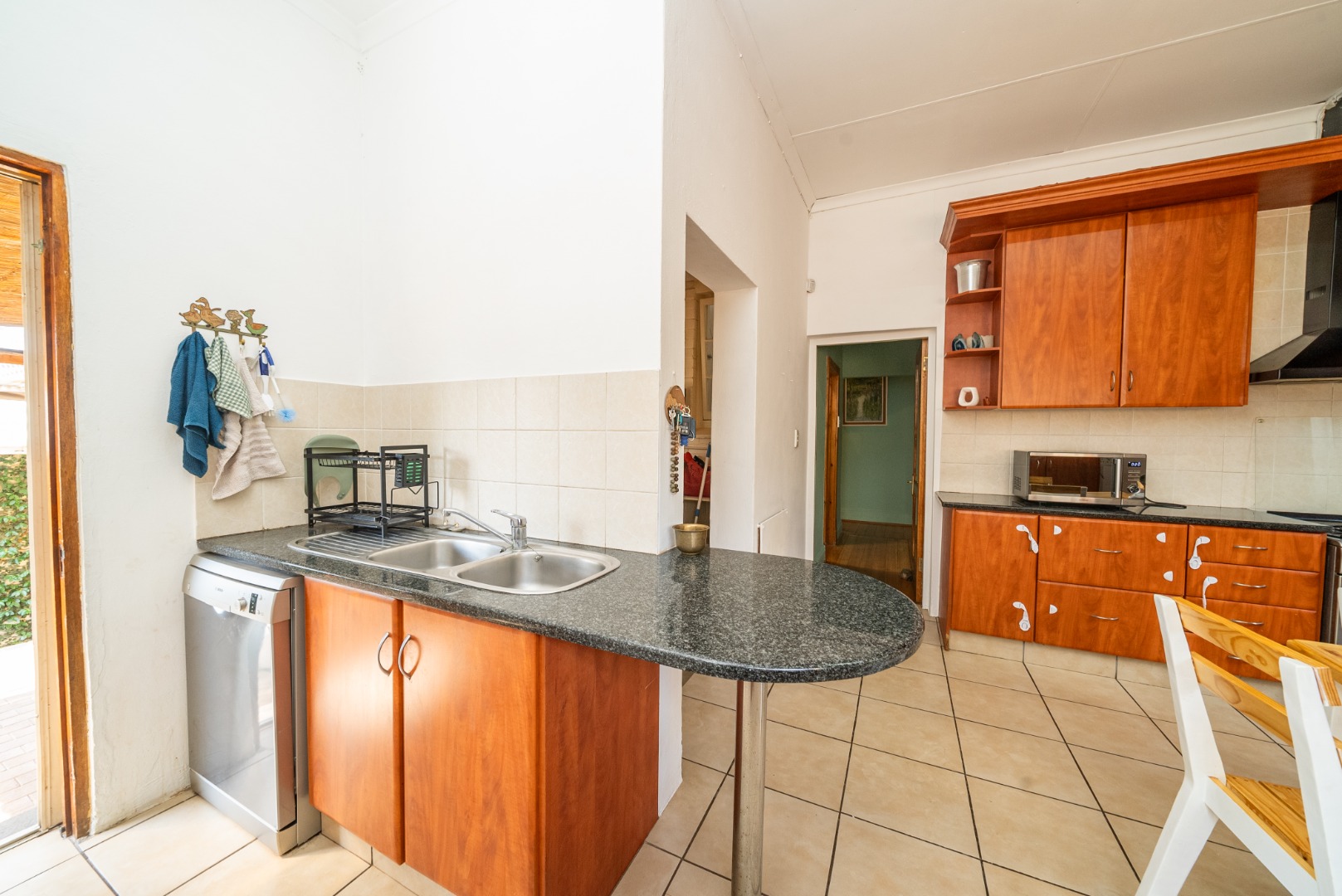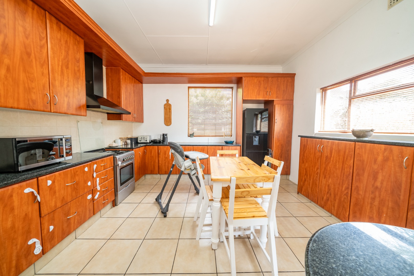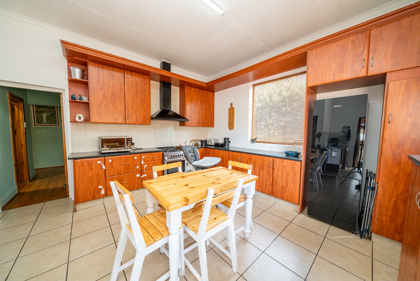 The large kitchen is a chef’s delight, offering a gas stove, ample cupboards, a pantry, and a breakfast nook. A separate scullery accommodates two appliances.