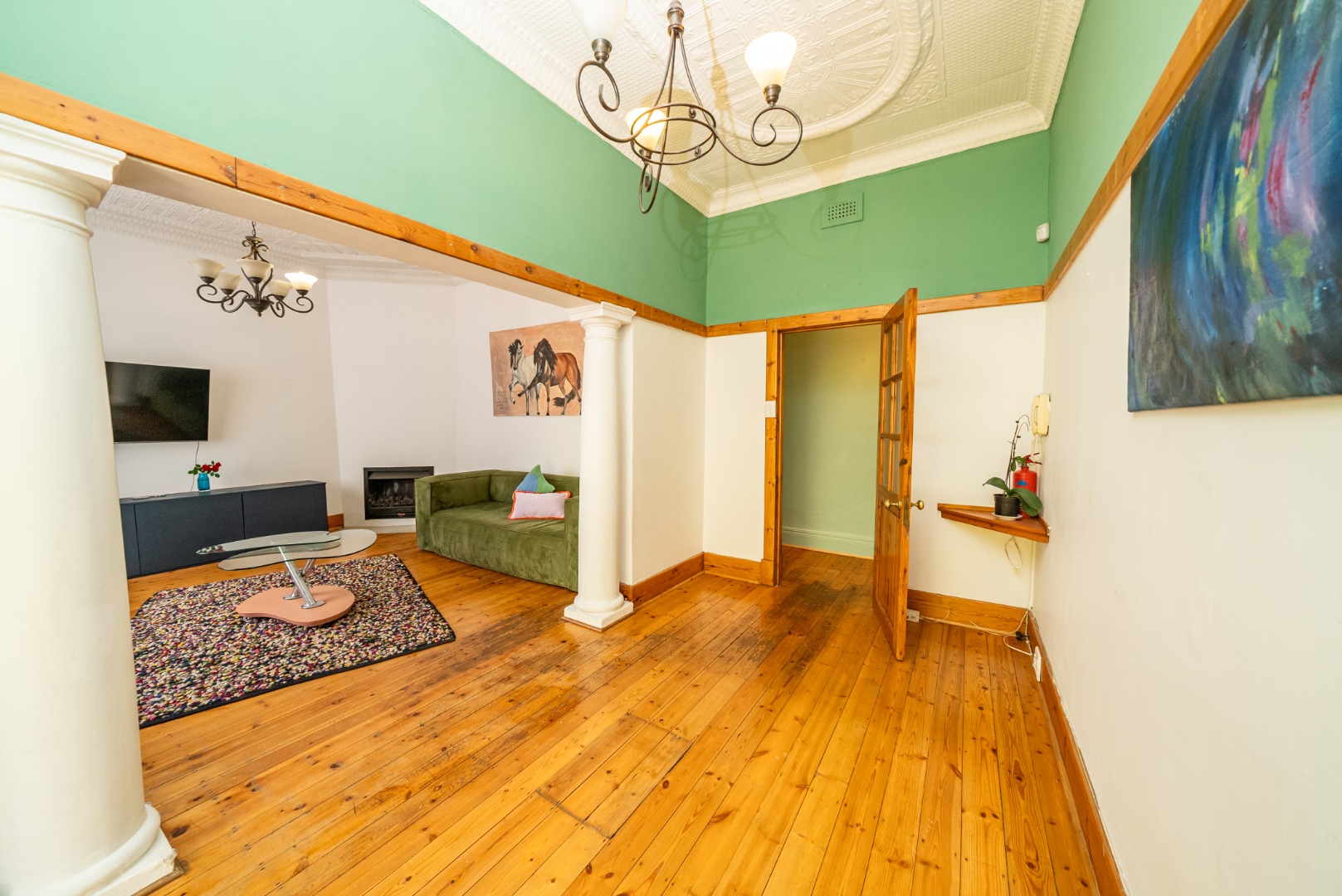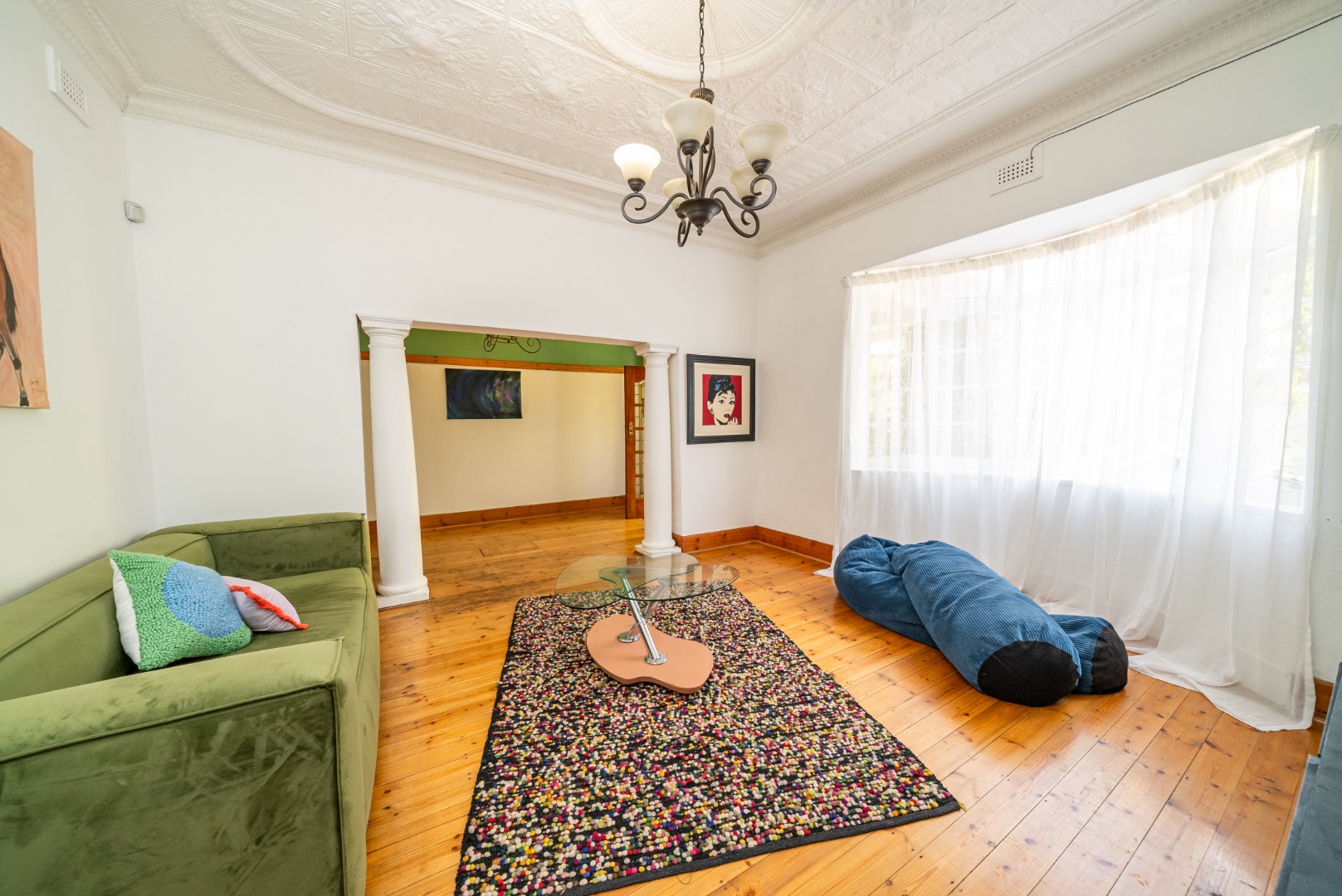 An automated gate opens to a double-door garage with additional parking space in front. The inviting entrance hall showcases high pressed ceilings that extend throughout the home, adding charm and a sense of spaciousness.