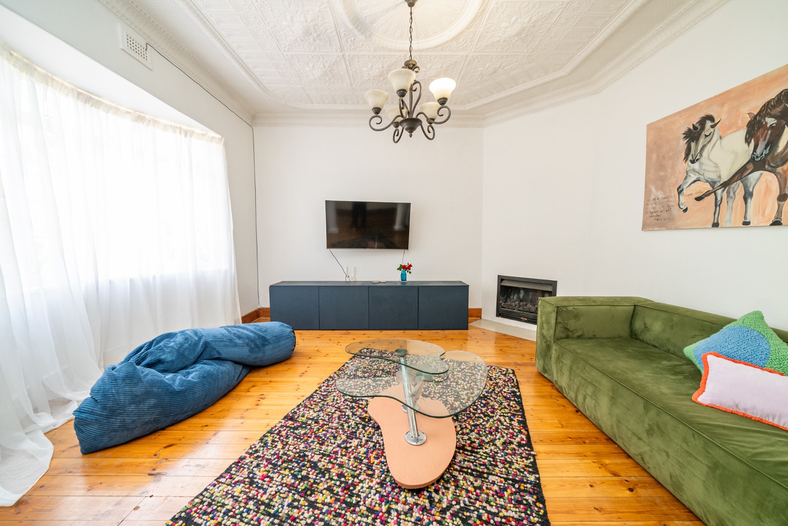 To your left, the cozy lounge features a gas fireplace, perfect for relaxing evenings. The passage leads to three well-sized bedrooms, all with built-in cupboards. The main bedroom is north-facing with a lovely bay window that fills the room with natural light. A full family bathroom includes both a bath and shower, while a second bathroom offers a shower and toilet for added convenience.