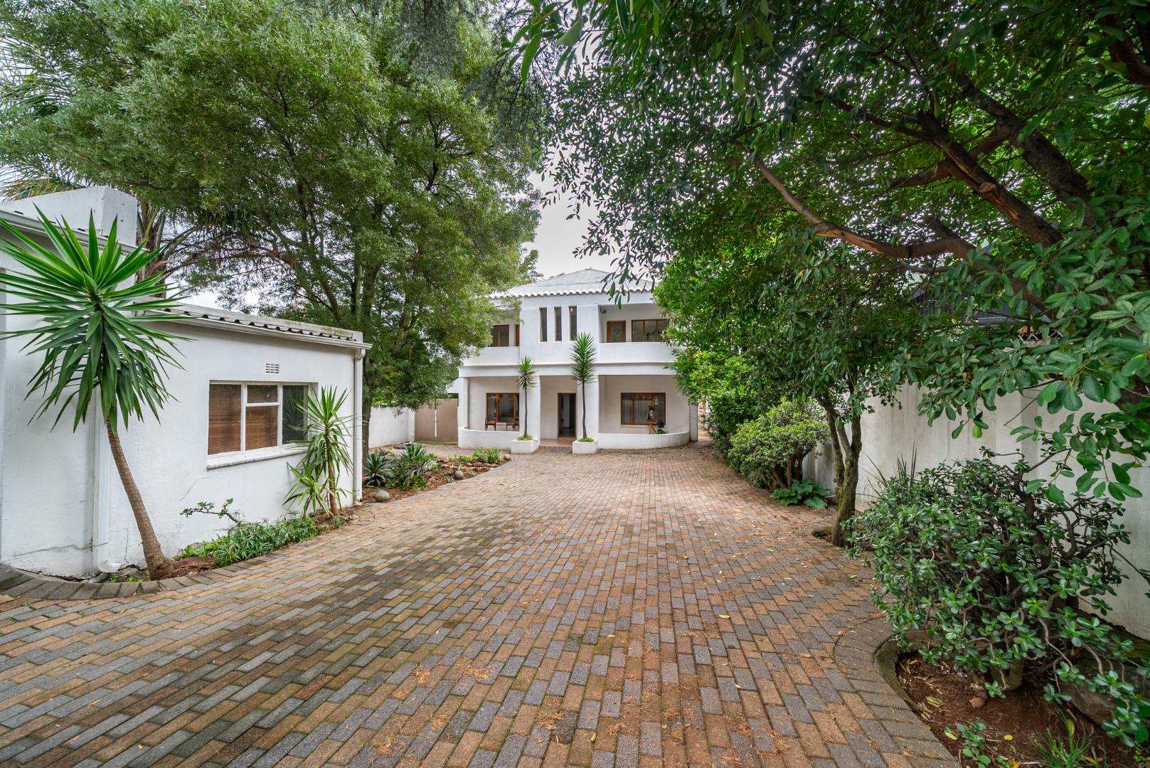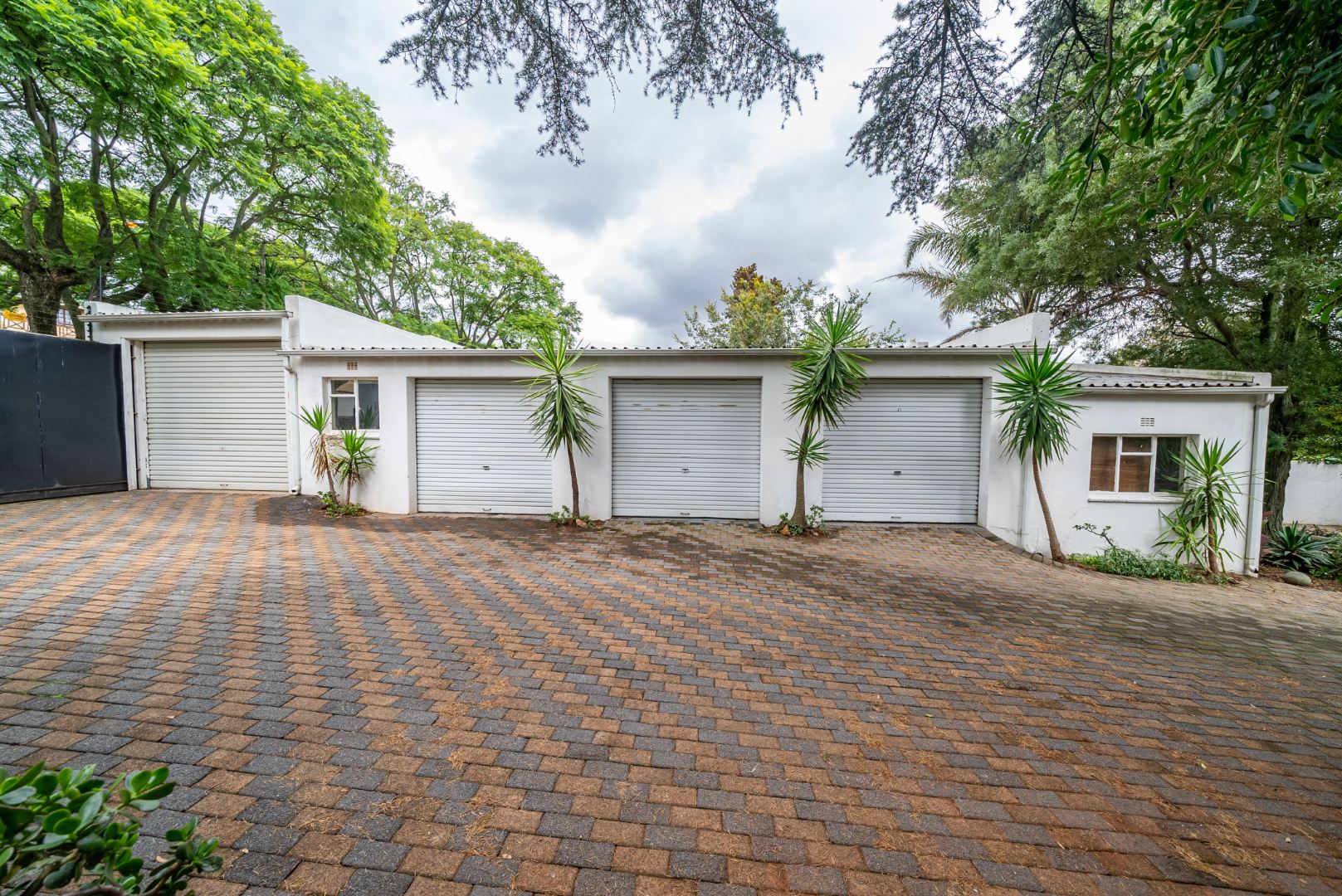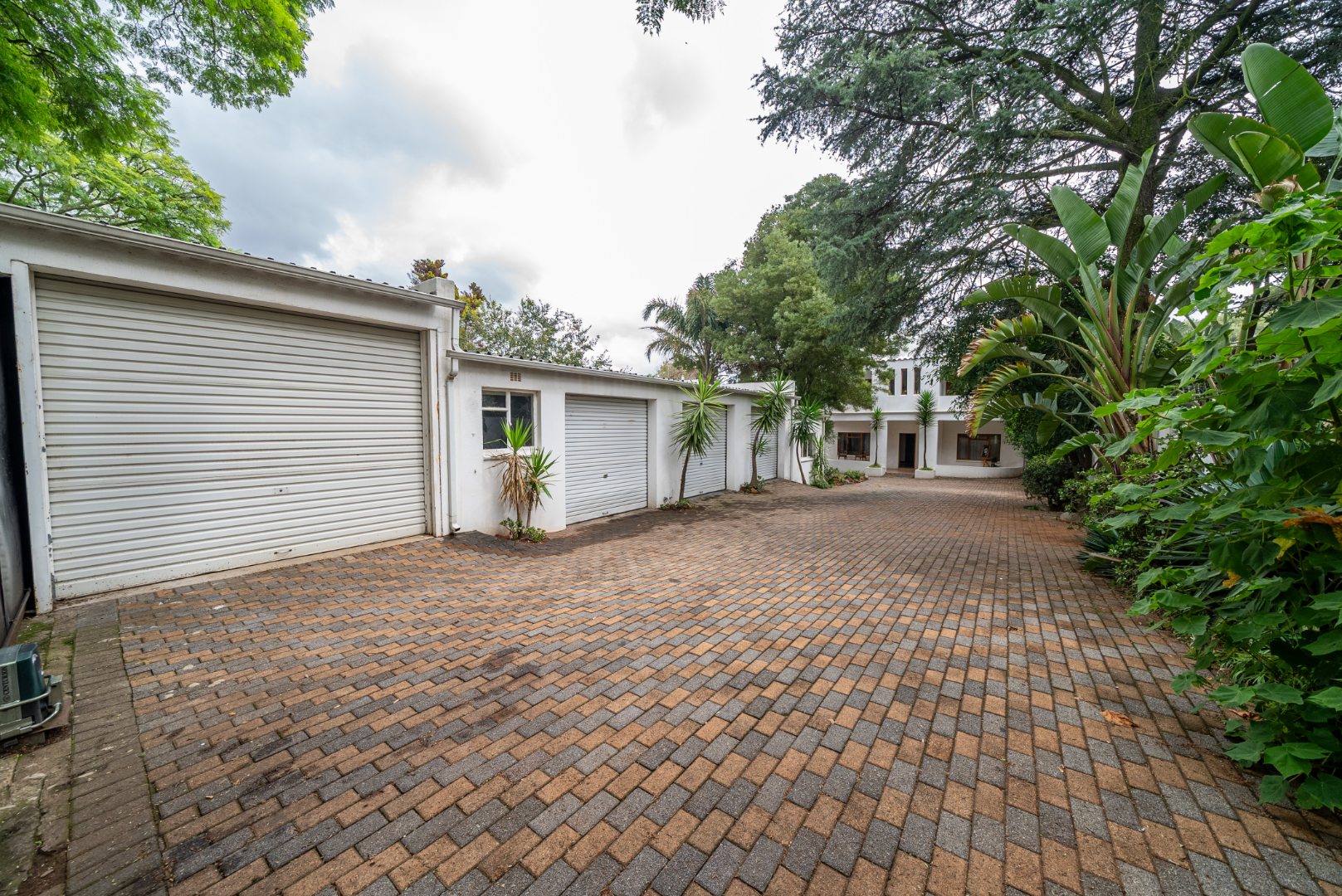 The ground floor also features a second lounge, guest toilet, and access to the four garages, one of which leads to an additional room ideal for a storeroom or workshop. The property provides secure parking for up to ten vehicles, including six additional parking spaces.