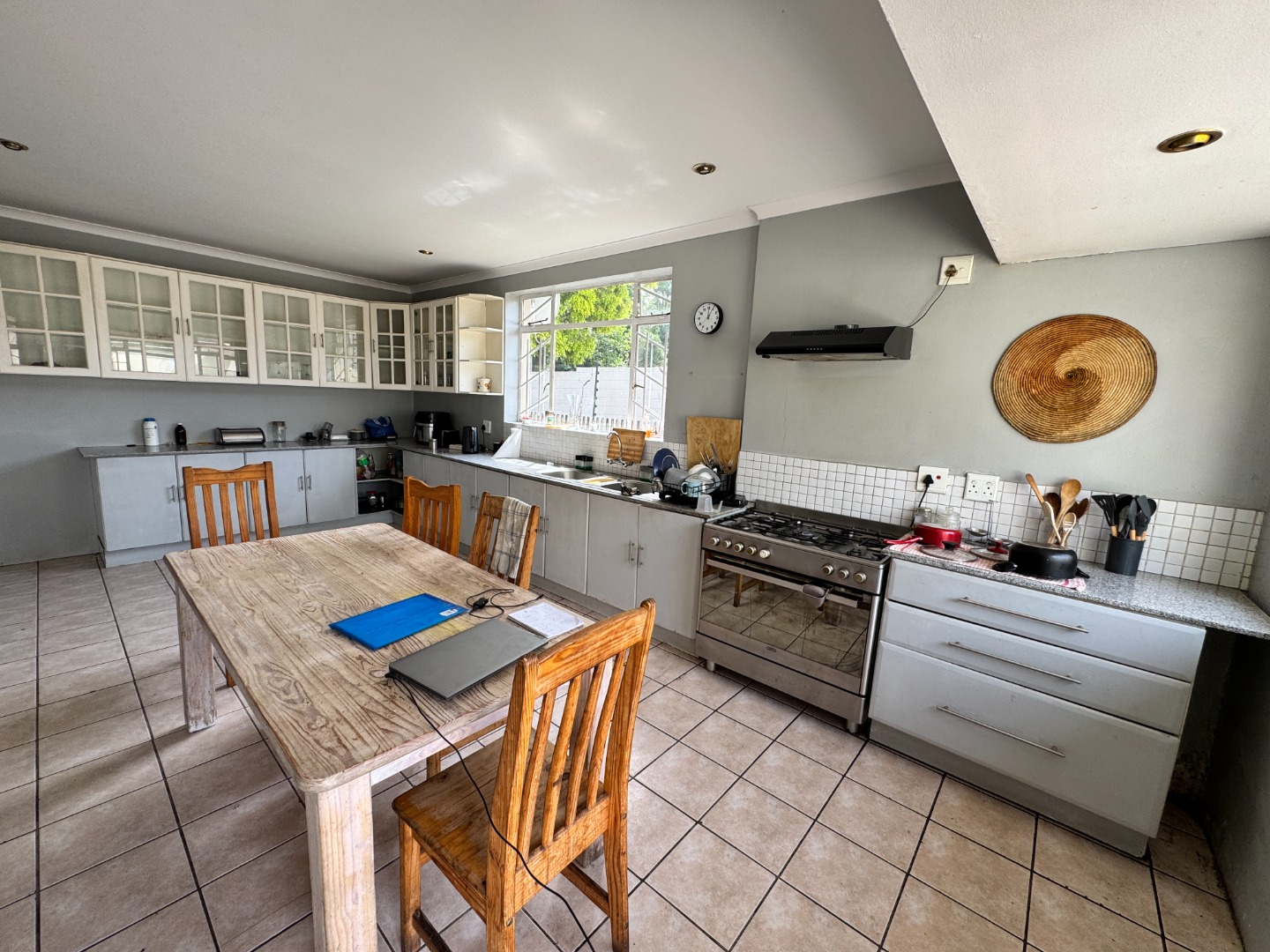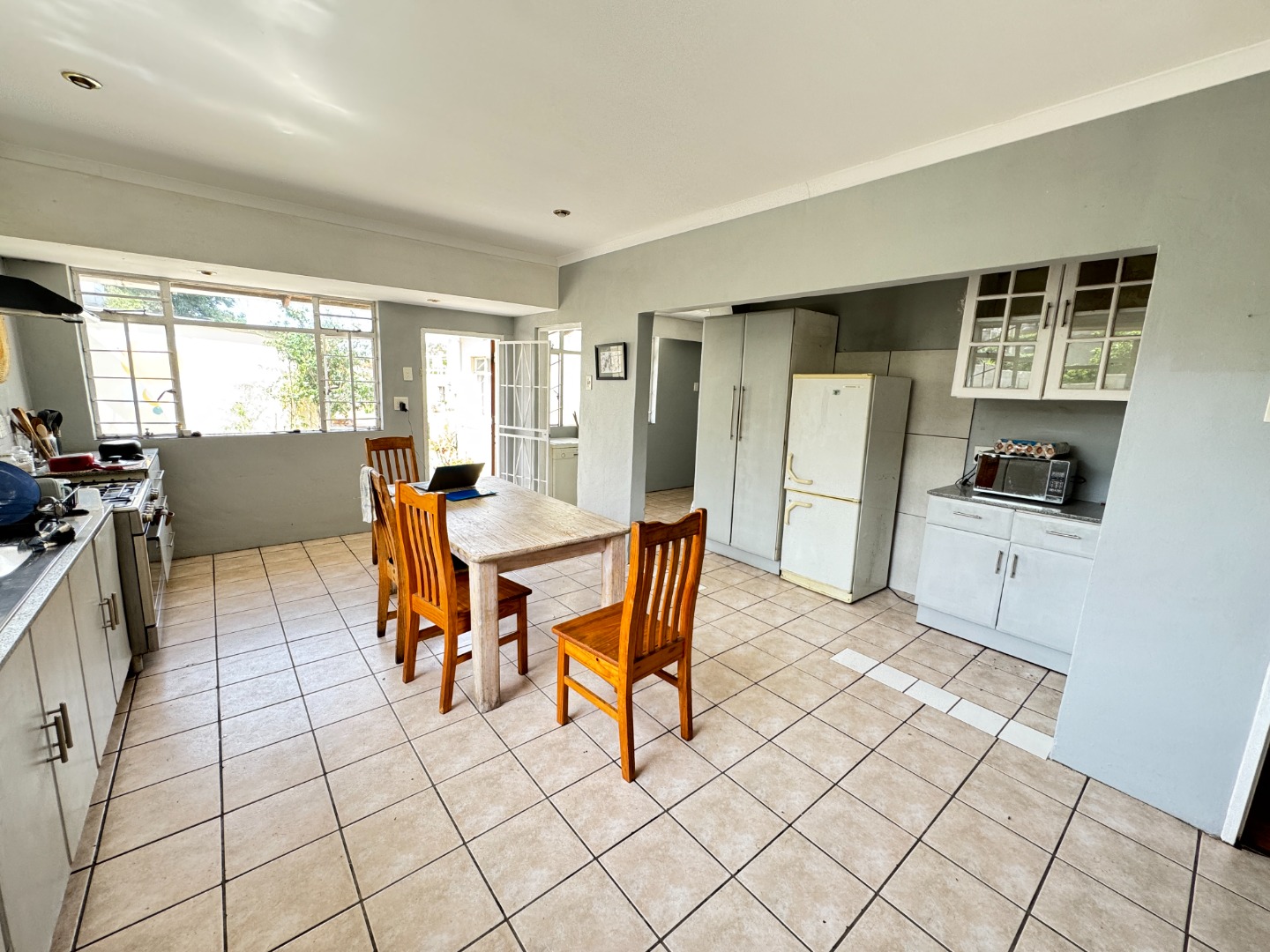The bright and airy kitchen forms the heart of the home and offers ample space for family meals and entertaining. Equipped with a gas stove and adjoining dining area, it is perfectly suited for everyday family life. A separate laundry room adds extra practicality.