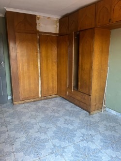 The three bedrooms are well-proportioned, each featuring durable tiled flooring and extensive built-in wooden wardrobes, providing valuable storage solutions. The single bathroom is equipped with tiled walls and floor, a basic flush toilet, and a barred window for ventilation. Cosmetic updates would enhance the overall appeal and comfort of these private spaces.