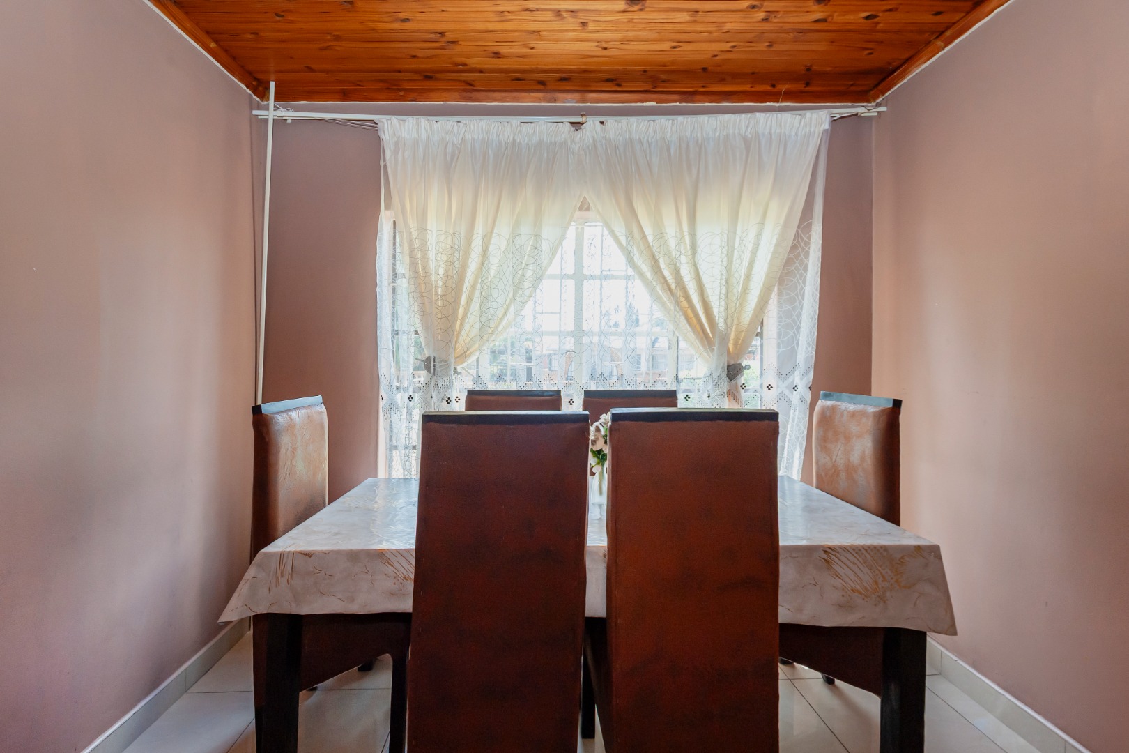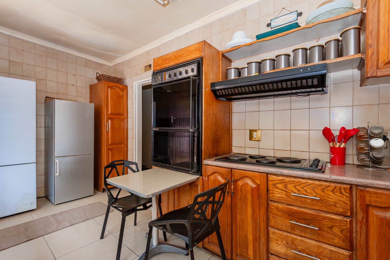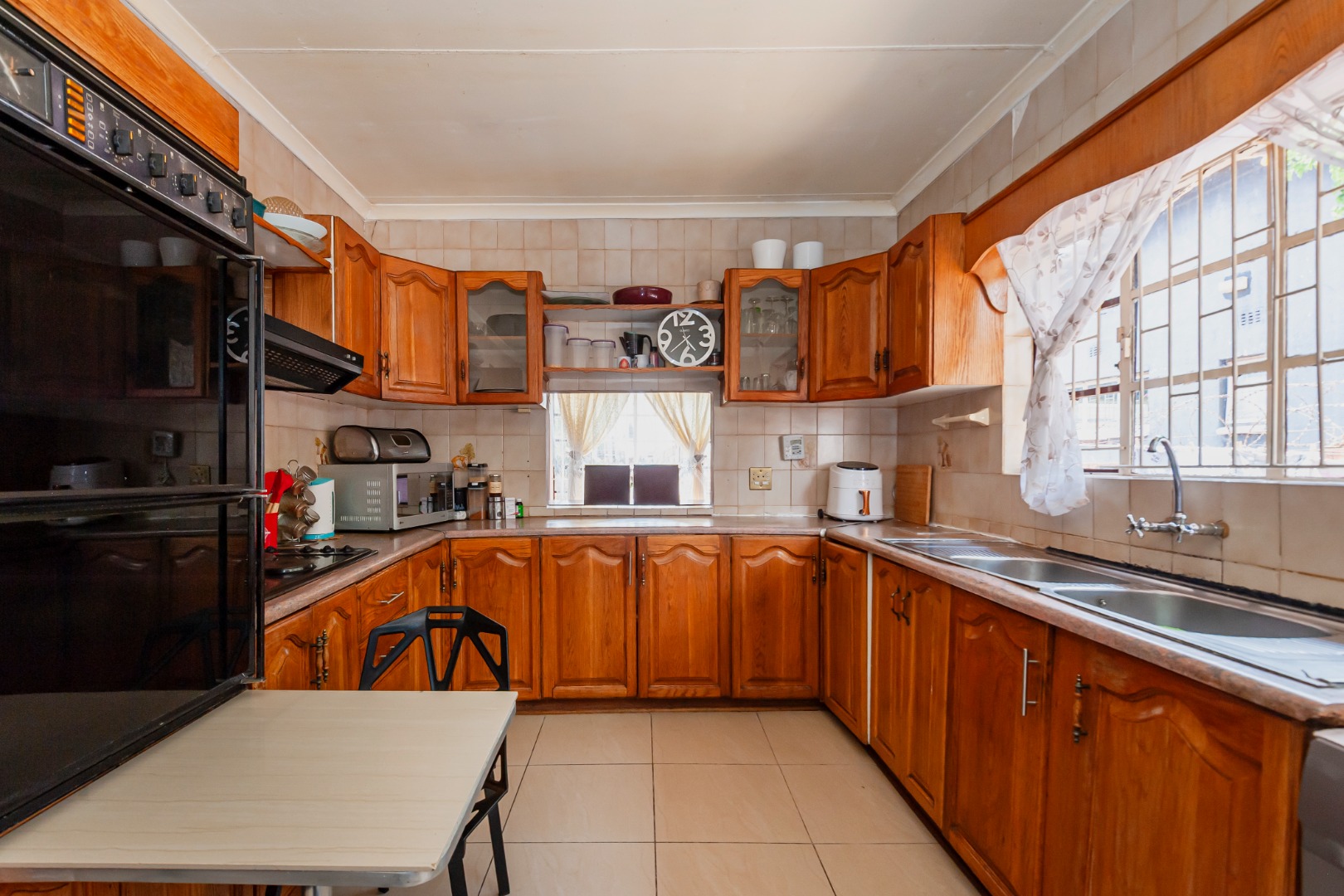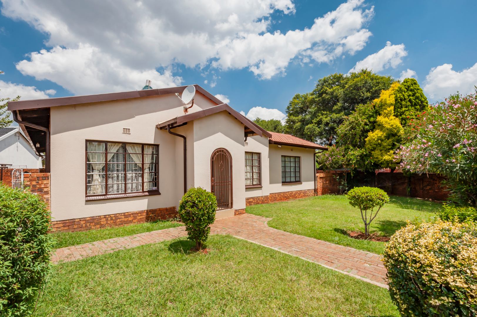This inviting single-storey home welcomes you with charming curb appeal, a tiled roof, a neat garden, and a secure entrance. Inside, the home offers warm and comfortable living spaces, including two lounges and a separate dining area that create a natural flow for both family living and entertaining. The U-shaped kitchen is both practical and well-appointed, featuring ample wooden cabinetry, a double oven, a hob, and an extractor, making it a functional space for everyday cooking. The home further offers well-sized bedrooms and bathrooms, including a main en-suite, providing comfort and privacy for the household. Outside, the generous erf allows for a private garden space and convenient parking. Additional features such as fibre connectivity and a solar geyser enhance efficiency and modern living, while security is well catered for with burglar bars, an access gate, and an alarm system for added peace of mind.
