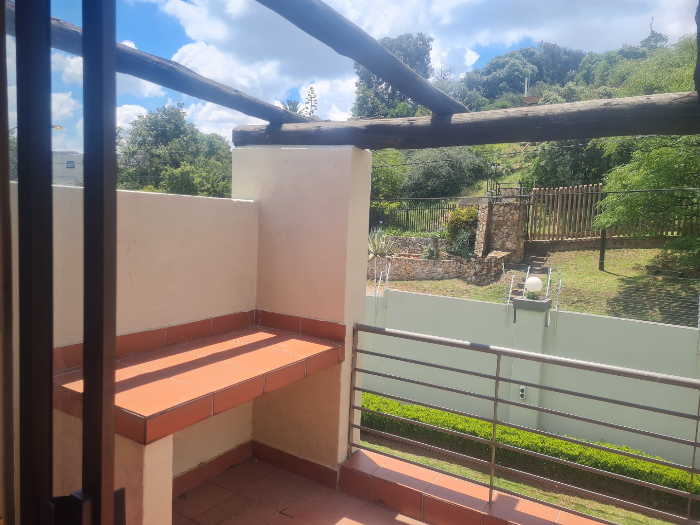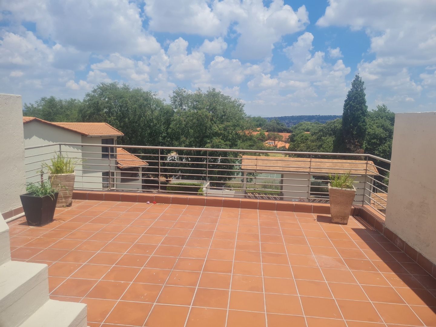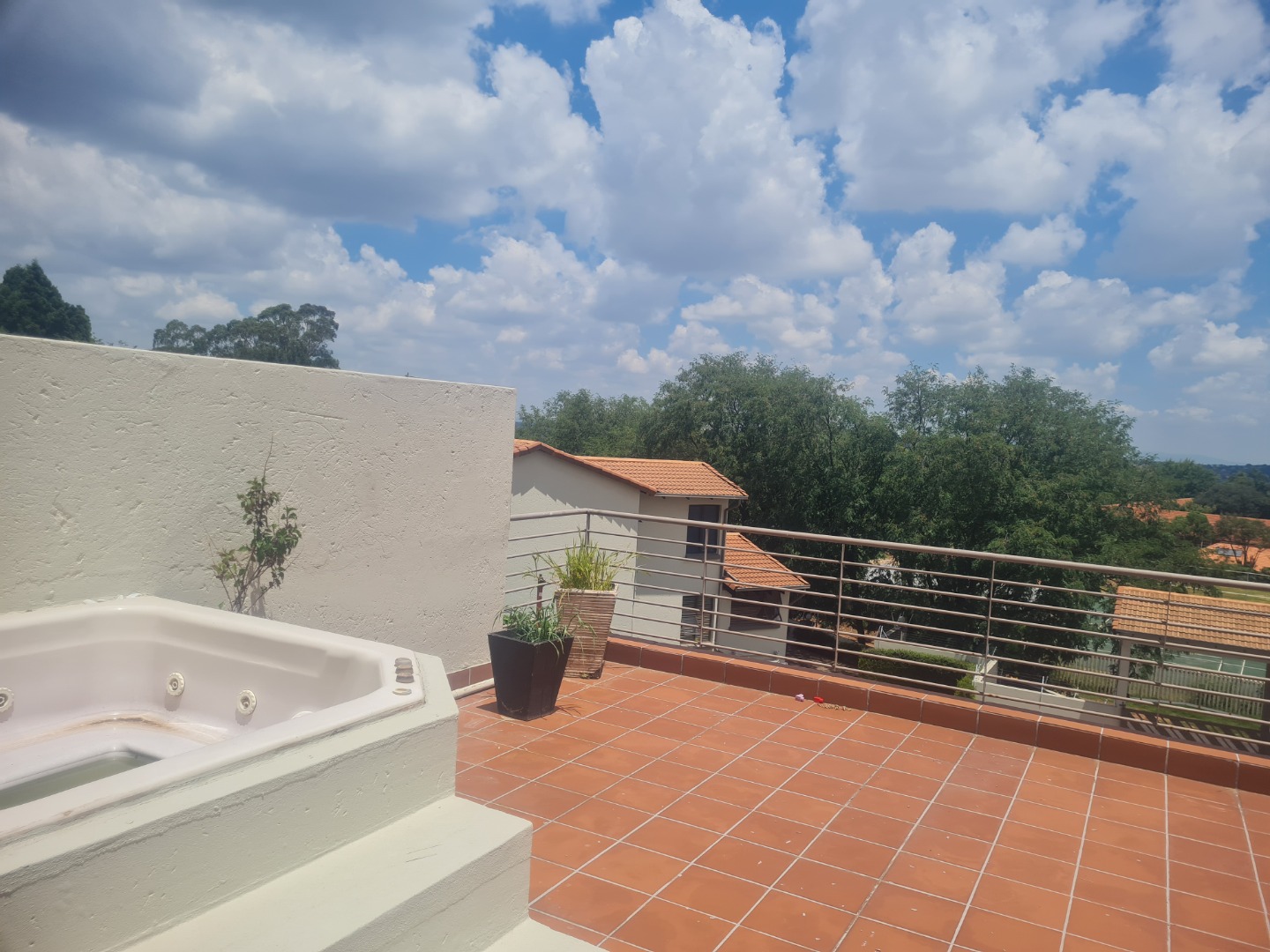Outdoor living is enhanced by a private patio, perfect for relaxation or al fresco dining. A luxurious jacuzzi offers a private retreat for unwinding with a view overlooking Johannesburg.