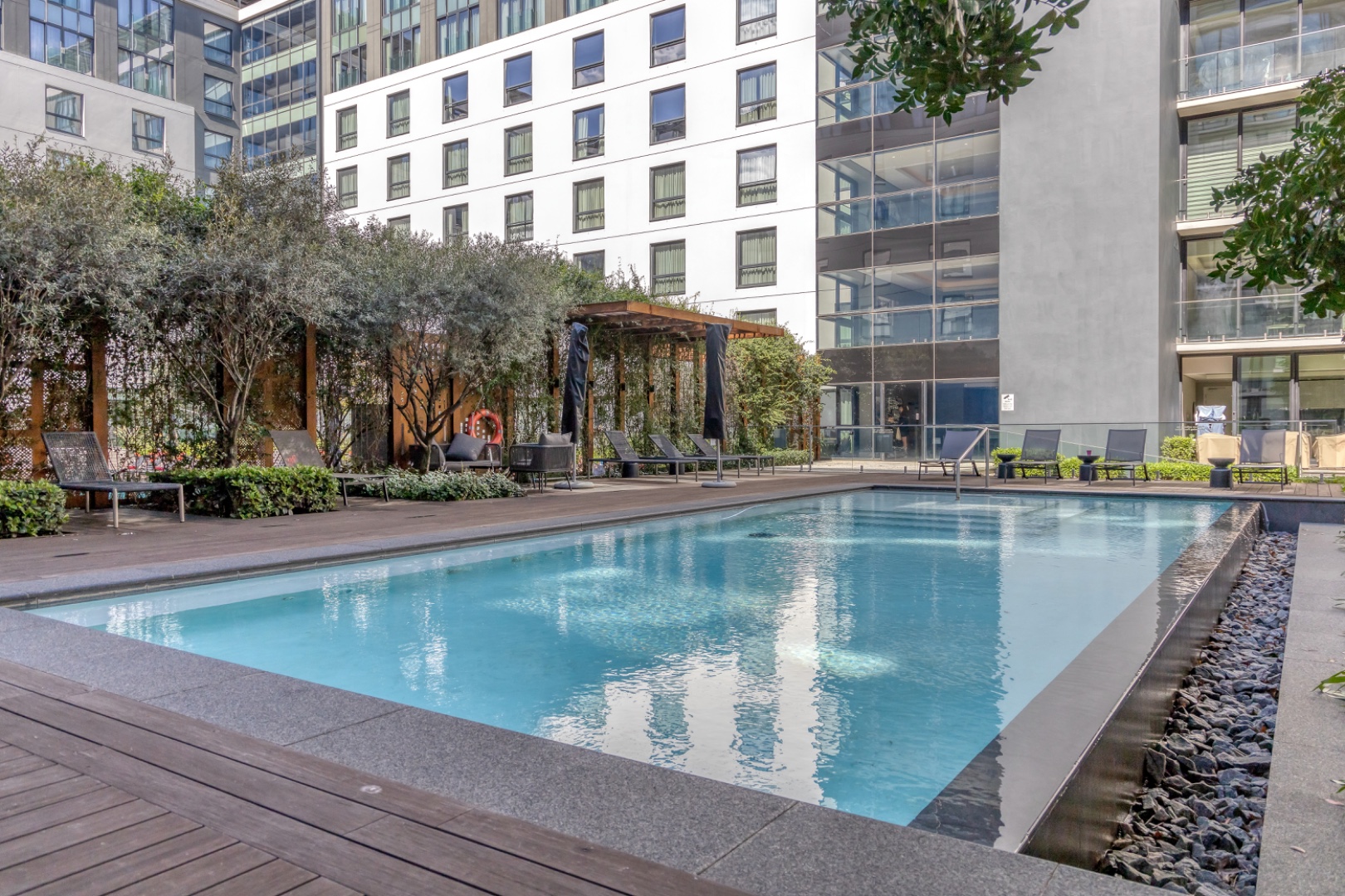 As a resident, you’ll have access to two immaculate communal pools, 24/7 security, and your own private storage unit, giving you the convenience of extra space without compromising your minimalist lifestyle.