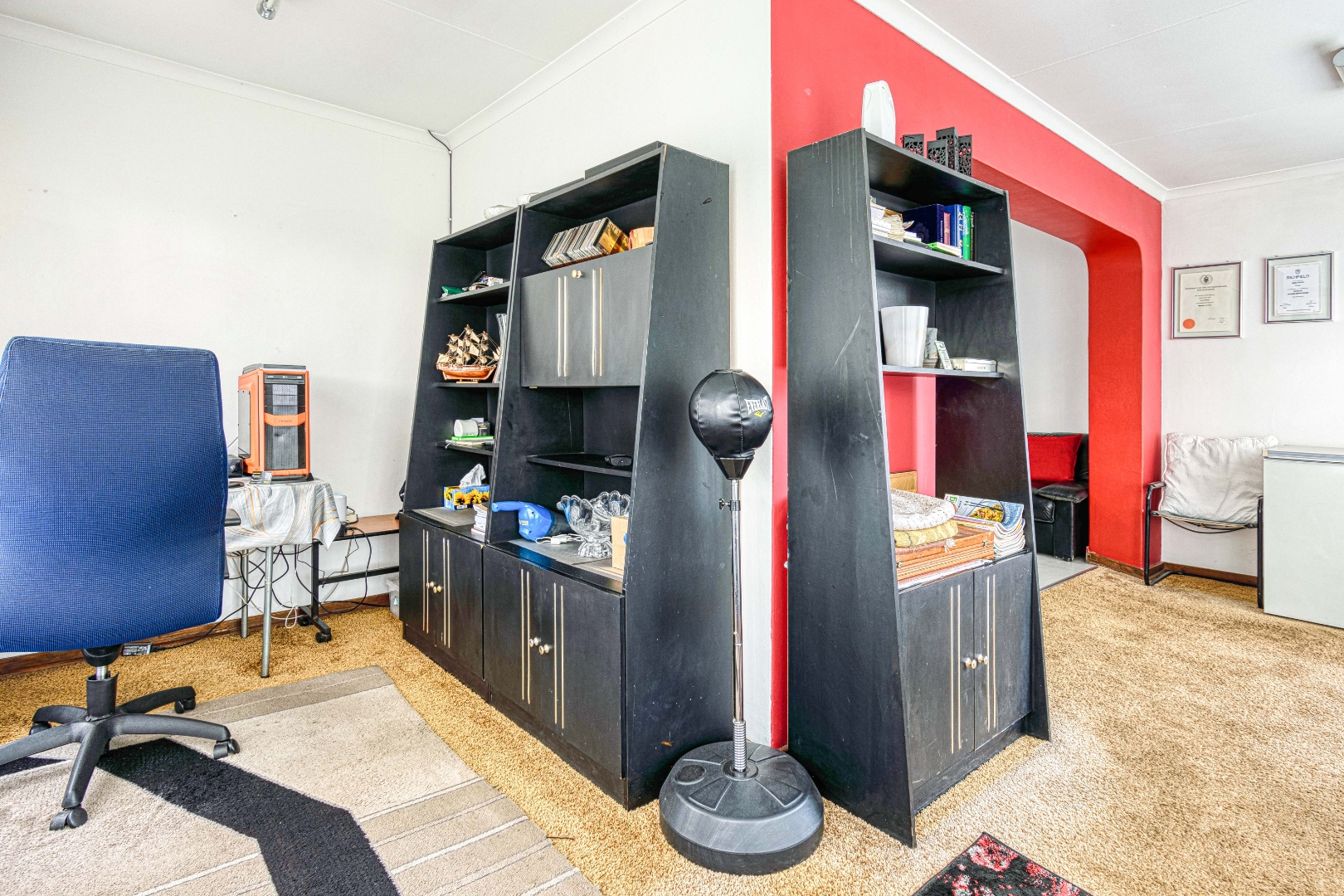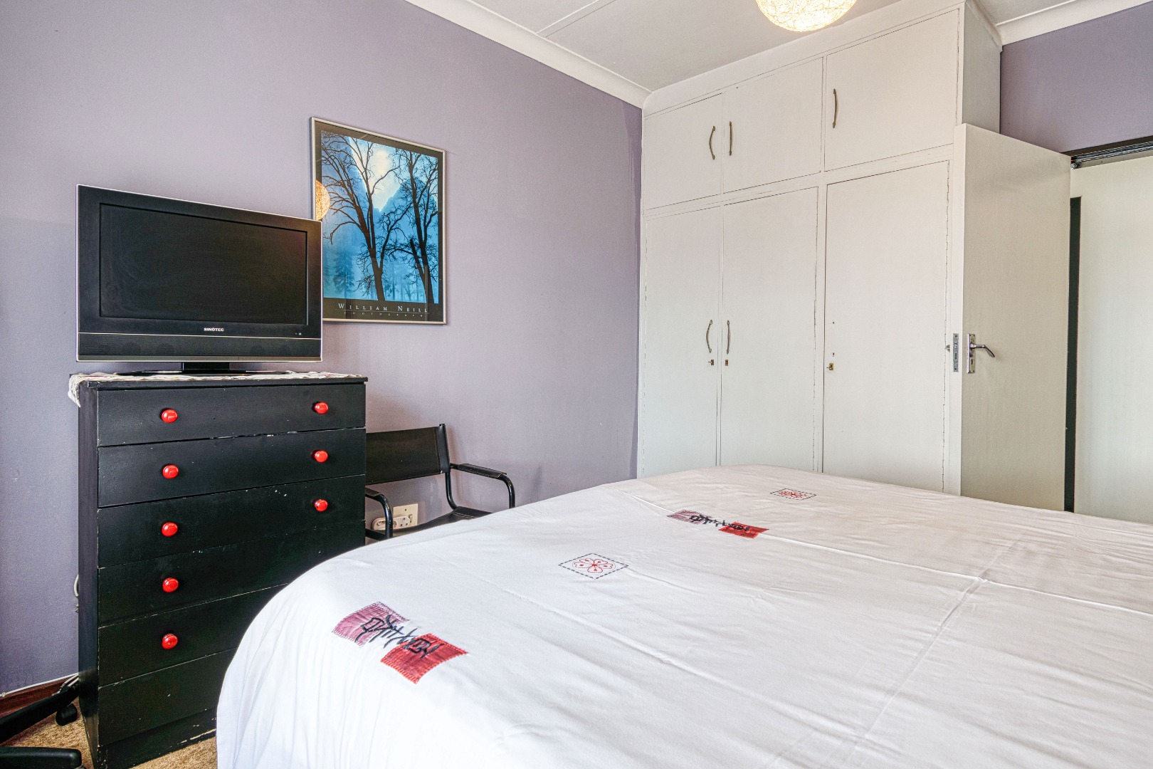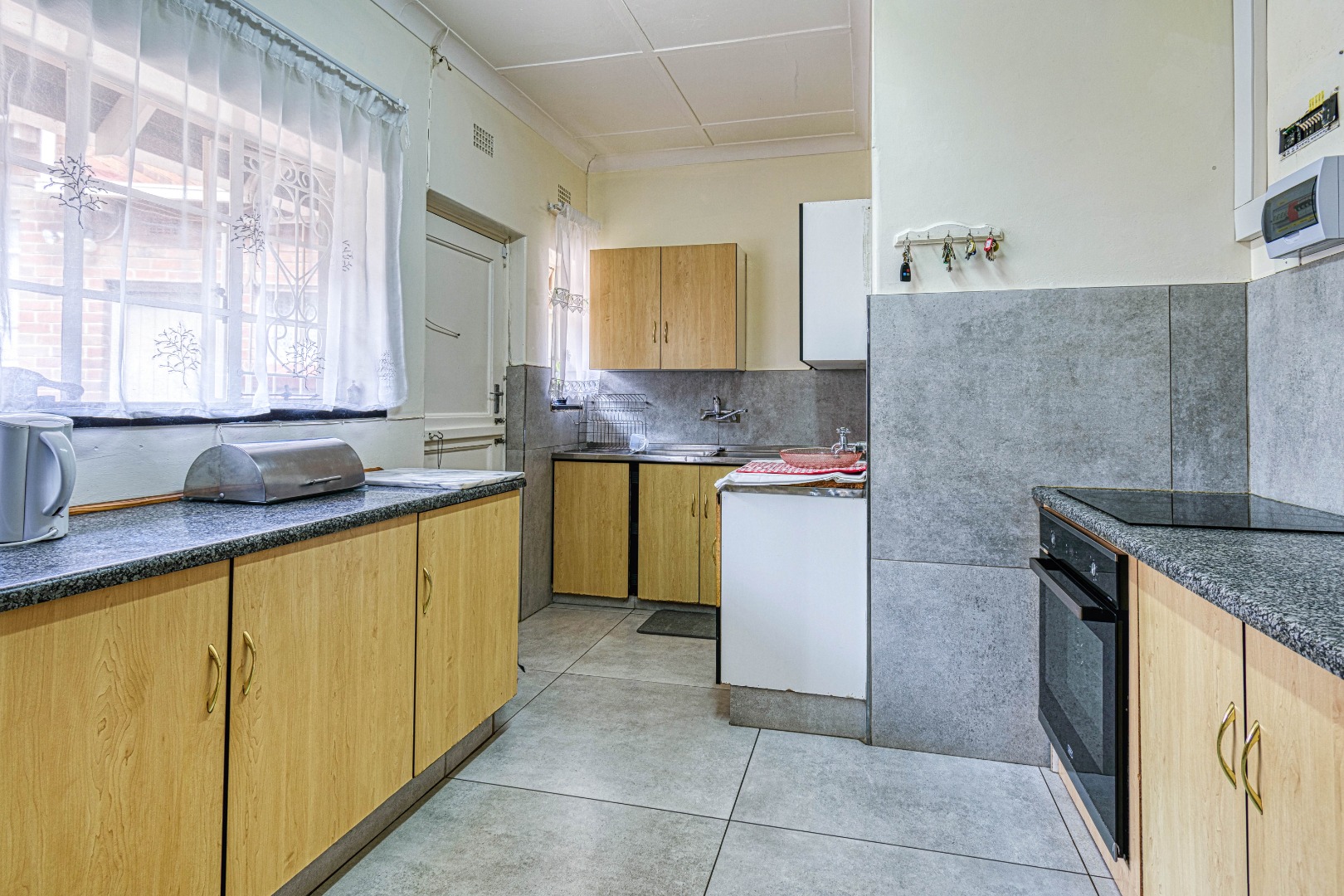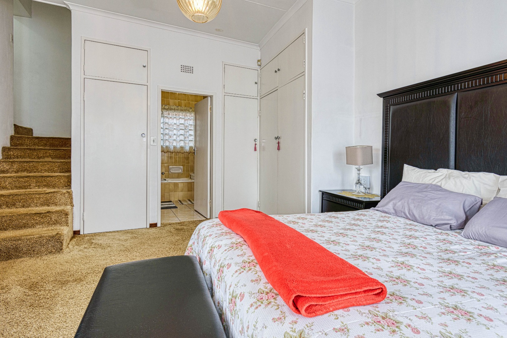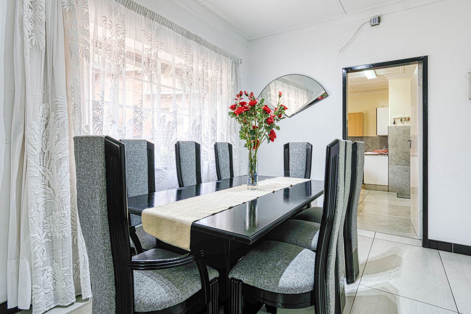 This traditional single-story residence in the suburban heart of Mondeor, Johannesburg, presents a welcoming kerb appeal with its classic red tiled roof, brick accents, and a generously sized, gently sloping grassy lawn adorned with mature trees. The property is secured by a solid perimeter wall and features a separate outbuilding, offering versatile potential for storage or additional space. Inside, the home boasts a functional and comfortable layout. The spacious living areas feature modern light-colored tiled flooring, complemented by a wall-mounted entertainment unit, air conditioning, and a ceiling fan for year-round comfort. An open archway seamlessly connects to an additional living space, enhancing the flow. The kitchen is equipped with light wood-look cabinetry, dark speckled countertops, a built-in oven, hob, microwave, and an integrated fridge space, alongside a practical double basin stainless steel sink. Adjacent to the kitchen, the dining room offers ample space for entertaining, featuring a large dining table and abundant natural light. The residence comprises three well-proportioned bedrooms and two bathrooms. Bedrooms are spacious, benefiting from ample natural light, and include built-in white wardrobes for storage. The main bedroom offers direct access to one of the bathrooms, providing convenience and privacy. While some areas feature comfortable carpeting, the overall aesthetic is designed for practical family living. Outdoor living is well-catered for with a large, well-maintained garden, perfect for pets and outdoor activities. The property further benefits from four garages, providing extensive secure parking and storage solutions. For peace of mind, the home is equipped with an alarm system and an access gate. Modern amenities include fibre connectivity and a battery inverter, ensuring reliable power and internet access. Key Features: * 3 Bedrooms, 2 Bathrooms * 4 Garages * Spacious Living and Dining Areas * Equipped Kitchen with Built-in Appliances * Large Garden with Mature Trees * Alarm System and Access Gate * Fibre Connectivity and Battery Inverter * Air Conditioning and Ceiling Fan * Pets Allowed