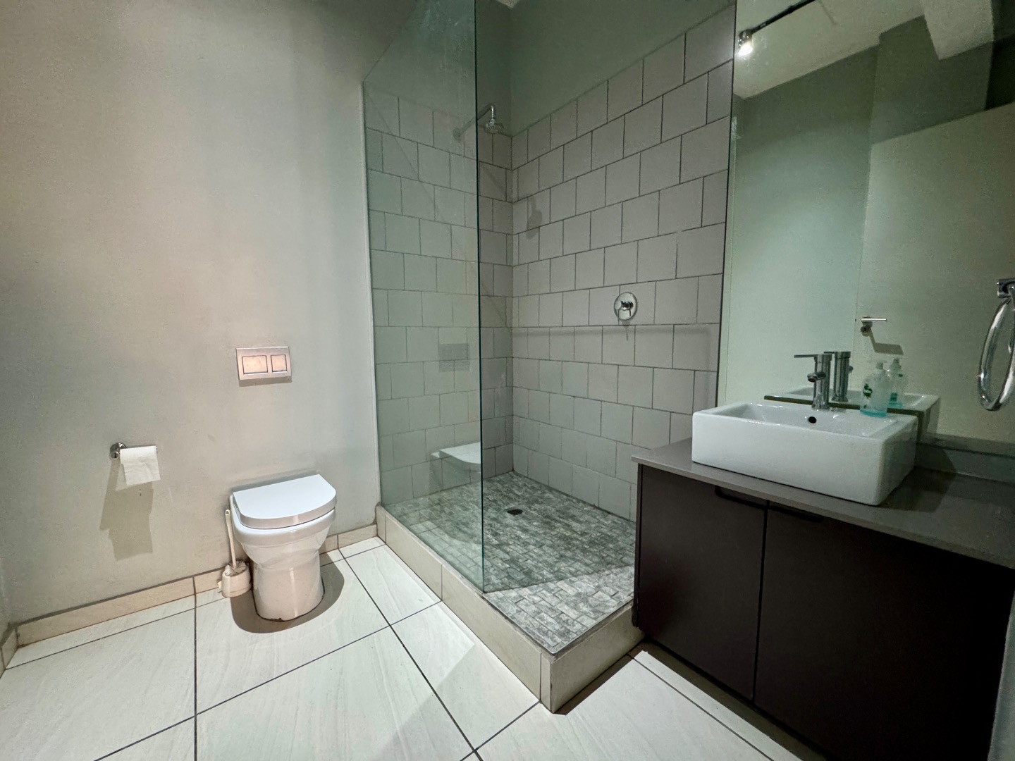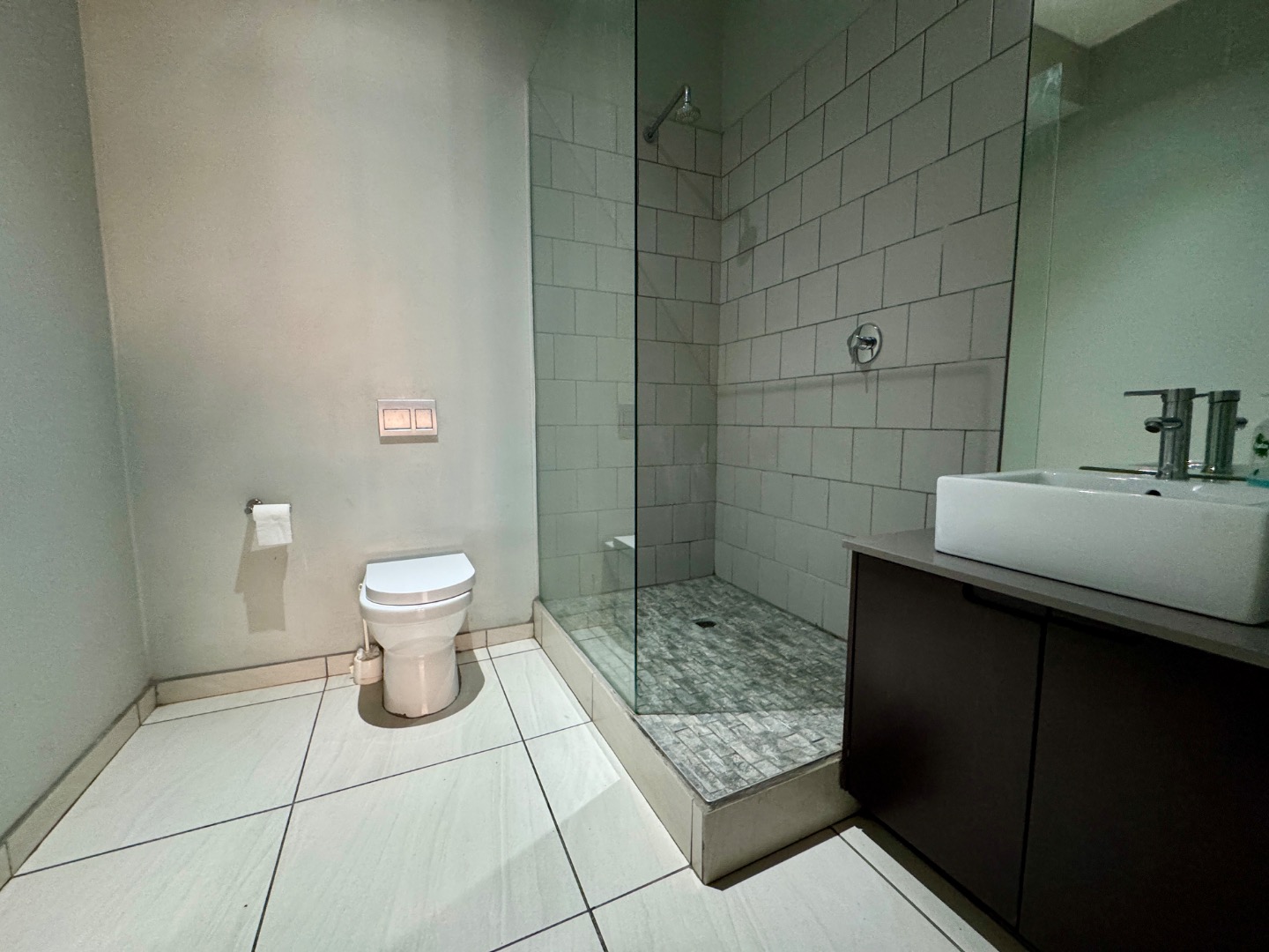 The open-plan design maximises space, seamlessly combining the kitchen, lounge, and bedroom area into one well-proportioned living area. The kitchen is fitted with sleek granite countertops and quality finishes, creating a clean and contemporary feel. The bathroom boasts modern, high-quality fittings, adding to the apartment’s stylish appeal.