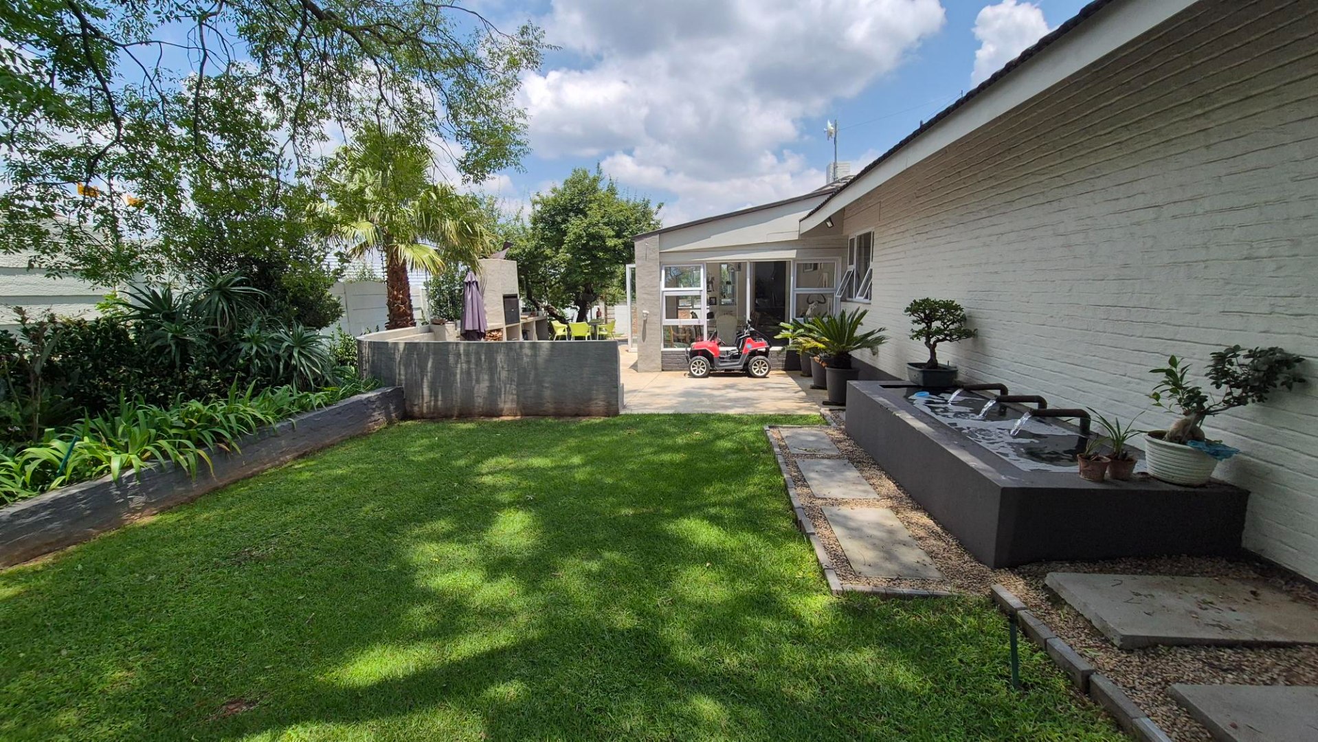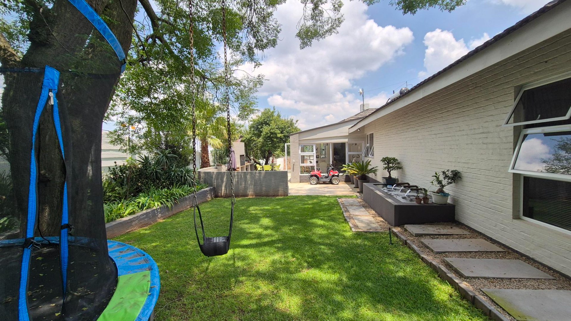 * Swimming Pool & Lush Garden with Sprinkler System
