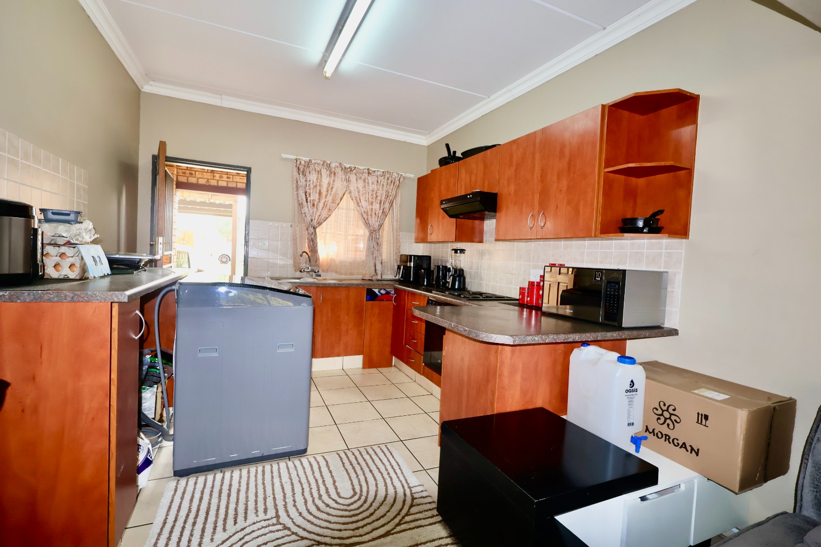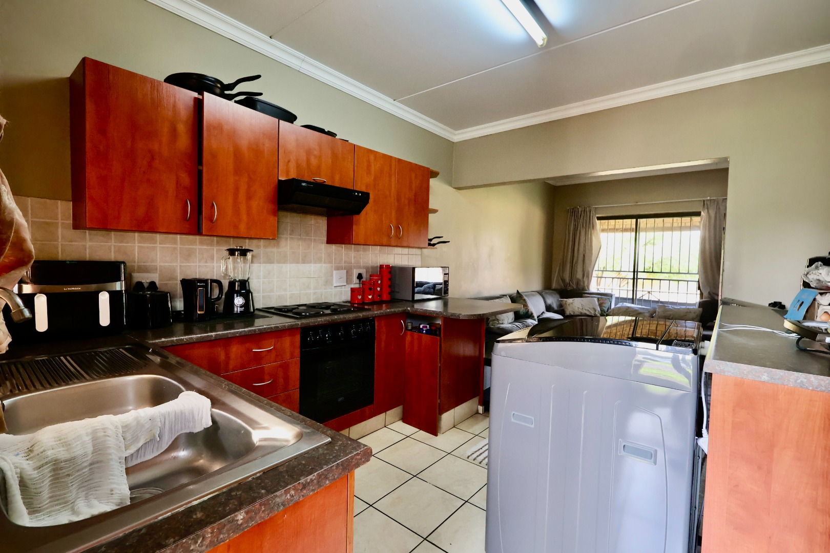 The open-plan living and dining area flows seamlessly, creating a welcoming space to relax or entertain. The kitchen is practical and well-equipped, with ample cupboard space to meet your daily needs.