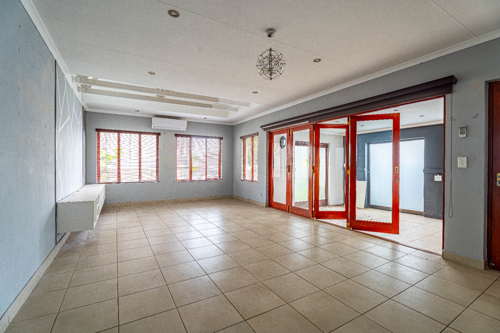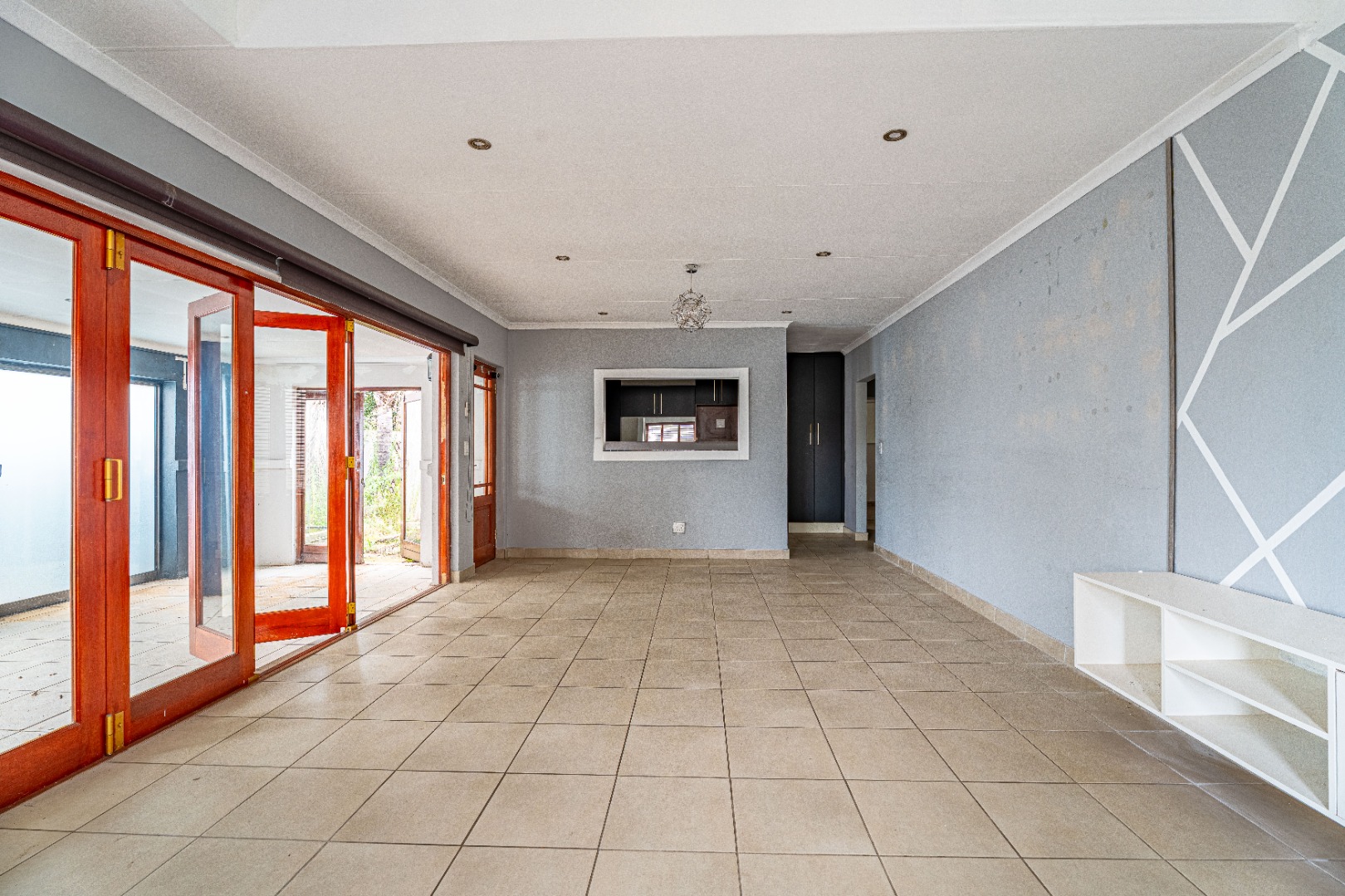 Discover a promising opportunity within the secure confines of Barbeque Downs, Midrand. This residential property, set on a 311 sqm erf with a generous 160 sqm floor size, offers a canvas for renovation and personalisation. The home features three bedrooms and two bathrooms, including a private en-suite, providing comfortable living spaces for a family. The interior boasts an open-plan layout, encompassing a lounge, dining room, and a dedicated family TV room, all benefiting from ample natural light and tiled flooring throughout. The kitchen is equipped with dark cabinetry, integrated stovetop and oven, and a convenient pass-through window, awaiting a modern touch to complete its functionality.