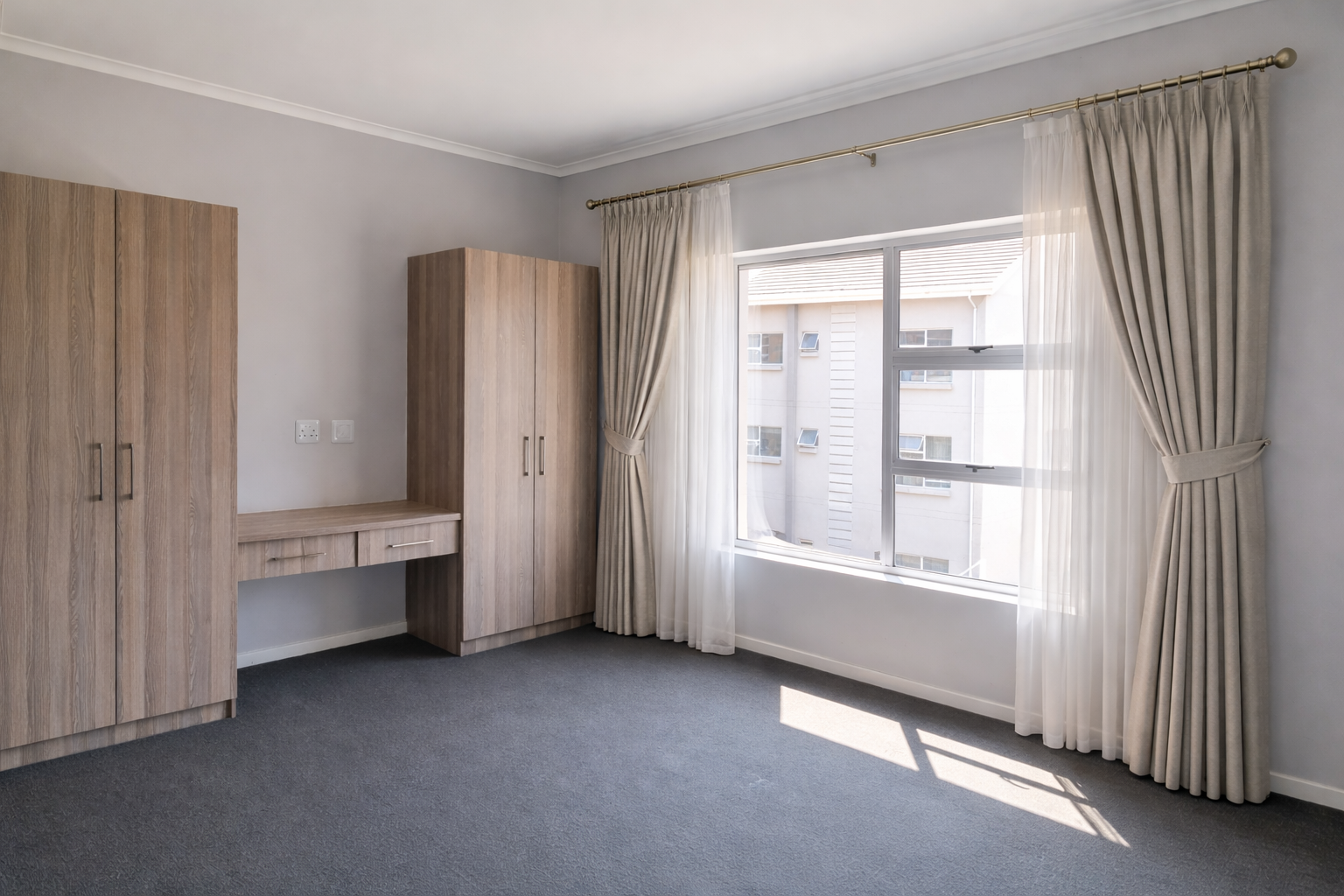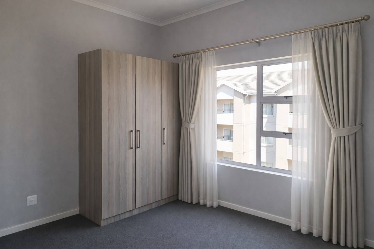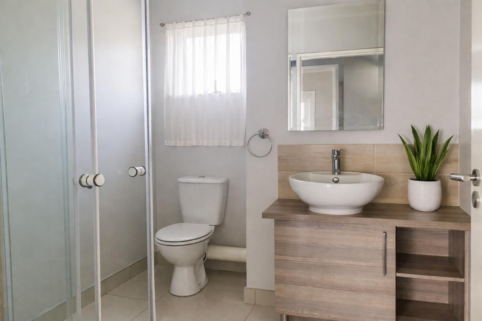 The property includes neat, modern bathrooms and well-sized rooms designed for comfort. Large windows and sliding doors lead to a private balcony area, enhancing the sense of space and light.