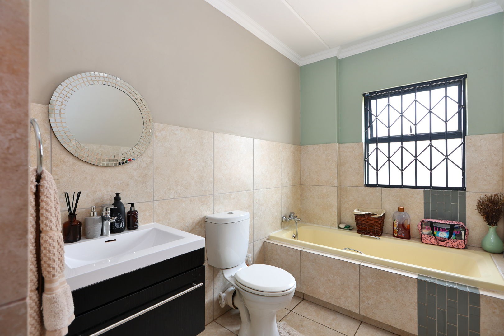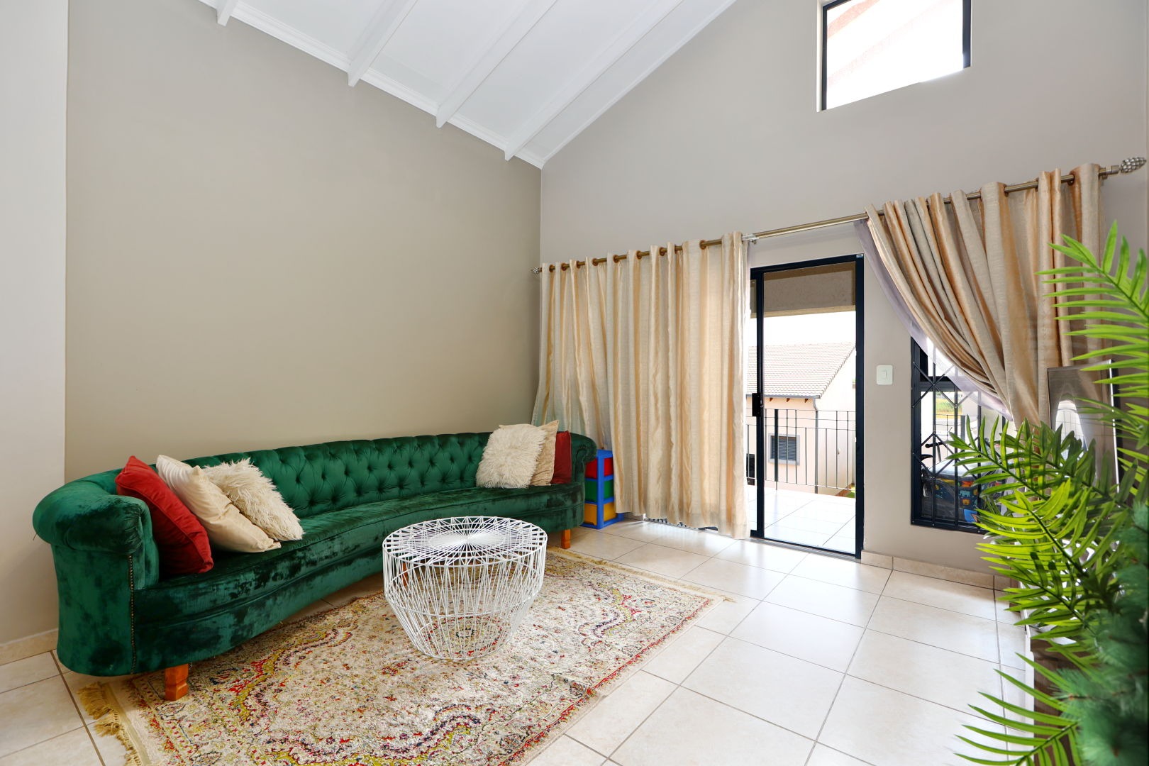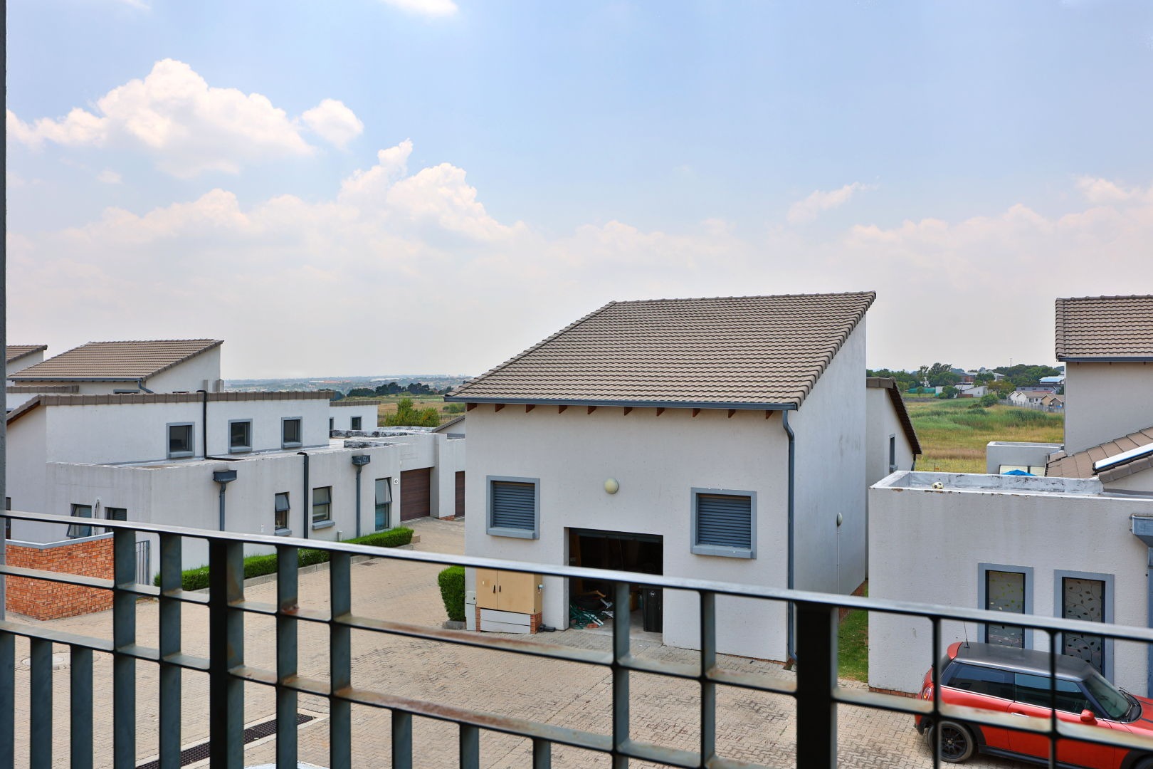 Discover modern living in this inviting 3-bedroom, 2-bathroom residence located within a secure complex in Carlswald, Midrand. The heart of this home is its expansive open-plan living area, seamlessly integrating the kitchen, dining, and lounge spaces. Soaring vaulted ceilings with exposed beams enhance the sense of space and character, complemented by abundant natural light streaming through large sliding doors and high-level windows. The contemporary kitchen boasts light wood-look cabinetry, dark countertops, and a stylish subway tile backsplash, creating an ideal environment for both everyday meals and entertaining. Accommodation includes three well-appointed bedrooms, each designed for comfort. The main bedroom features an en-suite bathroom, offering a private retreat. All bedrooms benefit from ample natural light and are finished with comfortable carpeting, while the bathrooms present a blend of modern fixtures and practical design, including a full family bathroom with both a shower and a bathtub. Step out onto the private balcony from the living area, perfect for enjoying the South African climate. This property offers two dedicated parking bays and is situated within a well-maintained complex, providing residents with access to a clubhouse. Security is paramount, with 24-hour security, an access gate, and security gates ensuring peace of mind in this cul-de-sac setting. Carlswald, a sought-after suburb in Midrand, offers convenient access to essential amenities, major transport routes, and a vibrant community lifestyle, making it an excellent choice for families and professionals alike. Key Features: * 3 Bedrooms, 2 Bathrooms (1 en-suite) * Open-plan living, dining, and kitchen * Vaulted ceilings with exposed beams * Modern kitchen with light wood-look cabinets * Private balcony * 2 dedicated parking bays * Access to a clubhouse * Secure complex with 24-hour security * Located in a quiet cul-de-sac