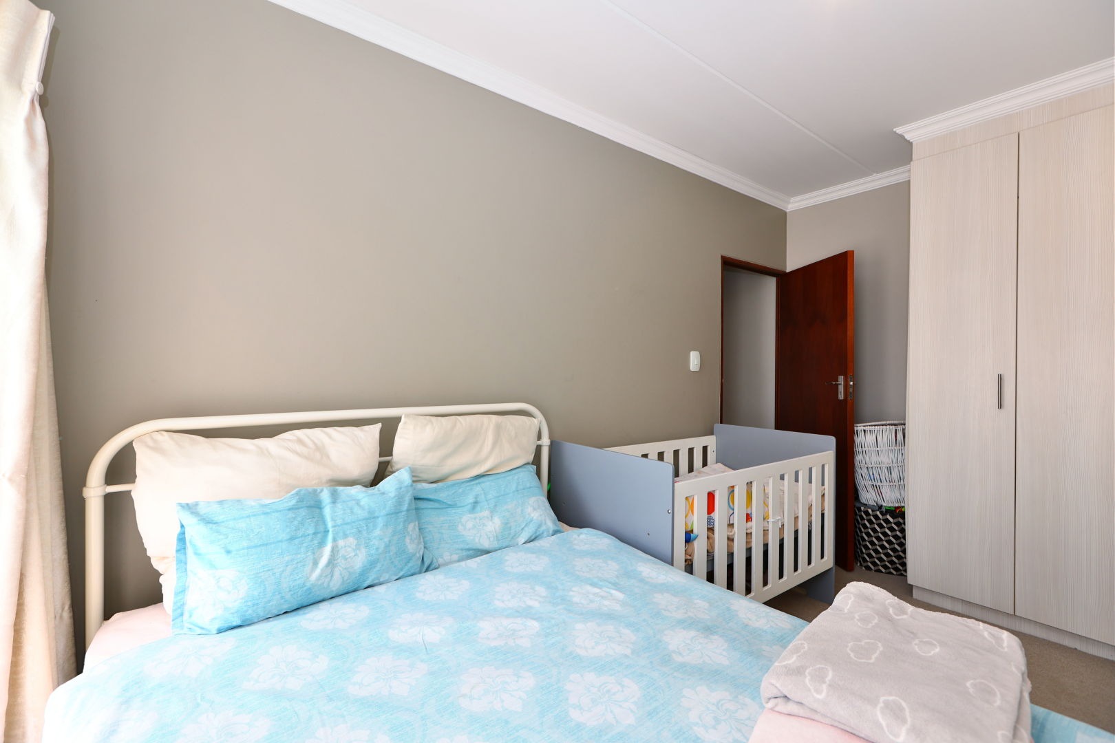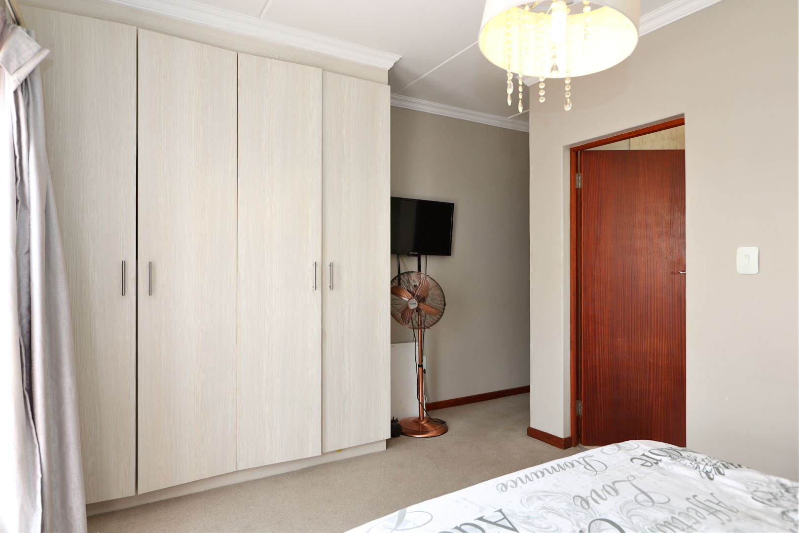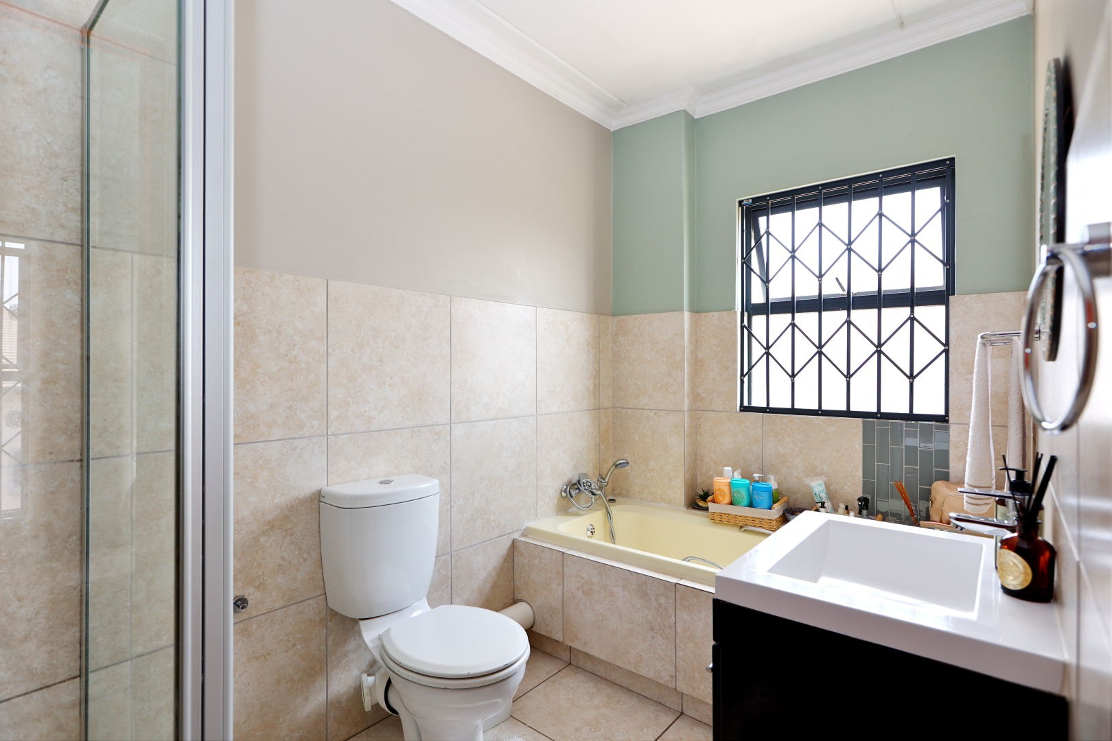 Discover modern living in this inviting 3-bedroom, 2-bathroom residence located within a secure complex in Carlswald, Midrand. The heart of this home is its expansive open-plan living area, seamlessly integrating the kitchen, dining, and lounge spaces. Soaring vaulted ceilings with exposed beams enhance the sense of space and character, complemented by abundant natural light streaming through large sliding doors and high-level windows. The contemporary kitchen boasts light wood-look cabinetry, dark countertops, and a stylish subway tile backsplash, creating an ideal environment for both everyday meals and entertaining. Accommodation includes three well-appointed bedrooms, each designed for comfort. The main bedroom features an en-suite bathroom, offering a private retreat. All bedrooms benefit from ample natural light and are finished with comfortable carpeting, while the bathrooms present a blend of modern fixtures and practical design, including a full family bathroom with both a shower and a bathtub. Step out onto the private balcony from the living area, perfect for enjoying the South African climate. This property offers two dedicated parking bays and is situated within a well-maintained complex, providing residents with access to a clubhouse. Security is paramount, with 24-hour security, an access gate, and security gates ensuring peace of mind in this cul-de-sac setting. Carlswald, a sought-after suburb in Midrand, offers convenient access to essential amenities, major transport routes, and a vibrant community lifestyle, making it an excellent choice for families and professionals alike. Key Features: * 3 Bedrooms, 2 Bathrooms (1 en-suite) * Open-plan living, dining, and kitchen * Vaulted ceilings with exposed beams * Modern kitchen with light wood-look cabinets * Private balcony * 2 dedicated parking bays * Access to a clubhouse * Secure complex with 24-hour security * Located in a quiet cul-de-sac