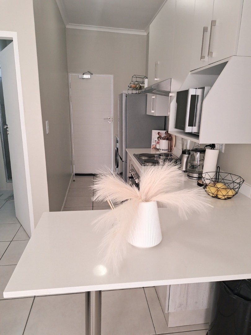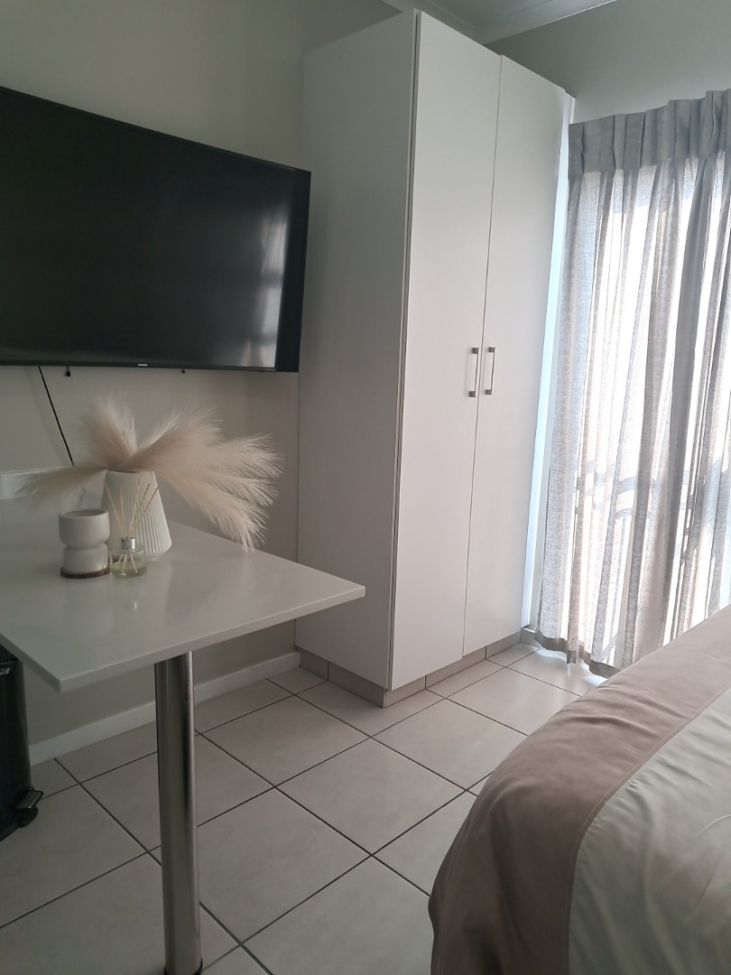 Discover modern living in this stylish studio apartment located within a contemporary complex in Grand Central, Midrand. The building boasts a sleek architectural design with attractive stone facade accents and a welcoming covered entrance, creating an excellent first impression. Residents benefit from convenient, designated covered parking spaces directly in front of the building, ensuring ease of access. Step inside to a thoughtfully designed interior that maximises space and functionality. The compact yet efficient kitchen is a highlight, featuring modern light wood-look and white cabinetry, pristine white countertops, and a chic subway tile backsplash. It comes fully equipped with integrated appliances, including an oven, electric hob, extractor hood, microwave, refrigerator, and even a washing machine, catering to all your culinary and laundry needs. The living and sleeping area is equally contemporary, offering a comfortable space with tiled flooring and ample natural light from a well-placed window. This versatile area includes a wall-mounted television and a practical built-in wardrobe, providing essential storage without compromising on style. The modern bathroom complements the unit's aesthetic, fitted with a clean white toilet and a glass-enclosed shower, all finished with light, contemporary tiling. Grand Central, Midrand, is a vibrant and rapidly developing area, offering excellent connectivity and access to essential amenities, shopping centres, and business hubs. This location provides a convenient lifestyle for professionals and individuals seeking a modern, low-maintenance home. Key Features: * Modern studio apartment * Integrated kitchen appliances * Built-in wardrobe * Contemporary bathroom with glass shower * Designated covered parking * Sleek architectural design * Tiled flooring throughout * Located in a modern complex