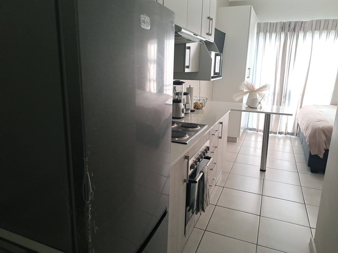 Discover modern living in this well-appointed studio apartment, 1-bathroom apartment located in a contemporary complex in Grand Central, Midrand. The building's exterior presents a sleek, modern architectural style, featuring clean lines and attractive stone cladding accents, complemented by a covered entranceway and ample marked parking, ensuring a welcoming first impression.