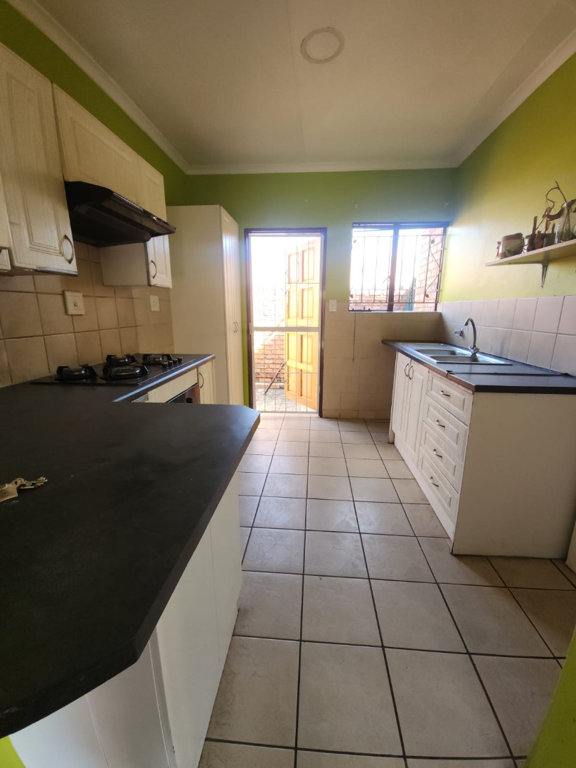 Discover comfortable living in this well-appointed residential property located in a secure complex in Halfway Gardens, Midrand, South Africa. This charming home presents a durable brick exterior with a tiled roof, offering a welcoming kerb appeal. The interior boasts an open-plan layout, seamlessly connecting the lounge and dining areas, both featuring low-maintenance laminate flooring and modern recessed lighting. The functional kitchen is equipped with a gas hob, extractor fan, ample white cabinetry, dark countertops, and tiled flooring, catering to everyday culinary needs. While the vibrant green walls add a unique character, they also offer an opportunity for personalisation to suit your taste. The residence comprises two comfortable bedrooms and two bathrooms, with one being an en-suite, providing privacy and convenience. Each space is designed for practical living, ensuring a comfortable environment for residents. Outdoor amenities include a private garden and paved areas, offering a personal retreat within the 200 sqm erf. The property features a single garage with a roll-up door and an additional designated parking space, ensuring secure vehicle accommodation. Residents also benefit from access to a communal swimming pool, perfect for relaxation and recreation. This pet-friendly complex allows for furry companions to enjoy the space too. Security is paramount within this complex, featuring 24-hour security, CCTV surveillance, and an access gate, providing peace of mind. The home is also fibre-ready, ensuring high-speed internet connectivity for work and entertainment. Halfway Gardens is a sought-after residential suburb in Midrand, known for its convenient location and access to essential amenities, schools, and major transport routes, making it an ideal choice for modern living. Key Features: * 2 Bedrooms, 2 Bathrooms (1 en-suite) * Open-plan lounge and dining areas * Functional kitchen with gas hob * Single garage and dedicated parking * Communal swimming pool access * Private garden and paved outdoor space * Fibre-ready connectivity * 24-hour security complex with CCTV * Pet-friendly environment