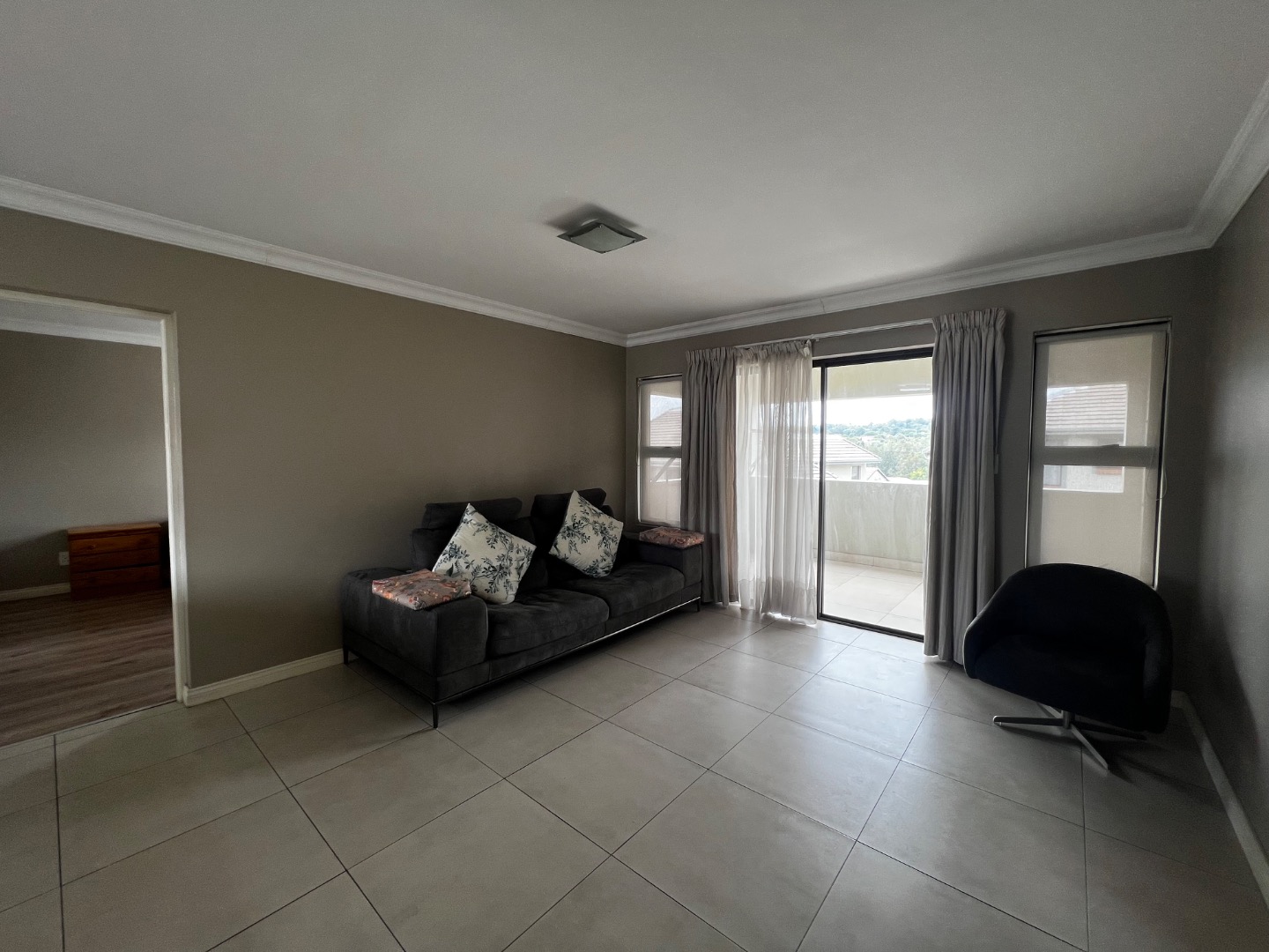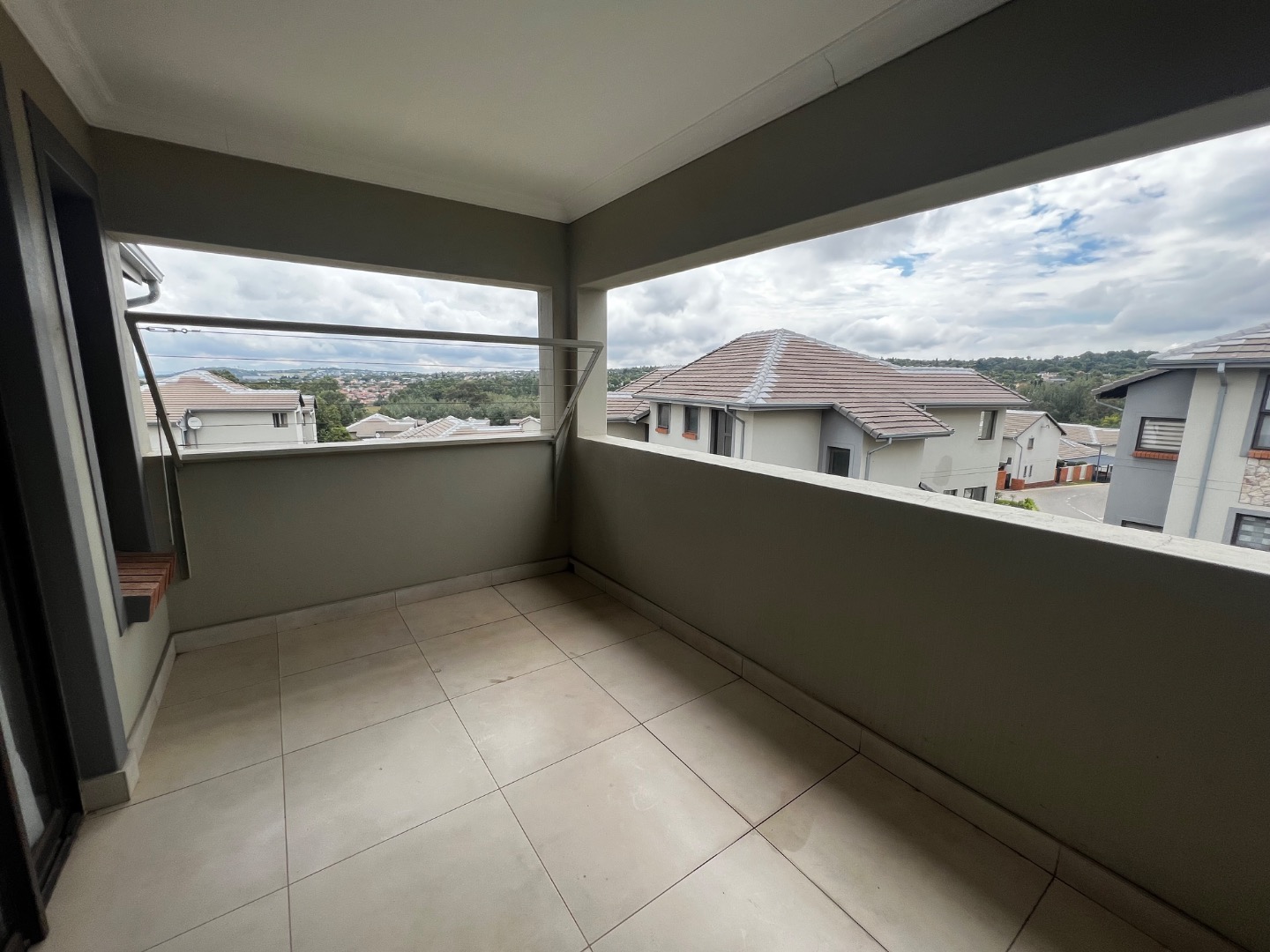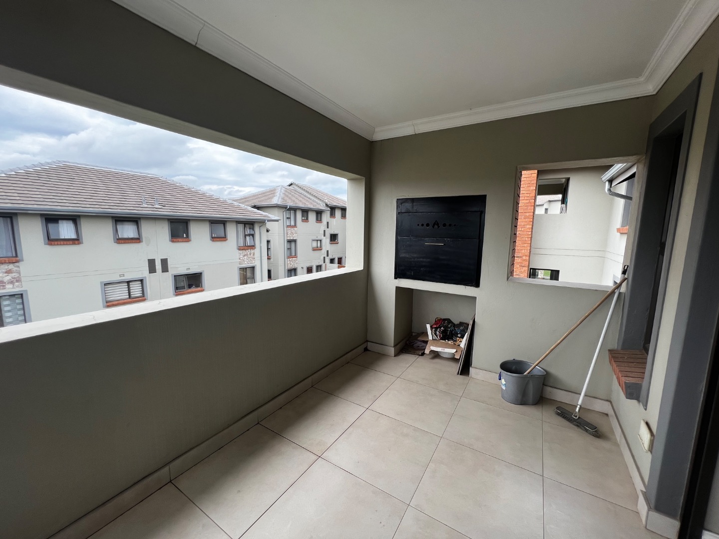 The living area flows seamlessly onto a very large outdoor space featuring a dedicated braai area — perfect for entertaining — while enjoying a really pleasant, elevated view that enhances the overall sense of space and tranquility.