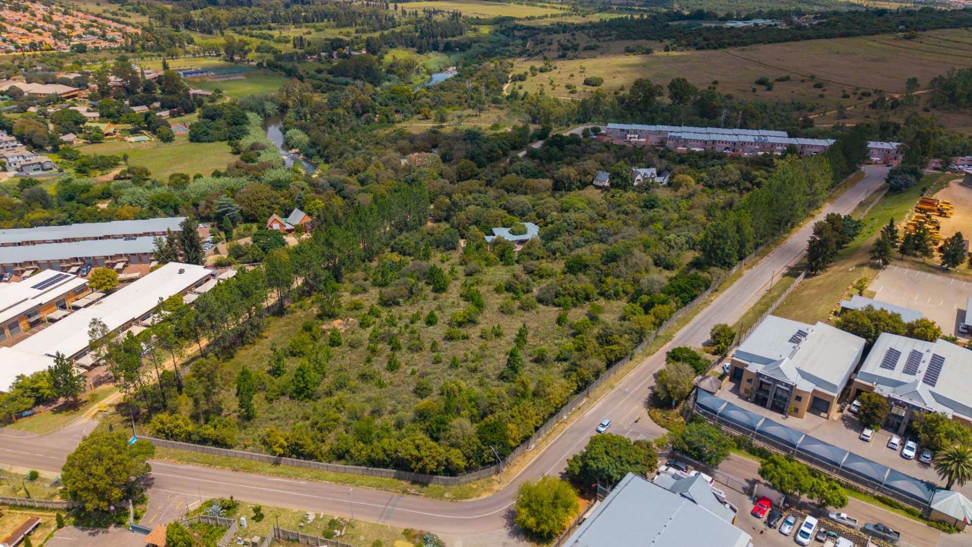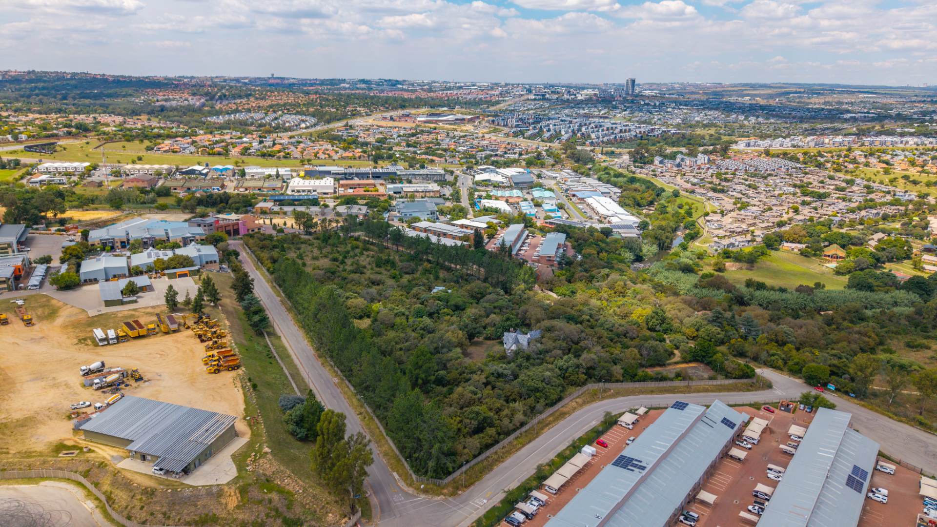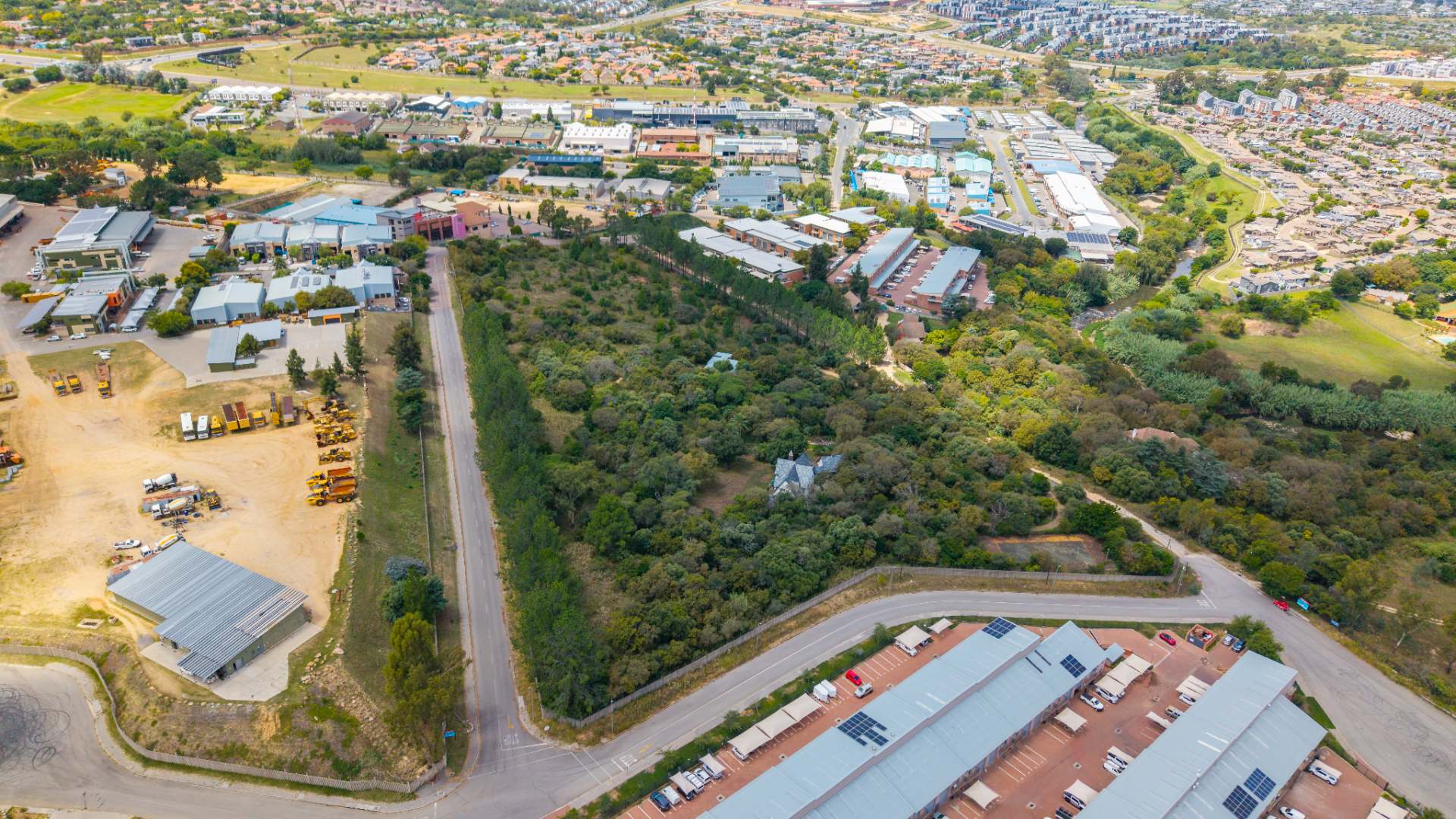 Currently characterized by dense tree cover and a natural stream along one boundary, the site offers both natural ambiance and the potential for green space integration. Its generous road frontage ensures excellent accessibility. The property's strategic position, surrounded by a vibrant mix of commercial, industrial, and residential developments, underscores its immense investment and usage potential. This prime parcel is perfectly suited for a range of developments, from corporate parks to logistics hubs.