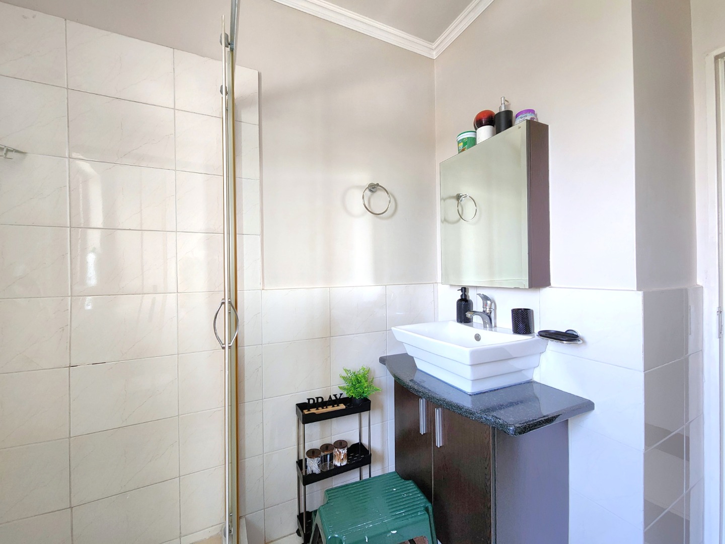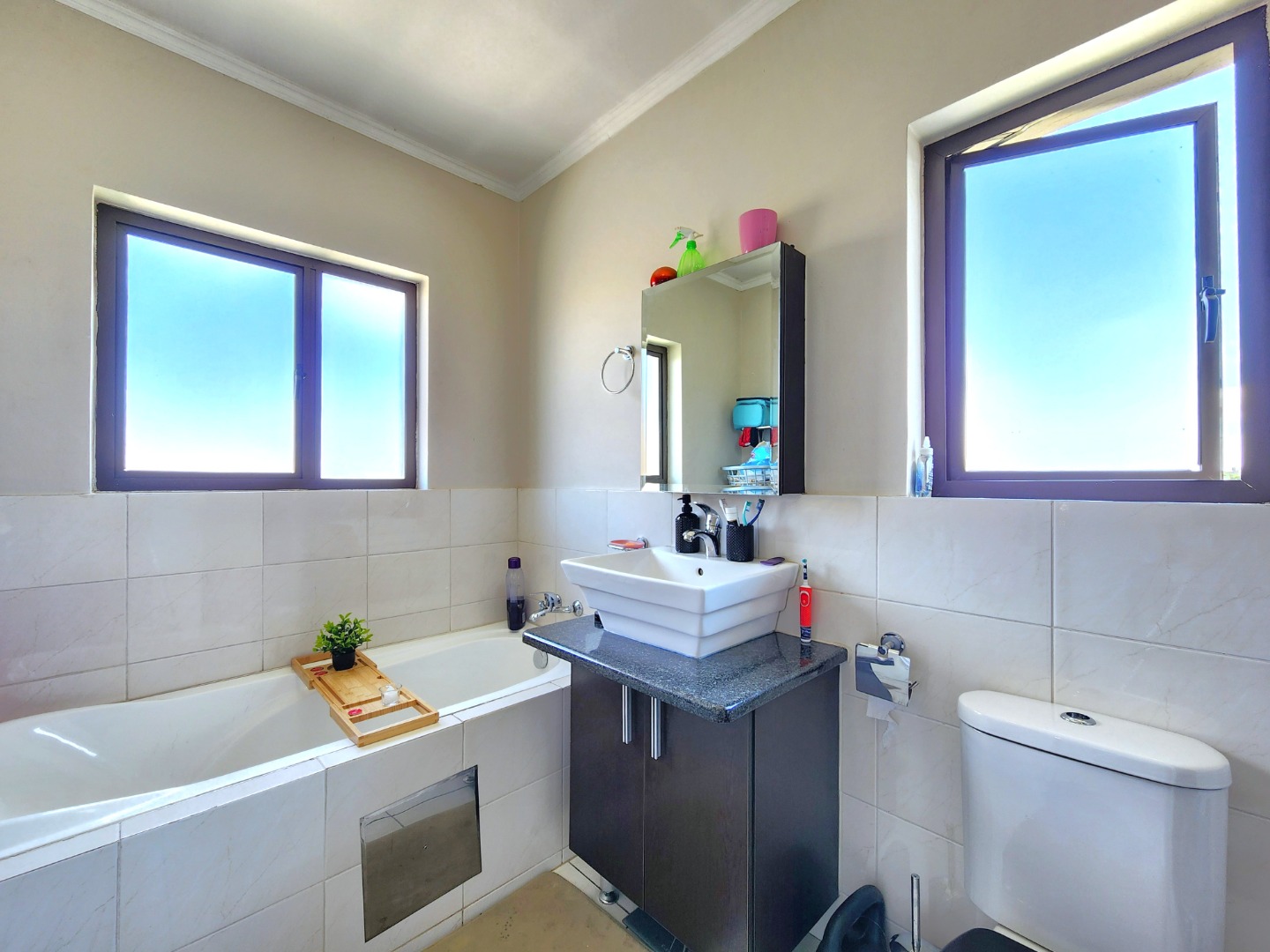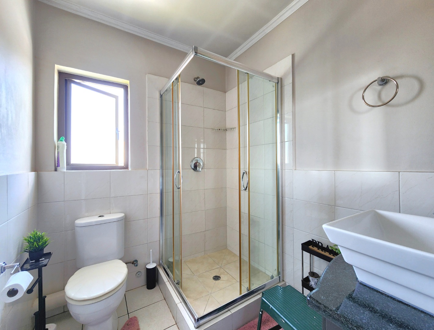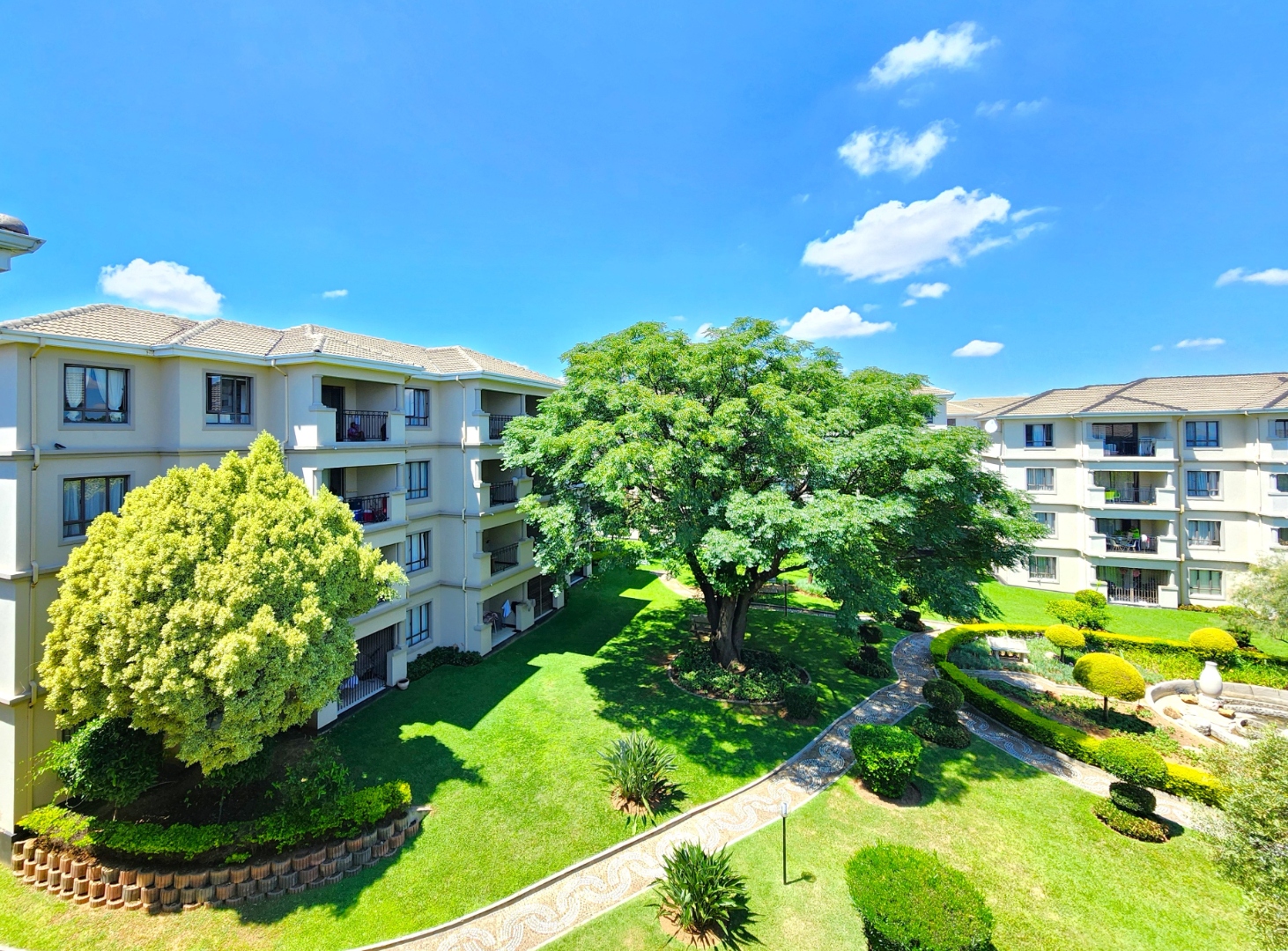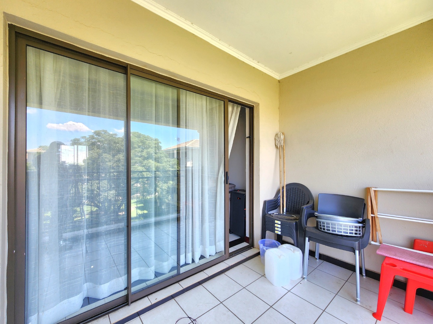 The unit includes a covered carport, along with plenty of secure visitors’ parking within the complex. Residents also have access to a communal swimming pool and braai area, while the landscaped grass and fountain areas offer a peaceful space for walks and relaxation.