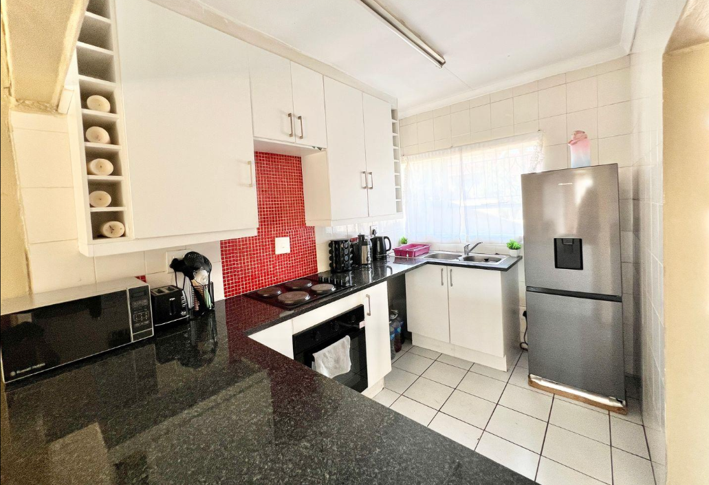 Discover secure and comfortable living in this well-maintained 87 sqm townhouse, nestled within the 'Sunset Valley' complex in Vorna Valley, Midrand. The property immediately impresses with its robust security features, including a gated entrance with a boom barrier, electric fencing, ADT monitoring, high perimeter walls, and security bars on windows, ensuring peace of mind for residents. The complex boasts a consistent architectural style with tan exteriors and red tile roofs, complemented by mature palm trees and lush landscaping, creating an inviting kerb appeal. The interior features a modern and functional kitchen, equipped with sleek white cabinetry, contrasting black granite countertops, and a vibrant red tiled backsplash. This space is well-appointed with modern appliances, including a built-in oven/hob, microwave, and fridge, alongside an integrated wine rack, all benefiting from ample natural light and practical tiled flooring. This home offers two comfortable bedrooms, each designed with built-in wardrobes to maximise storage and maintain a tidy living environment. The single bathroom provides convenient access, enhancing the functionality of the living space. Outside, the property includes a dedicated garage, providing secure parking and additional storage. The surrounding complex environment is characterized by its quiet residential setting, well-maintained common areas, and established greenery, offering a pleasant lifestyle. Vorna Valley, situated in the vibrant city of Midrand, is a sought-after residential area known for its accessibility and convenience. It offers a balanced lifestyle with proximity to essential amenities, major transport routes, and various commercial hubs. Key Features: * Secure Gated Complex with Boom Barrier * Electric Fencing and ADT Monitoring * 87 sqm Floor Size * Two Bedrooms with Built-in Wardrobes * One Bathroom * Modern Kitchen with Granite Countertops * Integrated Wine Rack * Dedicated Garage * Well-Maintained Exterior and Landscaping * Located in Vorna Valley, Midrand