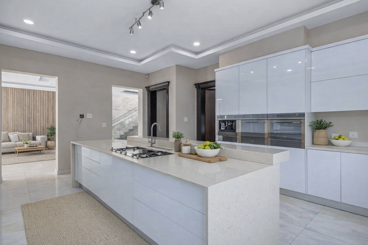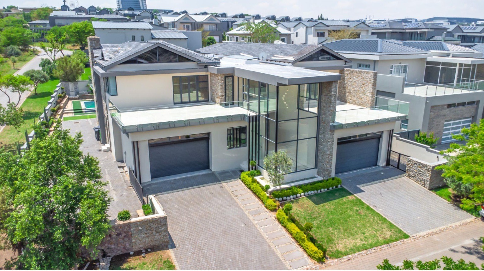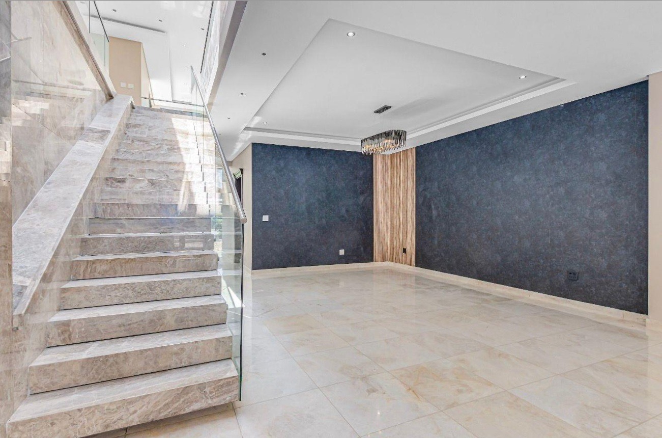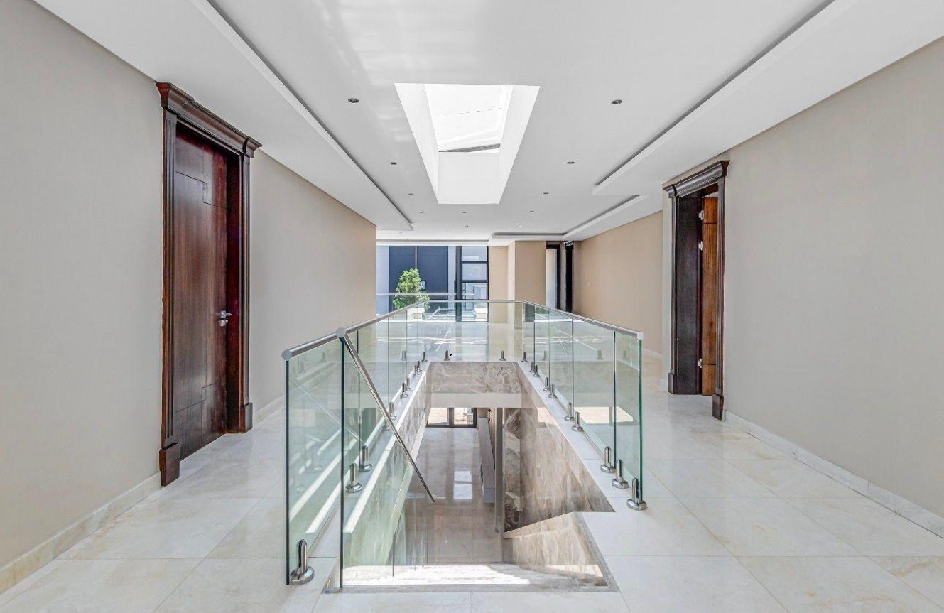 Discover refined living in this exceptional 1,061m² residence set on a 1,205m² stand in the heart of Midrand. This architectural marvel features a grand entrance hall with sleek glass balustrades and polished marble floors, leading to expansive living spaces illuminated by floor-to-ceiling glass walls. Designed for grand-scale entertaining and luxurious daily life, the home boasts high ceilings, special lighting, and sophisticated finishes throughout.