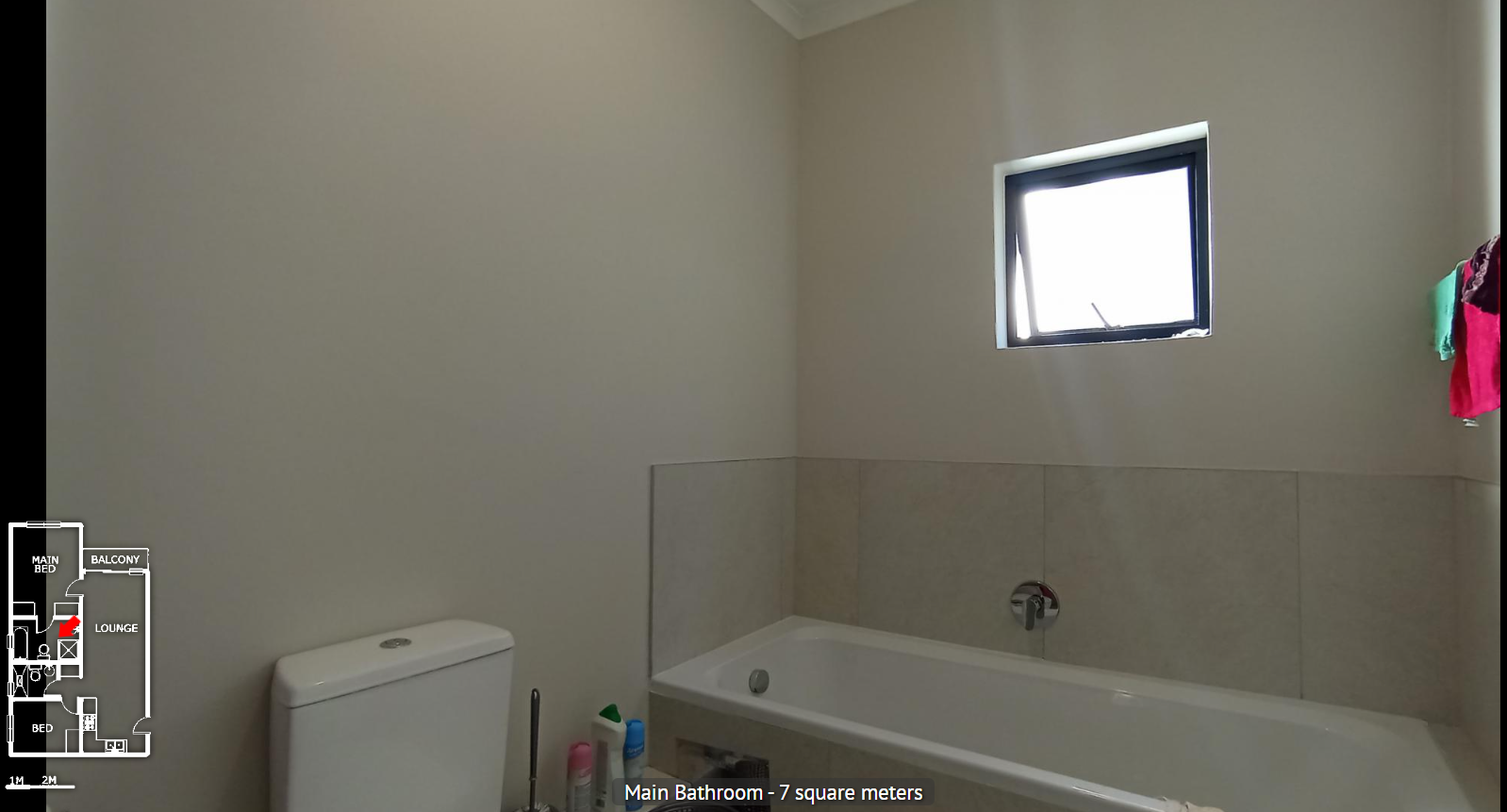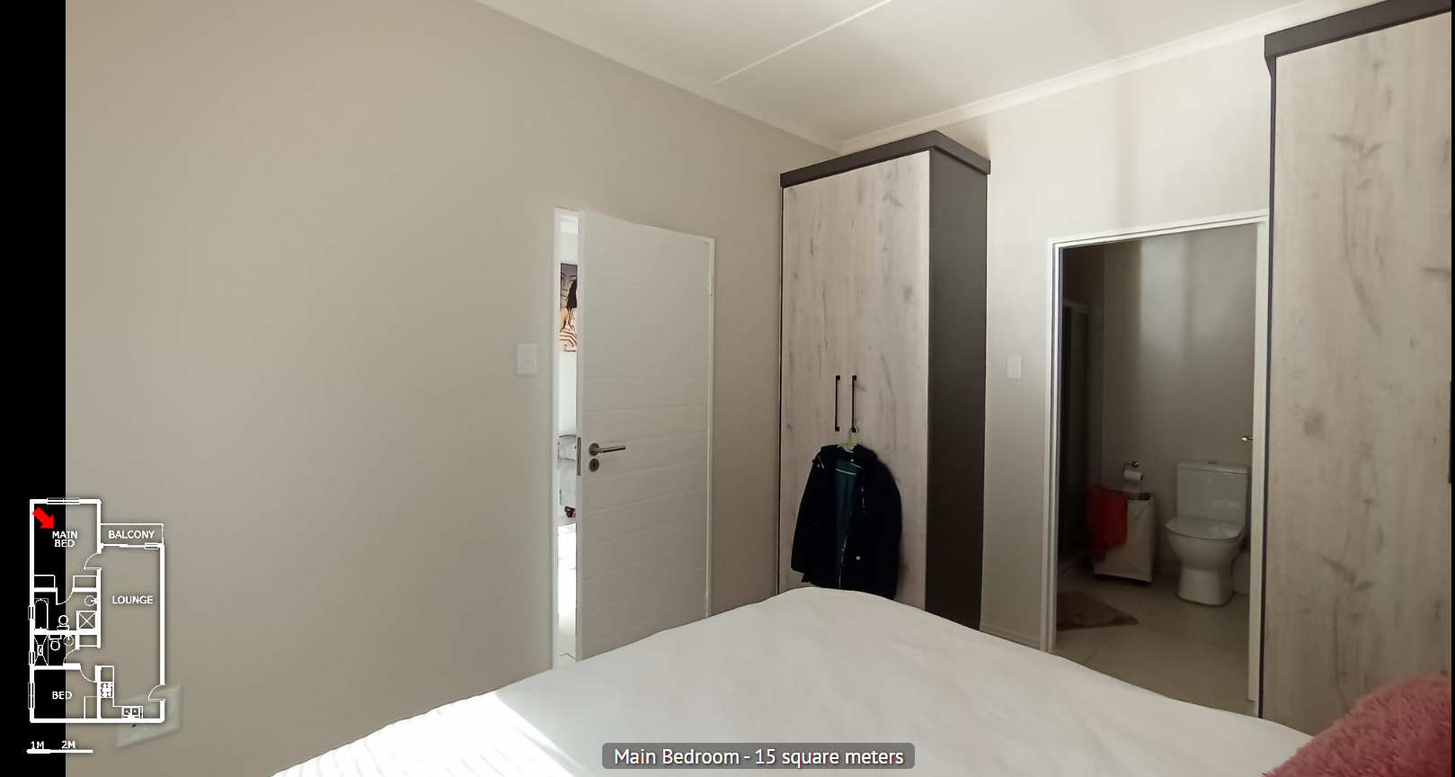 Discover contemporary living in this stylish 2-bedroom, 2-bathroom apartment within a secure estate in Waterfall, Midrand. Boasting modern architectural design, this residence offers a sophisticated lifestyle. The interior features a seamless open-plan layout, integrating a bright 16-square-meter lounge area with ample natural light and direct access to a private balcony, perfect for relaxation. The well-appointed 8-square-meter kitchen showcases modern two-tone cabinetry with light wood-grain uppers and dark grey lower units. It is equipped with integrated appliances including a hob, oven, extractor fan, and a built-in microwave, alongside under-counter space for a washing machine. This thoughtful design ensures both functionality and a sleek aesthetic. Accommodation includes two comfortable bedrooms. The main bedroom, a generous 15 square meters, features a modern built-in wardrobe and an en-suite bathroom. This private sanctuary is fitted with contemporary fixtures, including a glass-enclosed rain shower and a sleek vanity. A second well-appointed bathroom serves the additional bedroom and guests. Residents benefit from dedicated covered parking within the complex, part of a larger security estate, ensuring peace of mind. Waterfall, Midrand, is a sought-after area known for its modern developments, convenient amenities, and accessibility, ideal for professionals and small families. Key Features: * Modern 2-bedroom, 2-bathroom apartment * Open-plan lounge with private balcony * Contemporary kitchen with integrated appliances * Main bedroom with en-suite and built-in wardrobe * Dedicated covered parking * Secure estate living * 65 sqm floor size