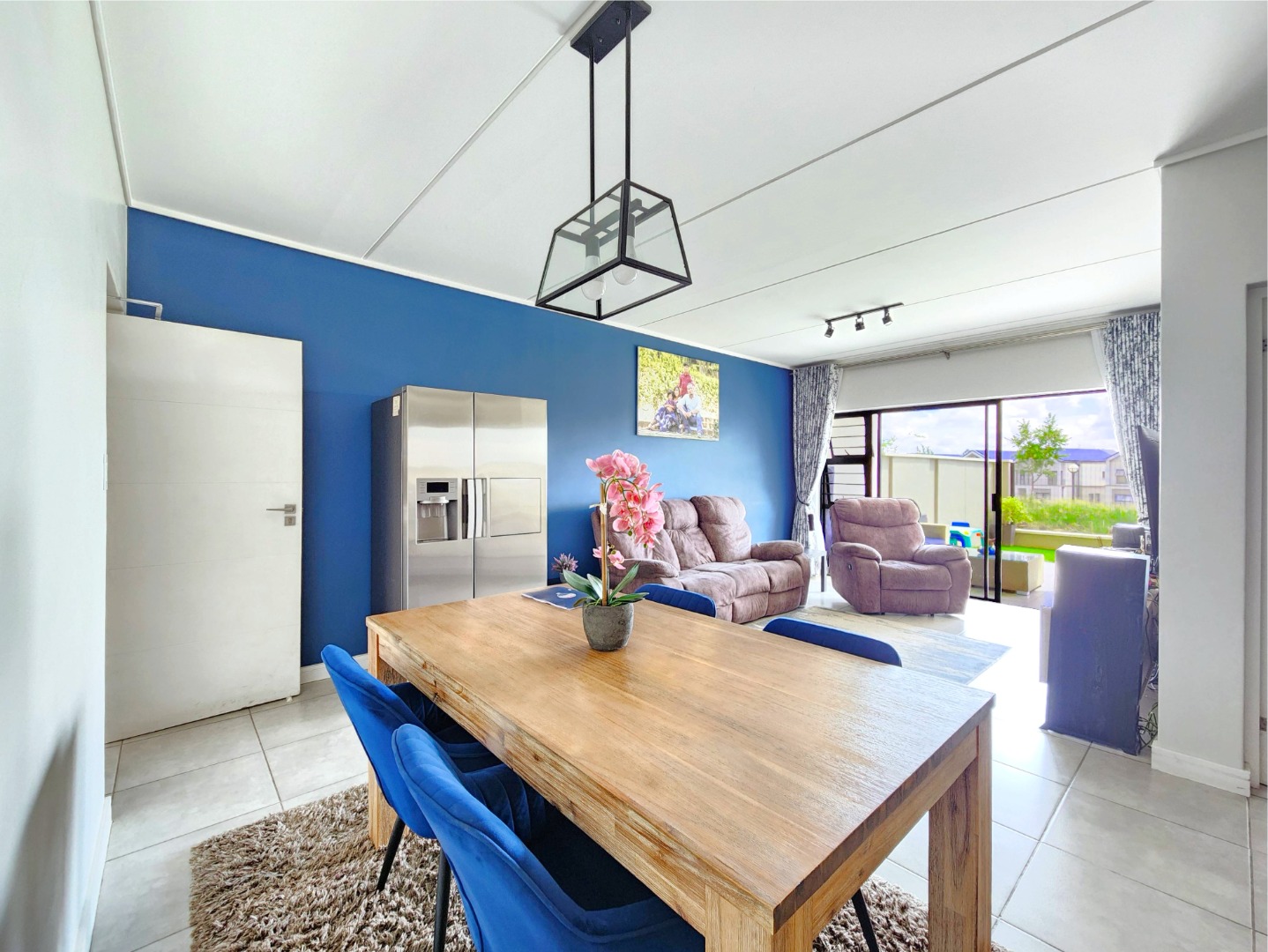 This home offers a seamless open-plan layout, combining a modern kitchen, dining area, and spacious TV lounge that flows effortlessly onto a covered patio, overlooking a generous private garden, ideal for entertaining or relaxing in comfort.