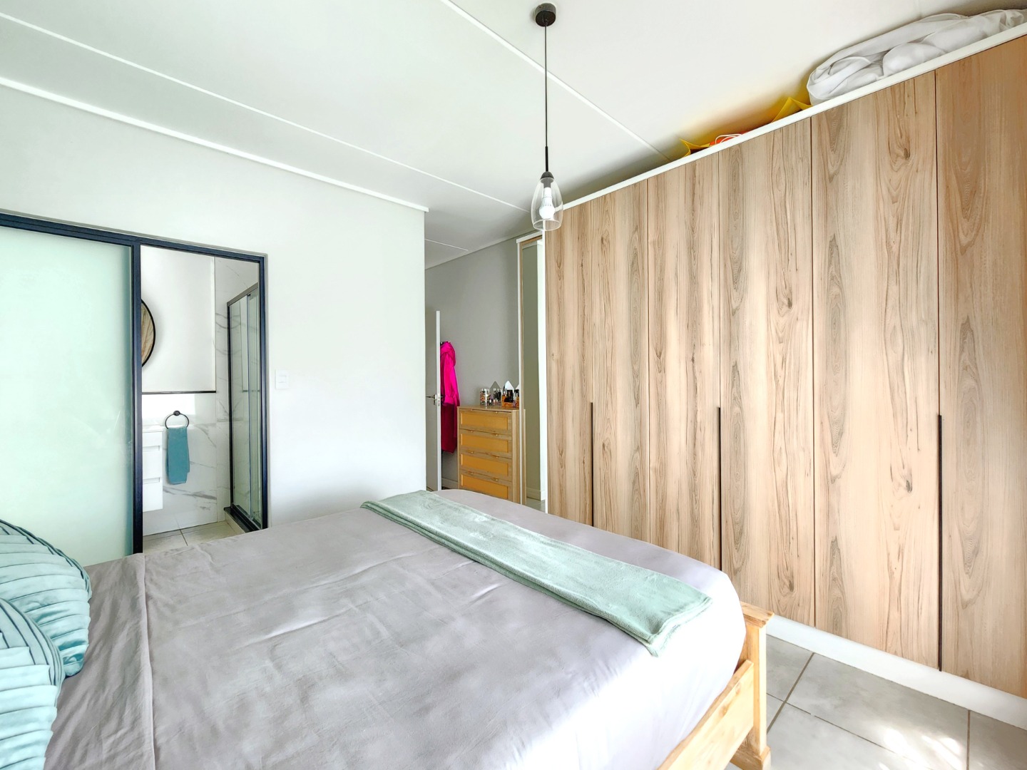 All three bedrooms are well-sized and feature built-in cupboards, while the apartment includes two modern bathrooms, with the main bedroom enjoying a private en-suite.