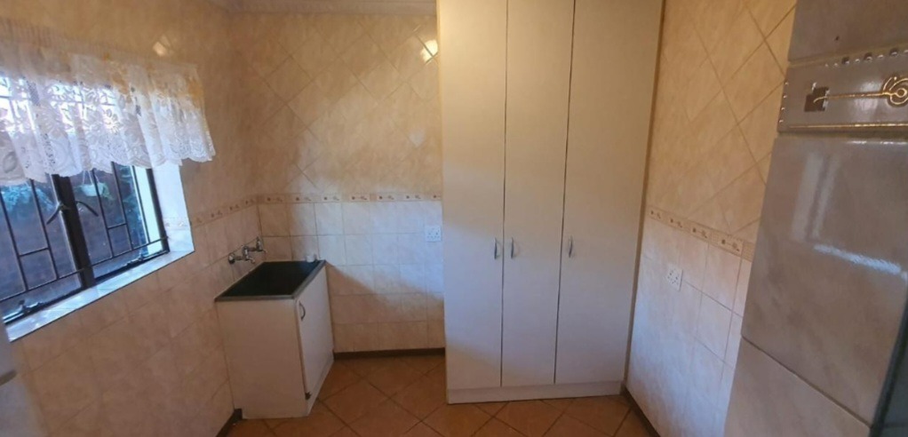 This inviting family home in Mountain View, Pretoria, offers a well-appointed interior designed for comfortable living. It features four spacious bedrooms and two bathrooms, including a convenient en-suite. The residence boasts a dedicated lounge and a dining room, providing ample space for relaxation and entertaining. The functional kitchen is equipped with extensive wooden cabinetry, granite-look countertops, a gas hob, an integrated refrigerator, and a double sink, complemented by a practical pantry. Tiled walls and flooring ensure easy maintenance throughout this central hub of the home.