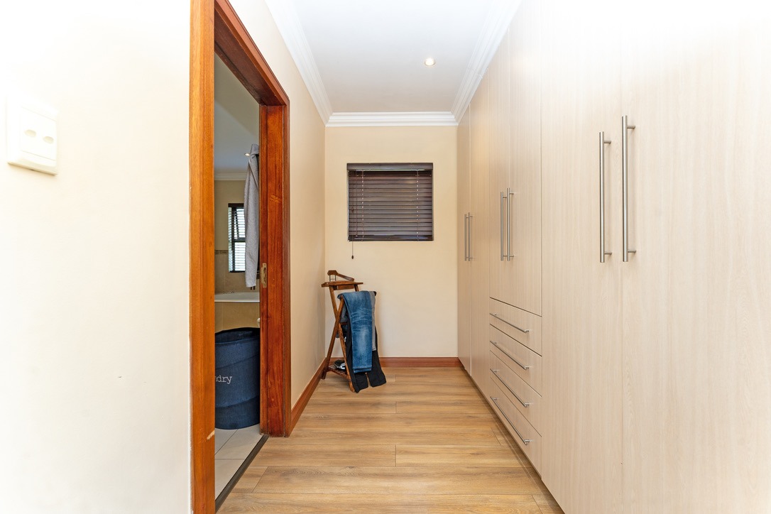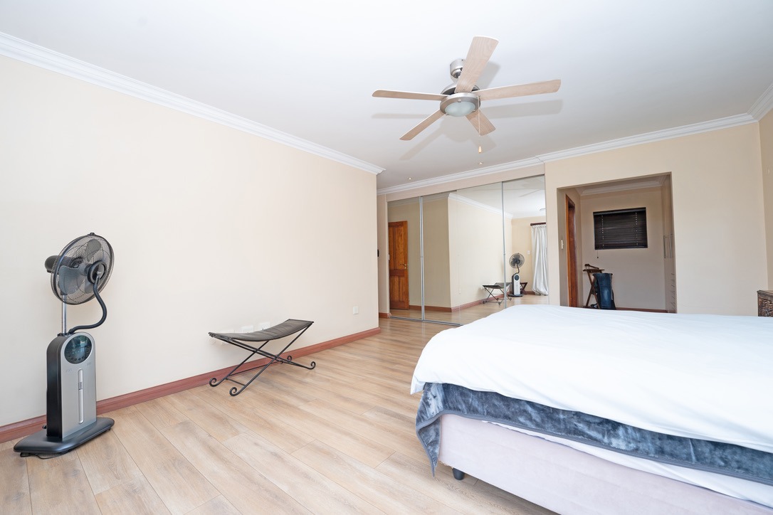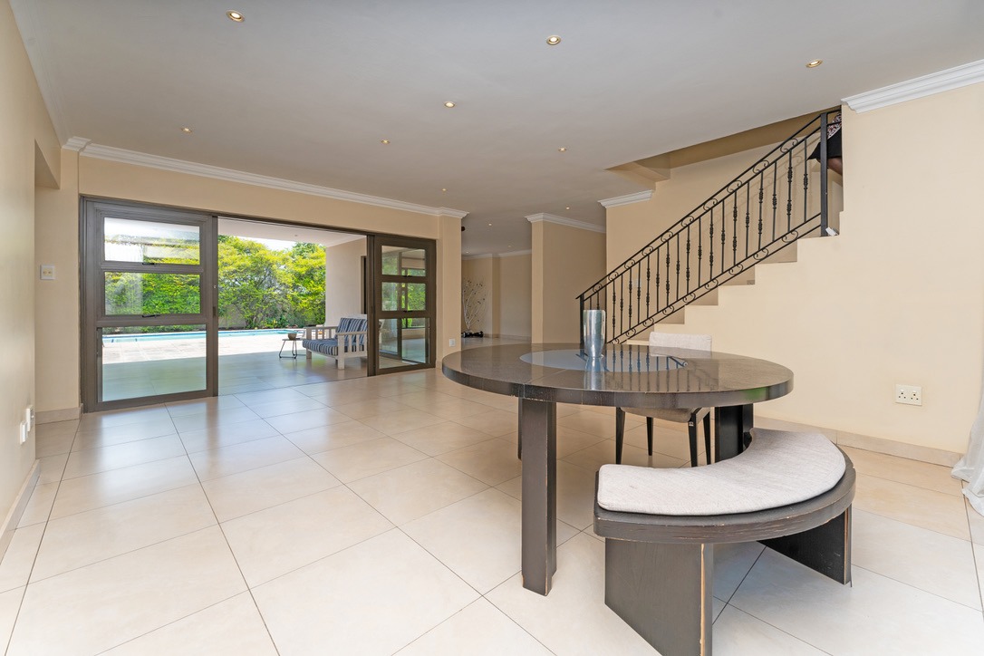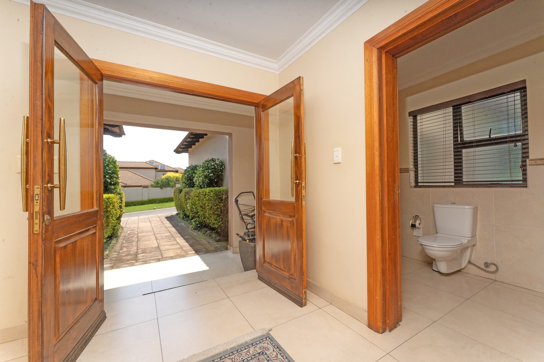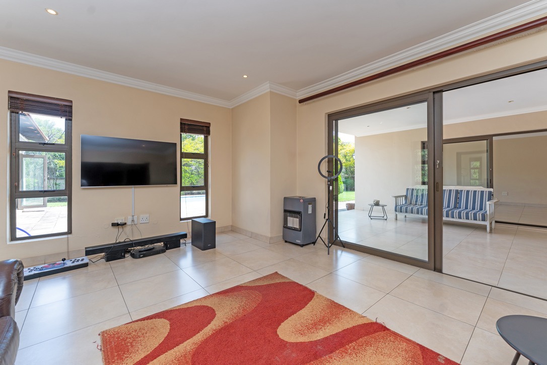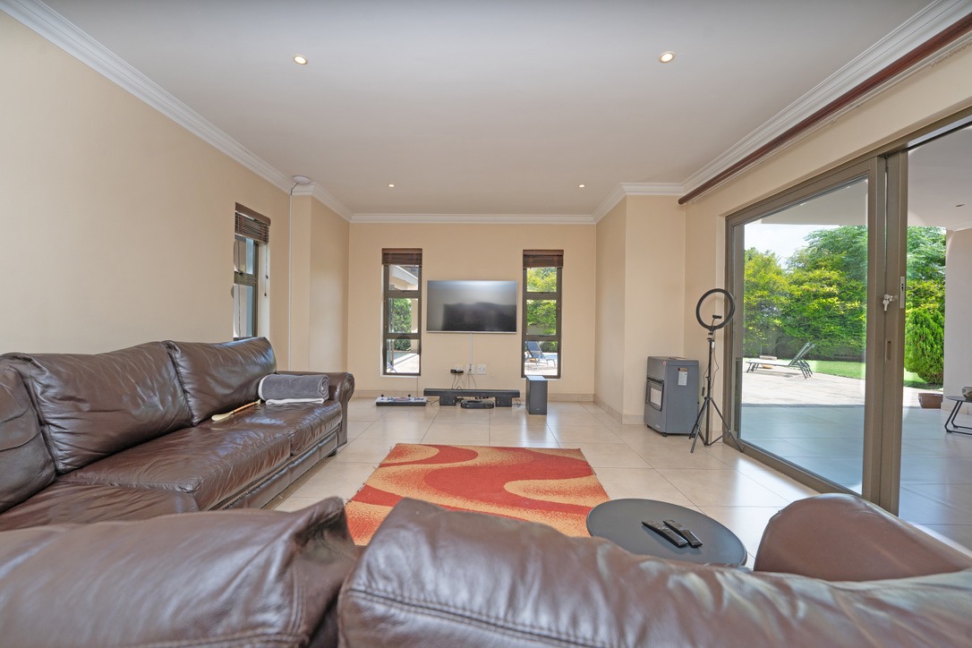 For larger gatherings, a formal lounge and generous dining room open onto the patio and lead to an impressive outdoor entertainment room — complete with built-in braai, pizza oven, fitted storage, guest toilet, and stacker glass doors that open on two sides for all-season enjoyment.