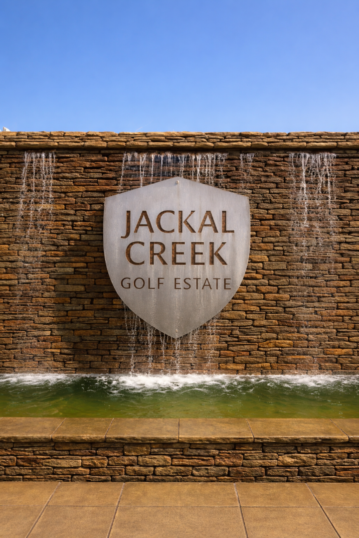 Jackal Creek Golf Estate is a secure, access-controlled estate with 24-hour security, perimeter control, and multiple access gates. The estate is built around an 18-hole golf course and includes a clubhouse, restaurant, pro shop, gym, squash courts, tennis courts, and multiple swimming pools.