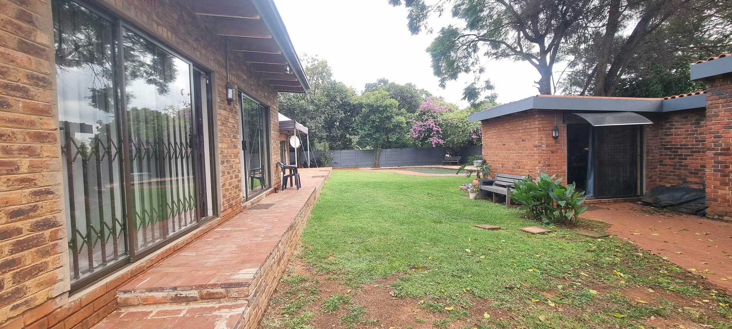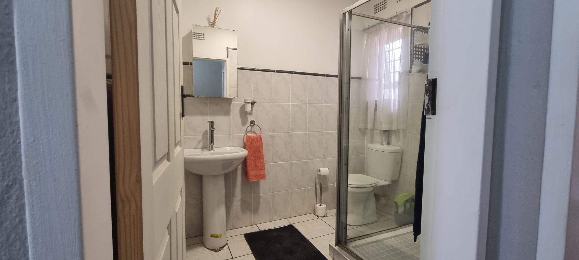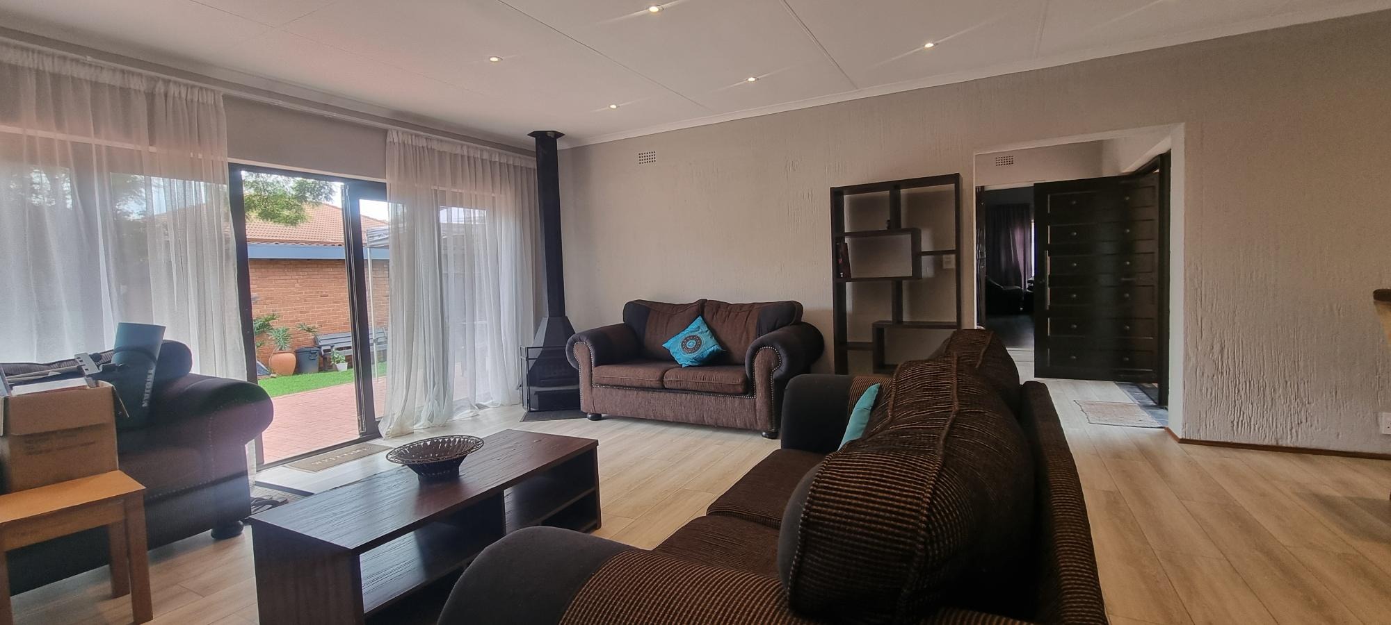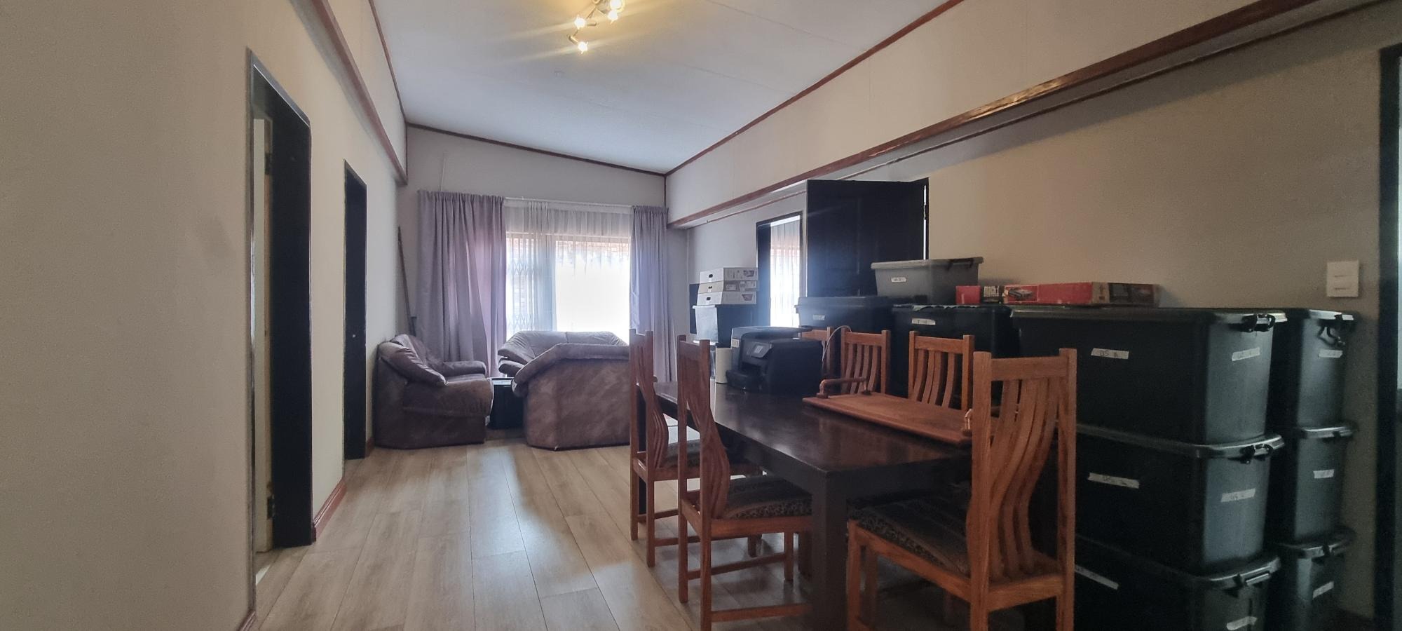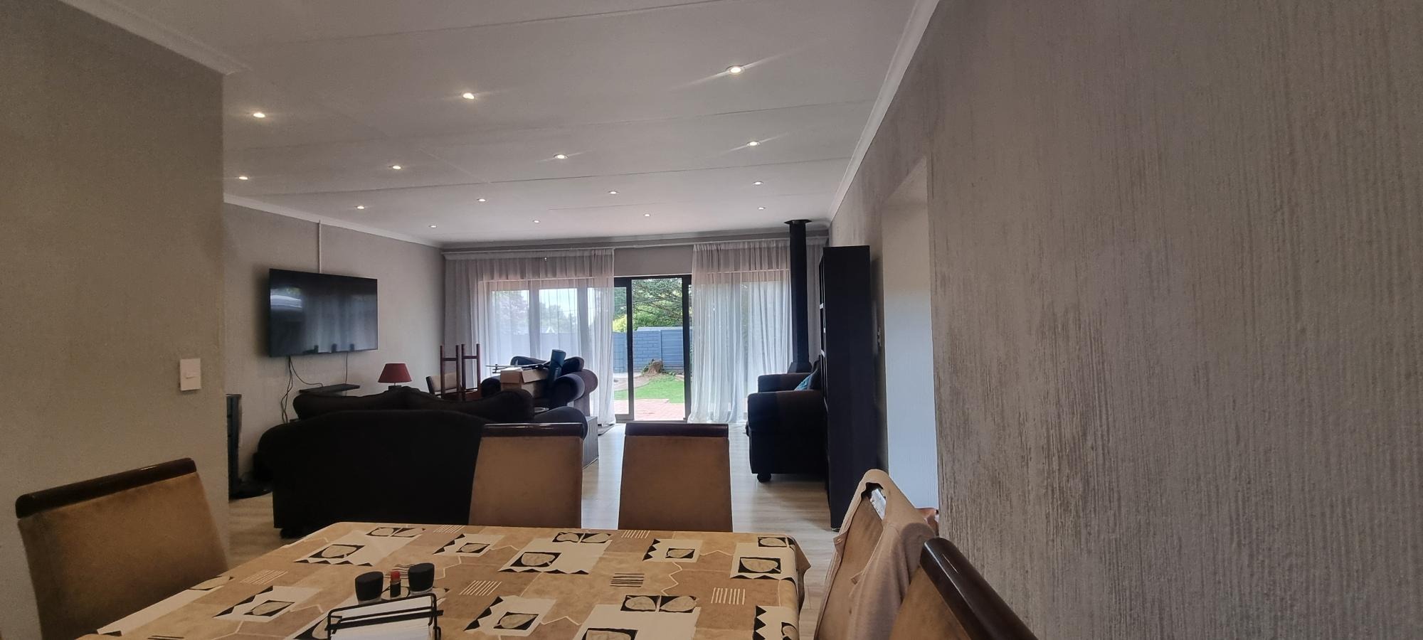 The property also offers covered parking for four vehicles, with plenty of additional parking space available. A rented solar system powers most of the home, and both the cottage and the second wing are fitted with gas geysers. Additional features include a gas stove and a conveniently located linen cupboard.