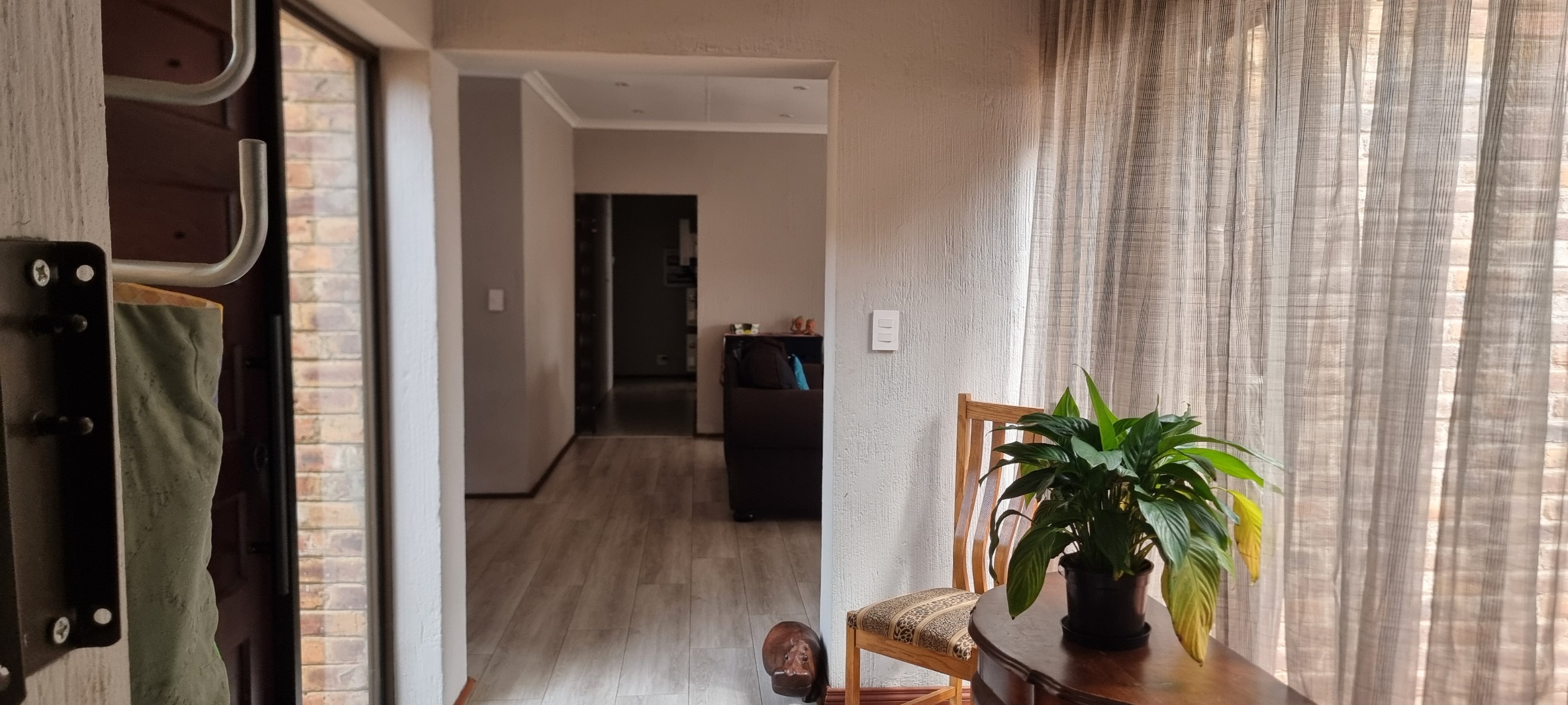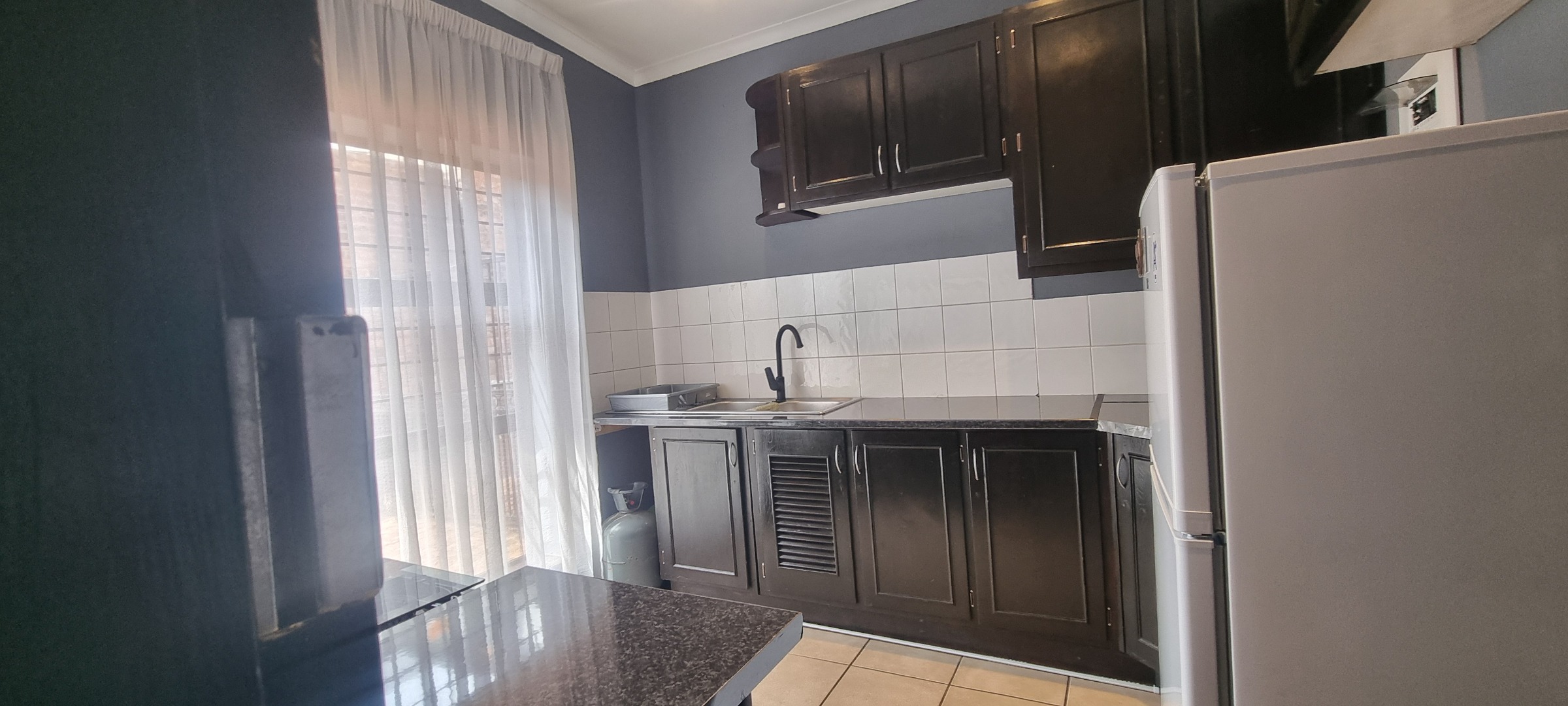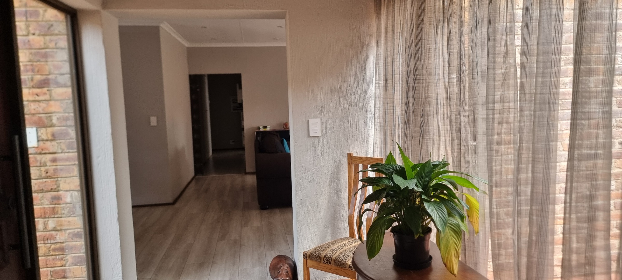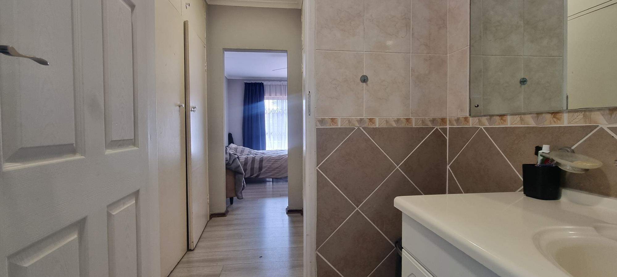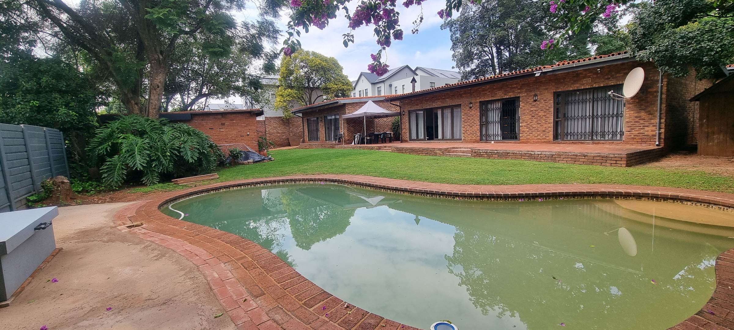 The property also offers covered parking for four vehicles, with plenty of additional parking space available. A rented solar system powers most of the home, and both the cottage and the second wing are fitted with gas geysers. Additional features include a gas stove and a conveniently located linen cupboard.