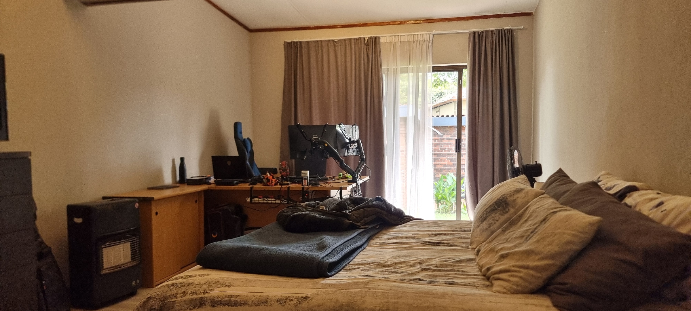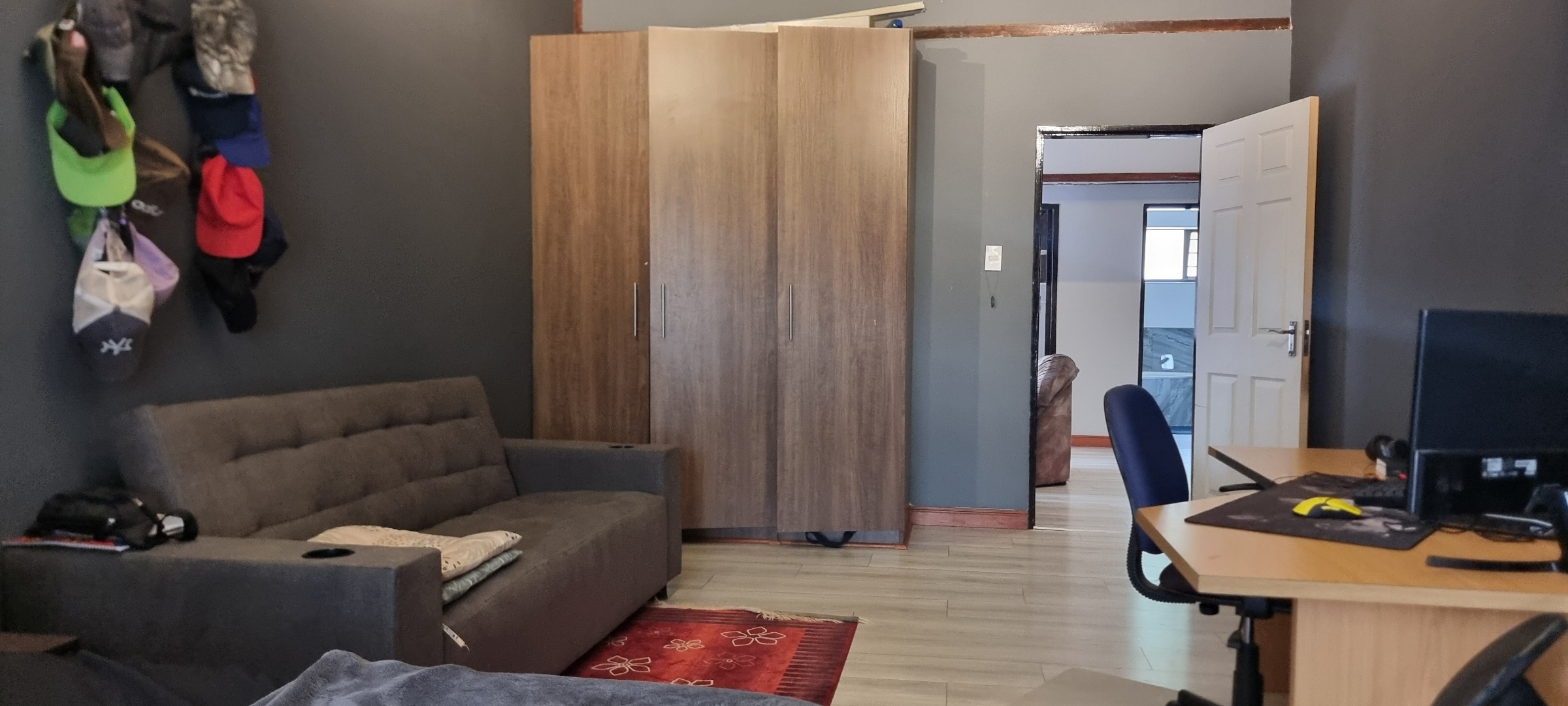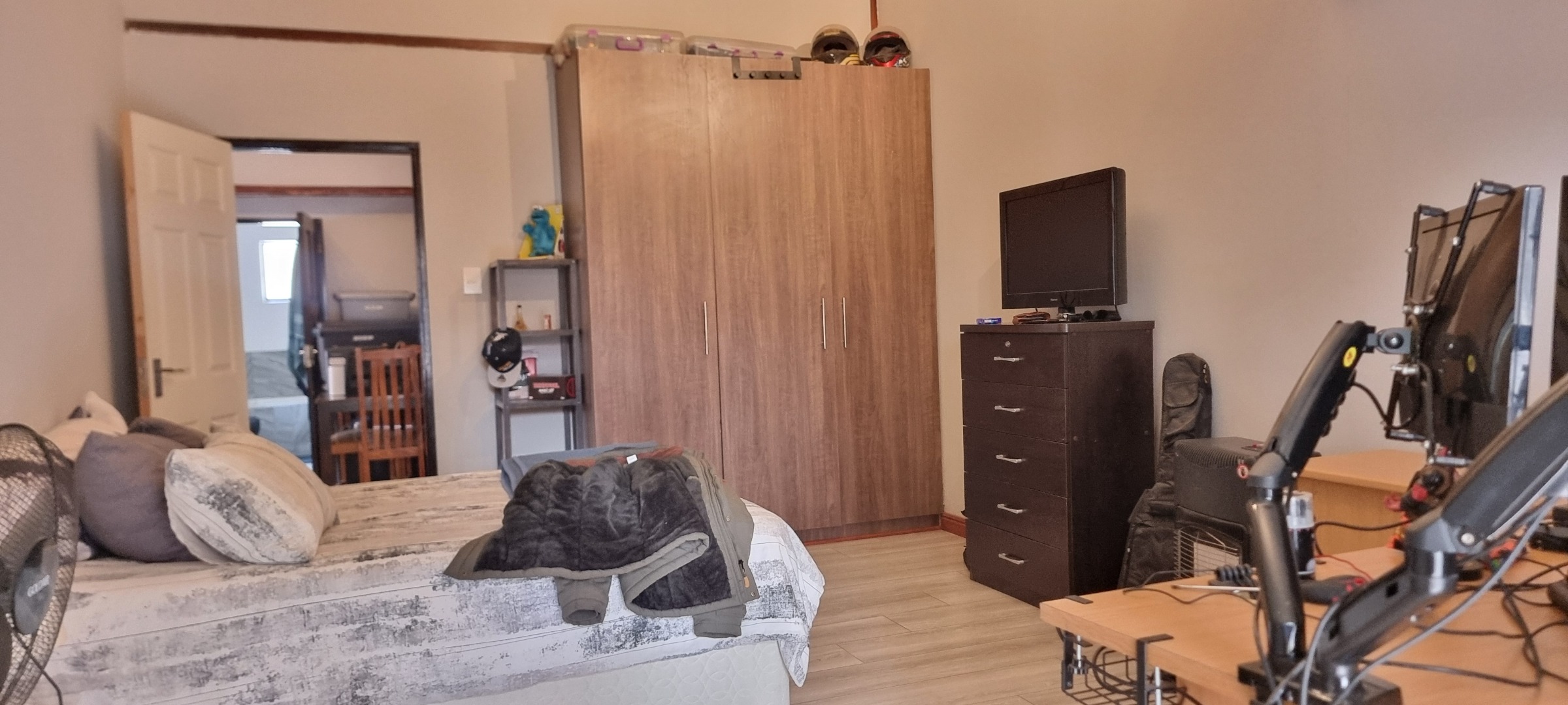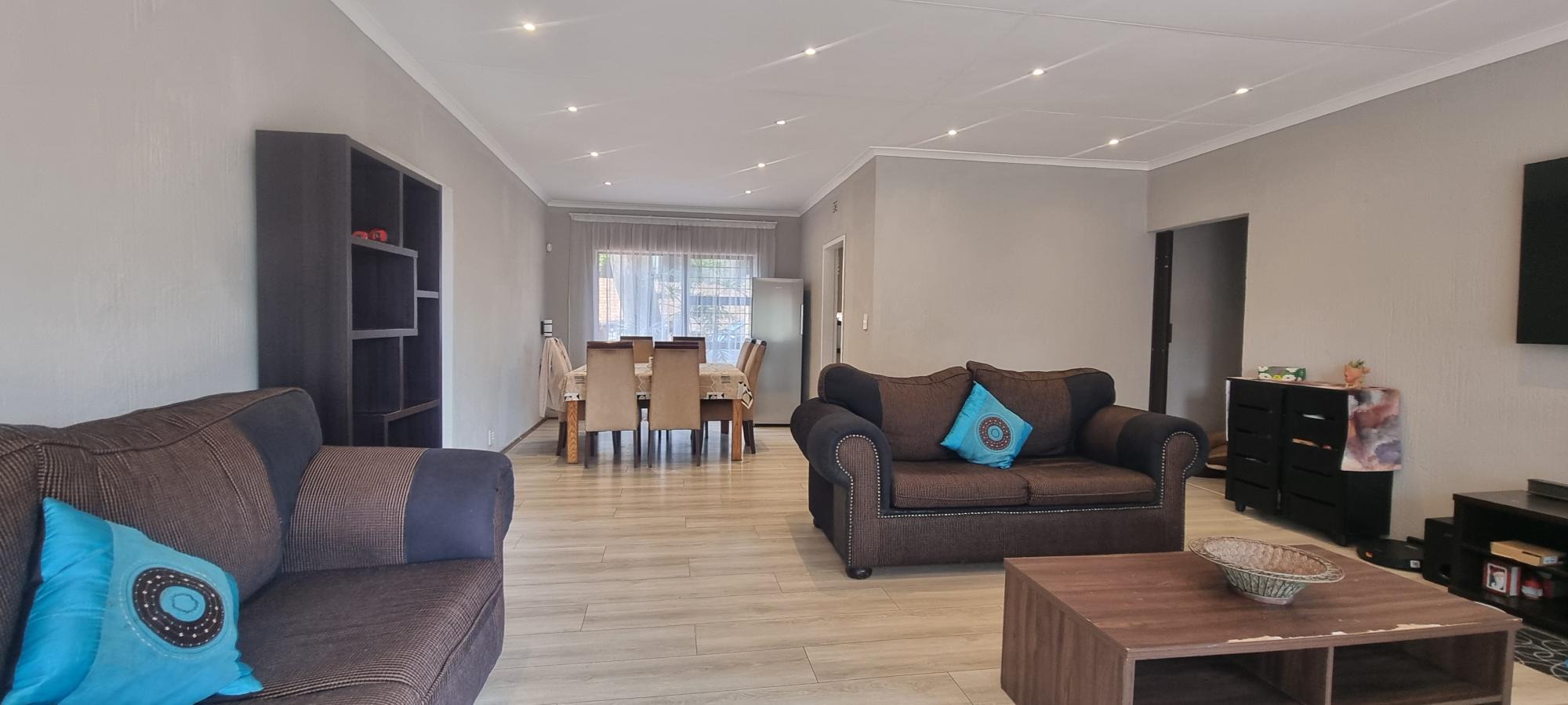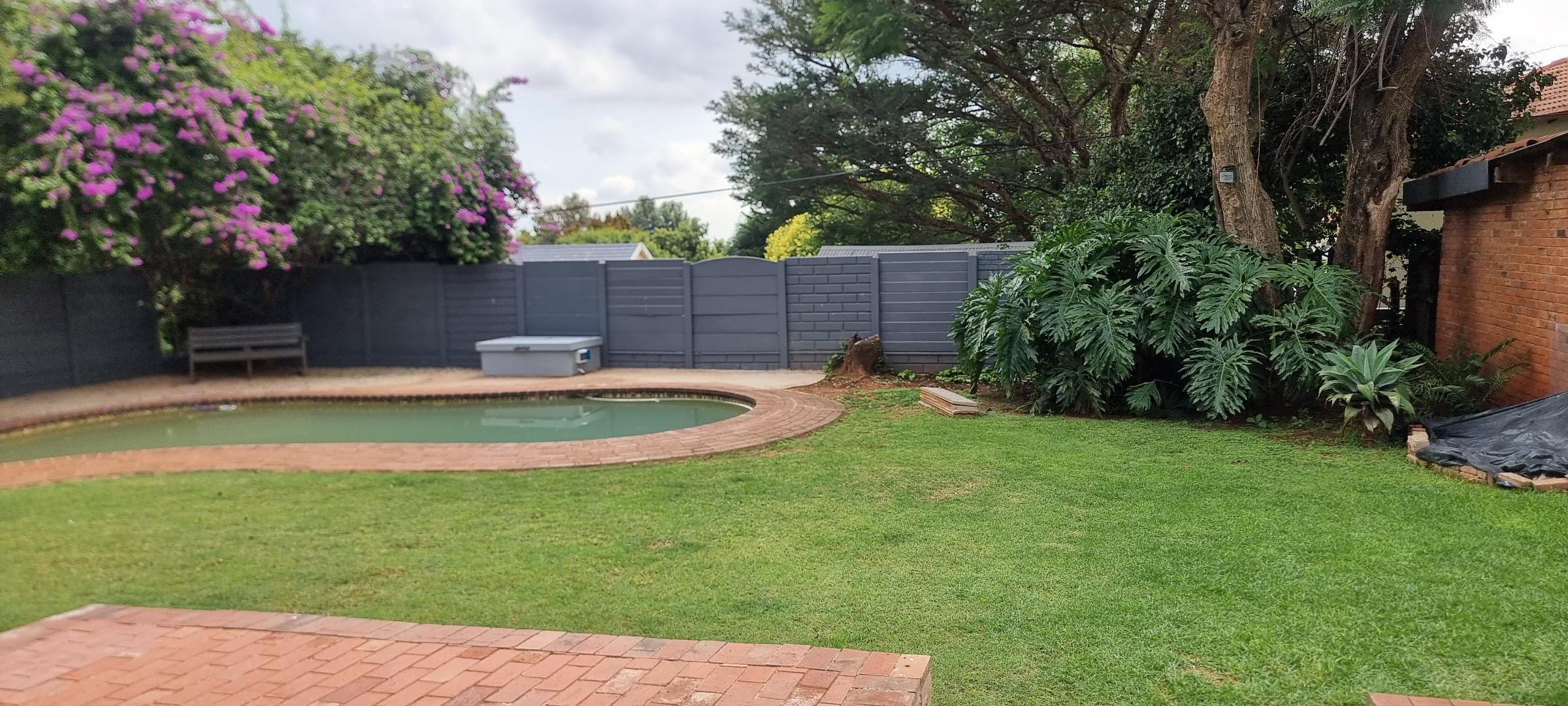 The property also offers covered parking for four vehicles, with plenty of additional parking space available. A rented solar system powers most of the home, and both the cottage and the second wing are fitted with gas geysers. Additional features include a gas stove and a conveniently located linen cupboard.