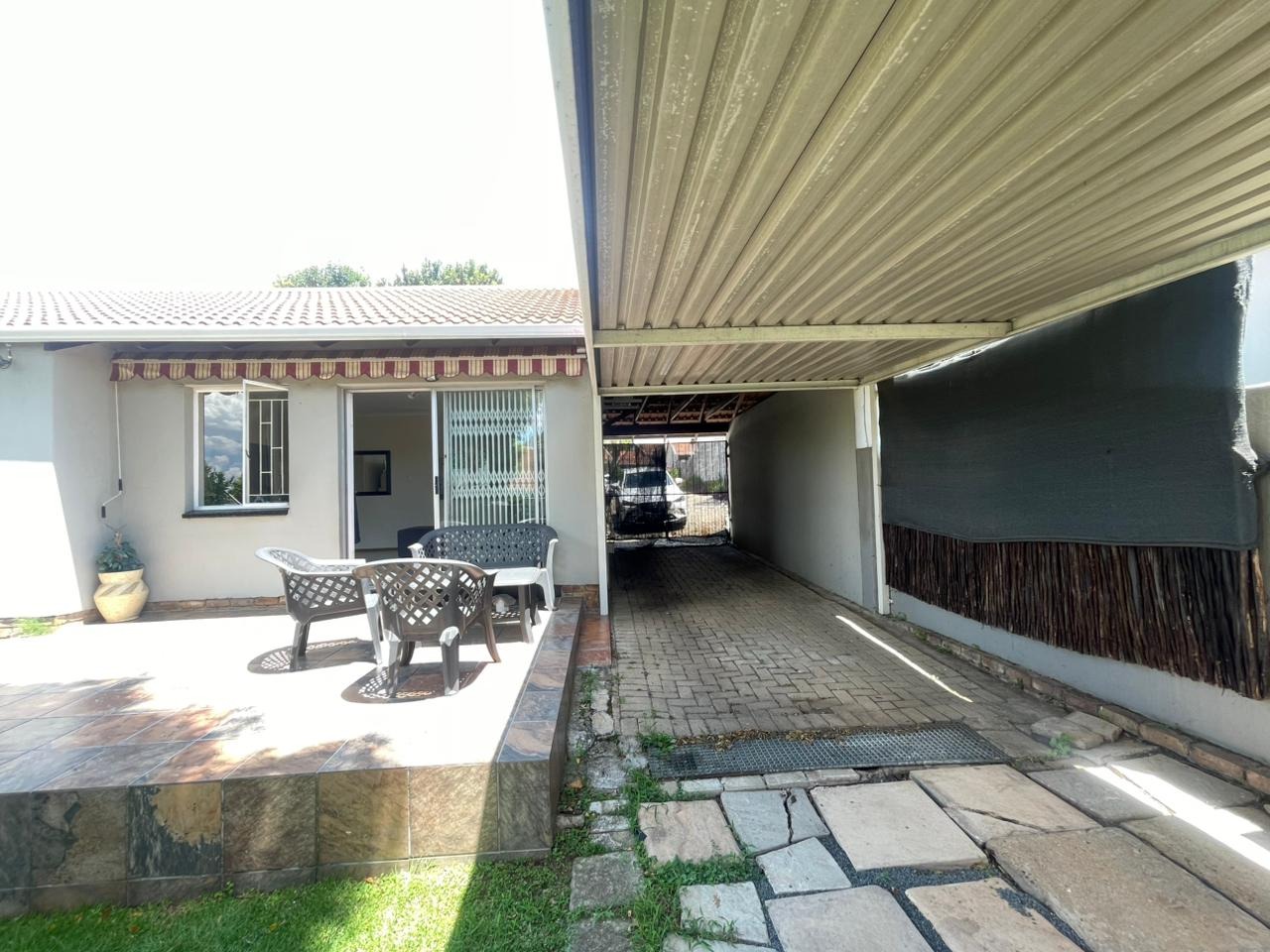 The home features large, airy bedrooms, all comfortably accommodating large beds while still offering ample additional space. It includes a full bathroom fitted with both a bath and a shower, as well as a separate toilet for added convenience. Parking is well provided for with covered drive-through parking for up to three vehicles.