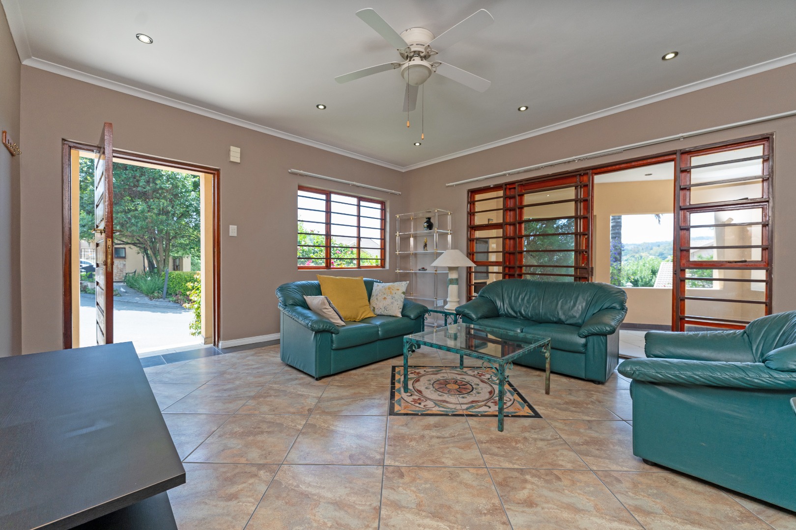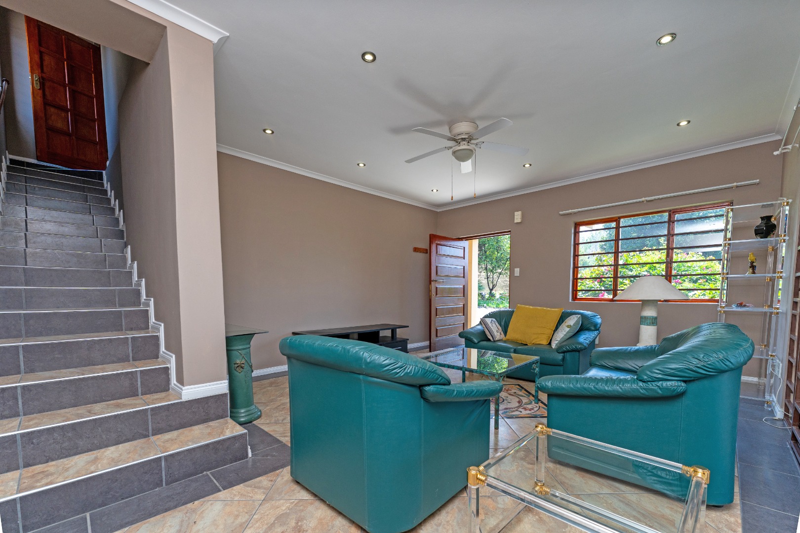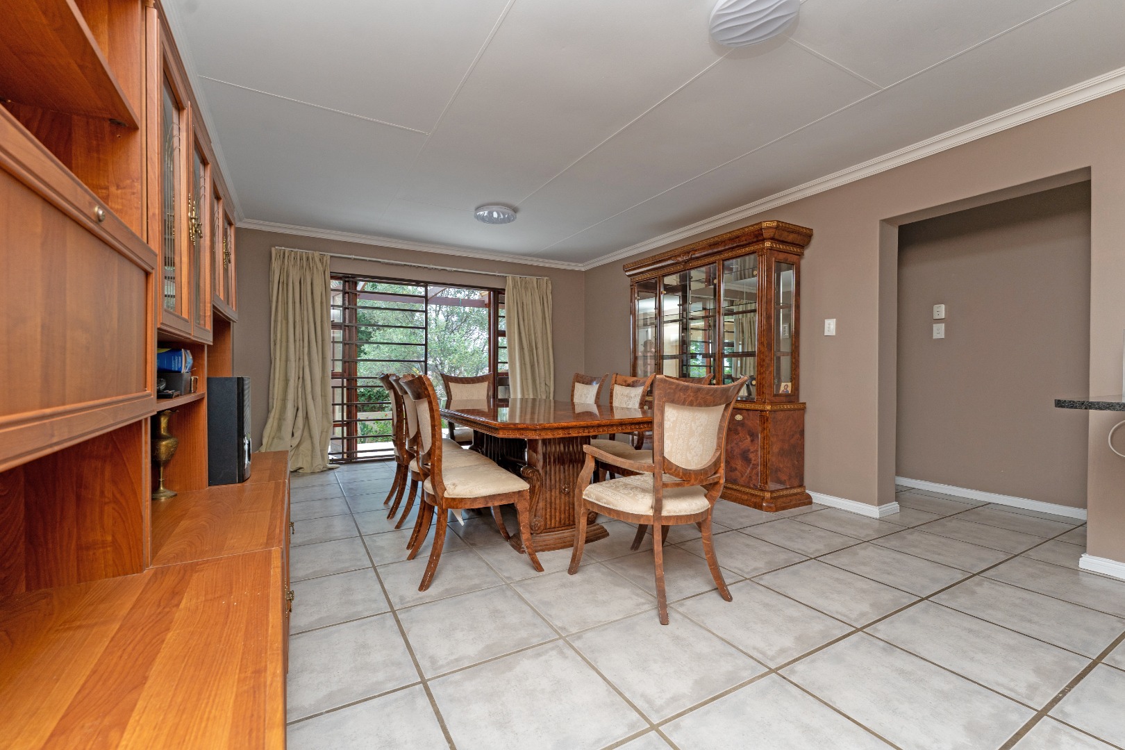 Downstairs Living – The moment you enter the spacious, light-filled home, you're welcomed by a bright and uplifting atmosphere. Two beautifully flowing reception areas—family room and dining area—create a seamless sense of openness, spilling effortlessly onto the large covered patio. Here, the built-in braai and generous entertainment area set the scene for long lunches, sunset chats, and year-round enjoyment, all framed by tranquil views of the Boskruin Koppie.