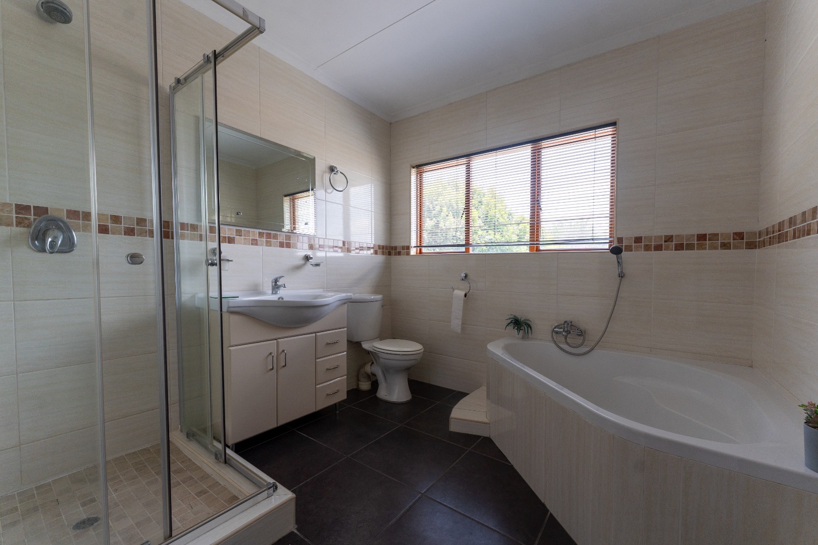 Upstairs Retreat / Flatlet- Designed for flexibility and independence, the fully self-contained upstairs flatlet is a peaceful sanctuary of its own. The expansive bedroom opens onto a private balcony with sweeping views over Boskruin and the iconic Boskruin Koppie—a perfect spot for sunrise coffee or quiet reflection. With its own lounge, kitchen, stylish en-suite bathroom, and both separate and optional internal access, this space is ideal for an older teen, university student, extended family, or even an income-generating rental opportunity.