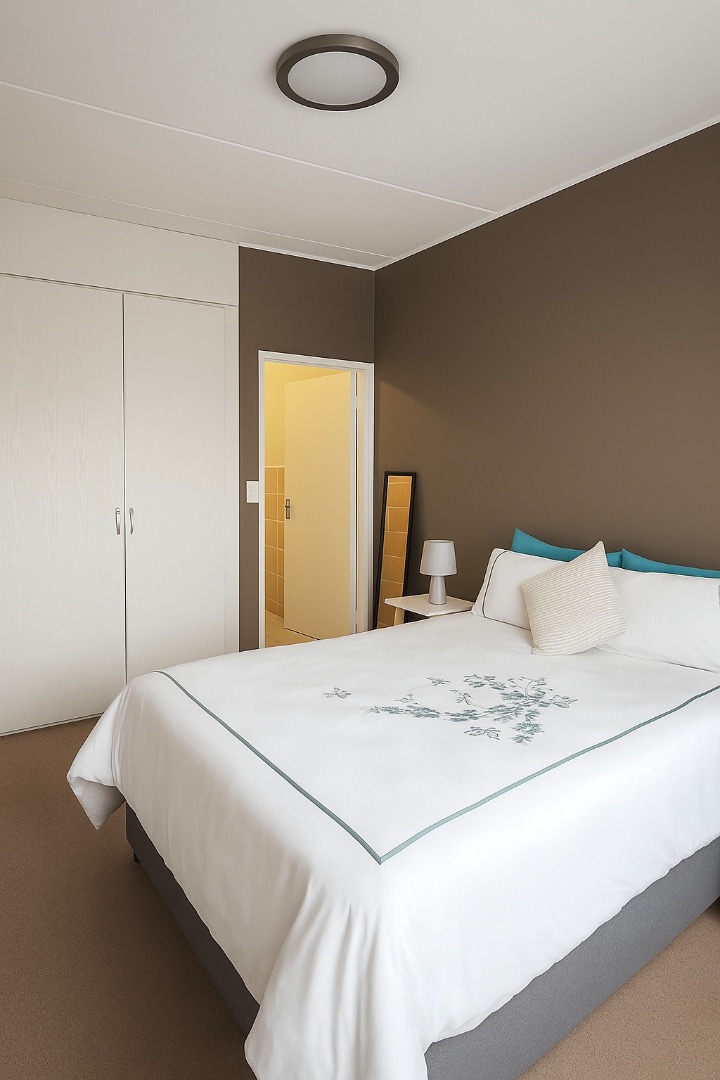 • 1 spacious bedroom with built-in cupboards providing ample storage