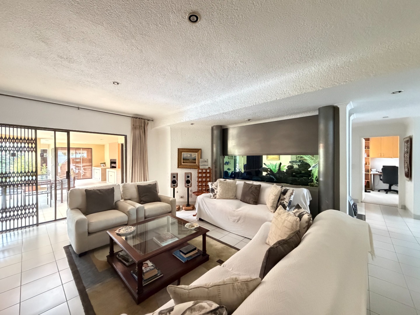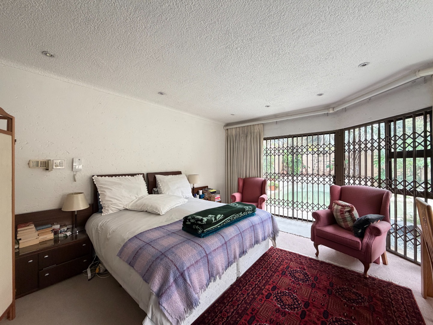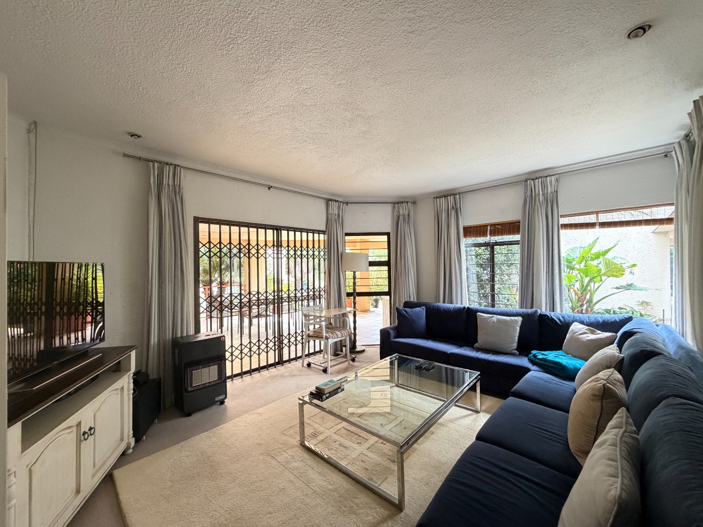 Discover this spacious family residence, perfectly situated on a generous 1032 sqm erf with an expansive 480 sqm floor size, in the sought-after Benmore Gardens, Sandton, South Africa. This multi-level home immediately impresses with its lush, well-maintained tropical garden and manicured lawn, creating a serene and private atmosphere from the moment you arrive. The interior boasts an intelligent layout designed for comfortable living and entertaining. Featuring an inviting entrance hall, two spacious lounges, a dedicated dining room, and a family TV room, there is ample space for every occasion. Abundant natural light floods the living areas, enhancing the open-plan feel. The modern kitchen is a culinary delight, equipped with extensive cream cabinetry, a gas hob, a stainless steel double oven, and a large central island, complemented by a convenient pantry. A dedicated study and a guest toilet add to the home's functionality. This residence offers four comfortable bedrooms, with 2.5 bathrooms, including a private en-suite, ensuring personal space and convenience for all occupants. Outdoor living is a highlight, with a spacious covered patio featuring a built-in braai, perfect for alfresco dining and entertaining. Beyond the patio, a private, fenced swimming pool area awaits, surrounded by the vibrant tropical garden. The property also includes two garages and two additional parking spaces, along with staff quarters, and is pet-friendly. Security is paramount, with comprehensive features including an alarm system, electric fencing, an access gate, intercom, burglar bars, security gates on doors, and a totally walled perimeter. The home also embraces sustainability with solar panels and a battery inverter, providing energy efficiency and peace of mind. Key Features: * 4 Bedrooms, 2.5 Bathrooms (1 en-suite) * Modern Kitchen with Gas Hob & Double Oven * Multiple Spacious Living Areas & Study * Covered Patio with Built-in Braai * Private Swimming Pool & Lush Garden * Double Garage & Additional Parking * Staff Quarters & Guest Toilet * Solar Panels & Battery Inverter * Advanced Security Features