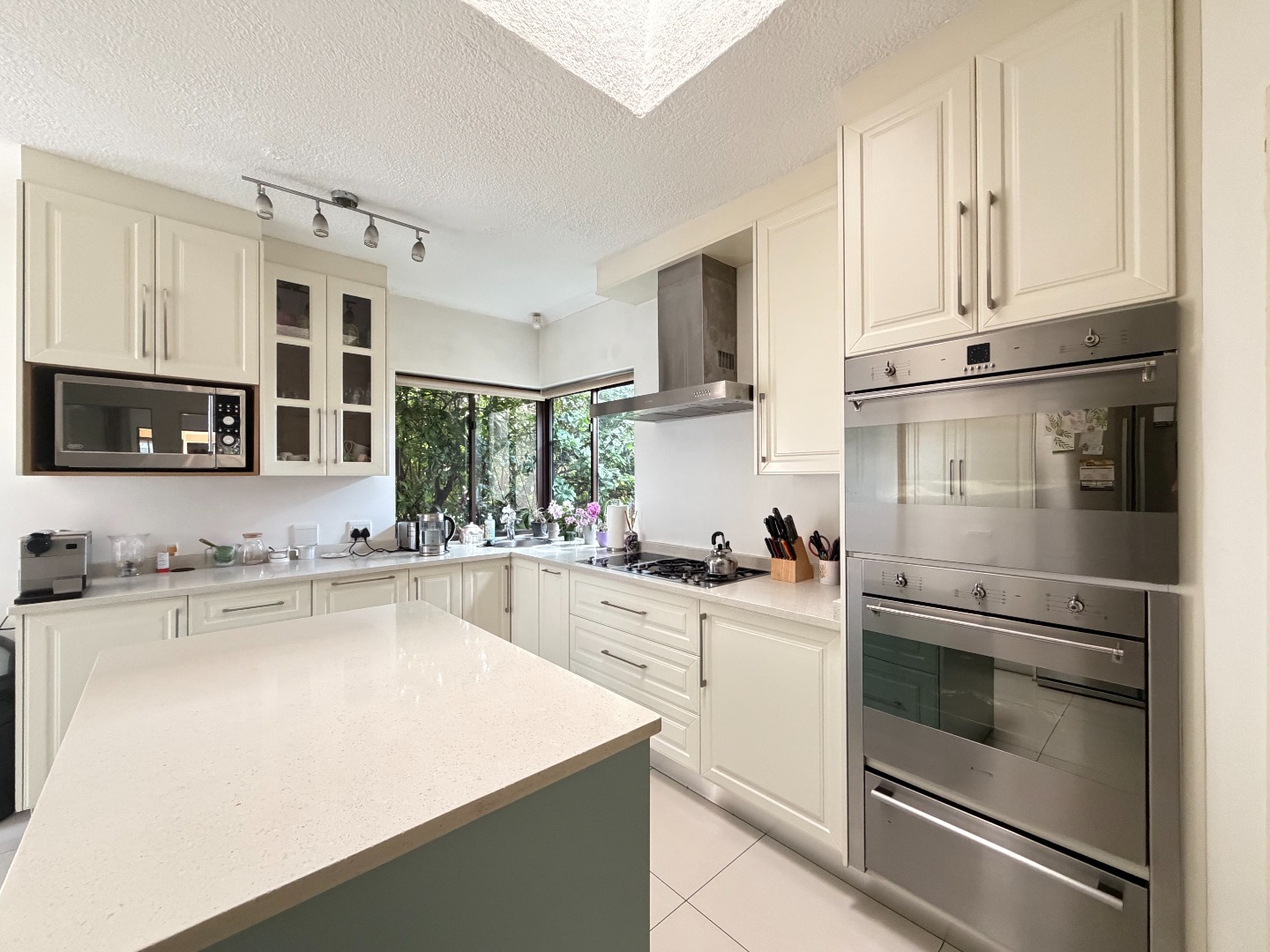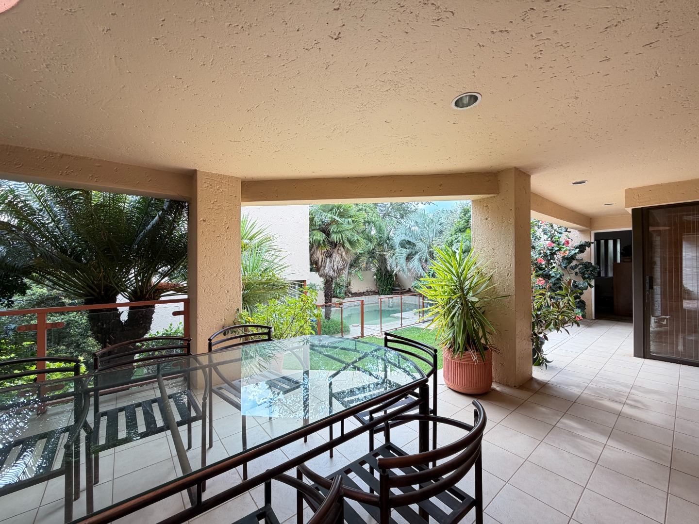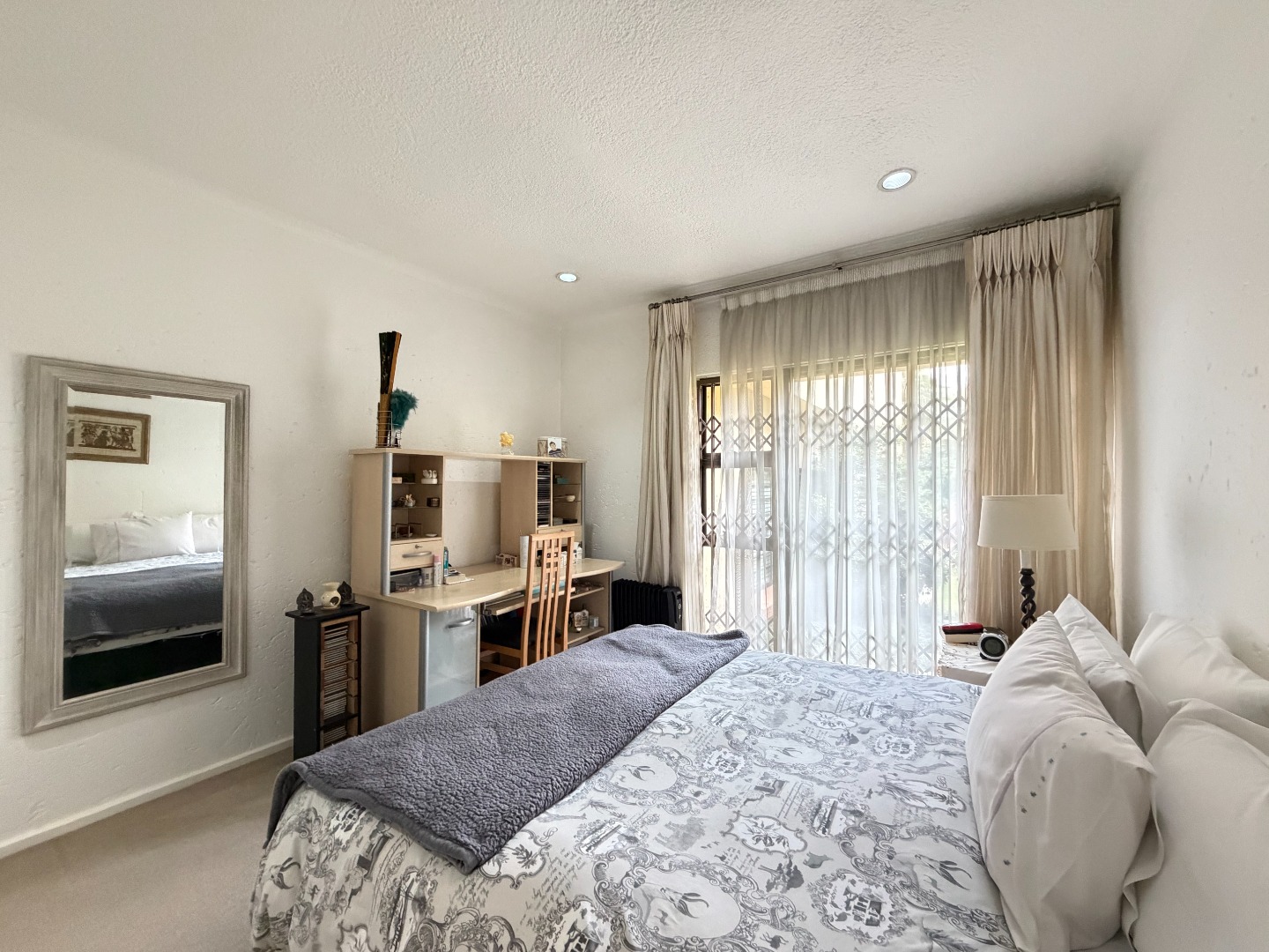 Discover this spacious family residence, perfectly situated on a generous 1032 sqm erf with an expansive 480 sqm floor size, in the sought-after Benmore Gardens, Sandton, South Africa. This multi-level home immediately impresses with its lush, well-maintained tropical garden and manicured lawn, creating a serene and private atmosphere from the moment you arrive. The interior boasts an intelligent layout designed for comfortable living and entertaining. Featuring an inviting entrance hall, two spacious lounges, a dedicated dining room, and a family TV room, there is ample space for every occasion. Abundant natural light floods the living areas, enhancing the open-plan feel. The modern kitchen is a culinary delight, equipped with extensive cream cabinetry, a gas hob, a stainless steel double oven, and a large central island, complemented by a convenient pantry. A dedicated study and a guest toilet add to the home's functionality. This residence offers four comfortable bedrooms, with 2.5 bathrooms, including a private en-suite, ensuring personal space and convenience for all occupants. Outdoor living is a highlight, with a spacious covered patio featuring a built-in braai, perfect for alfresco dining and entertaining. Beyond the patio, a private, fenced swimming pool area awaits, surrounded by the vibrant tropical garden. The property also includes two garages and two additional parking spaces, along with staff quarters, and is pet-friendly. Security is paramount, with comprehensive features including an alarm system, electric fencing, an access gate, intercom, burglar bars, security gates on doors, and a totally walled perimeter. The home also embraces sustainability with solar panels and a battery inverter, providing energy efficiency and peace of mind. Key Features: * 4 Bedrooms, 2.5 Bathrooms (1 en-suite) * Modern Kitchen with Gas Hob & Double Oven * Multiple Spacious Living Areas & Study * Covered Patio with Built-in Braai * Private Swimming Pool & Lush Garden * Double Garage & Additional Parking * Staff Quarters & Guest Toilet * Solar Panels & Battery Inverter * Advanced Security Features