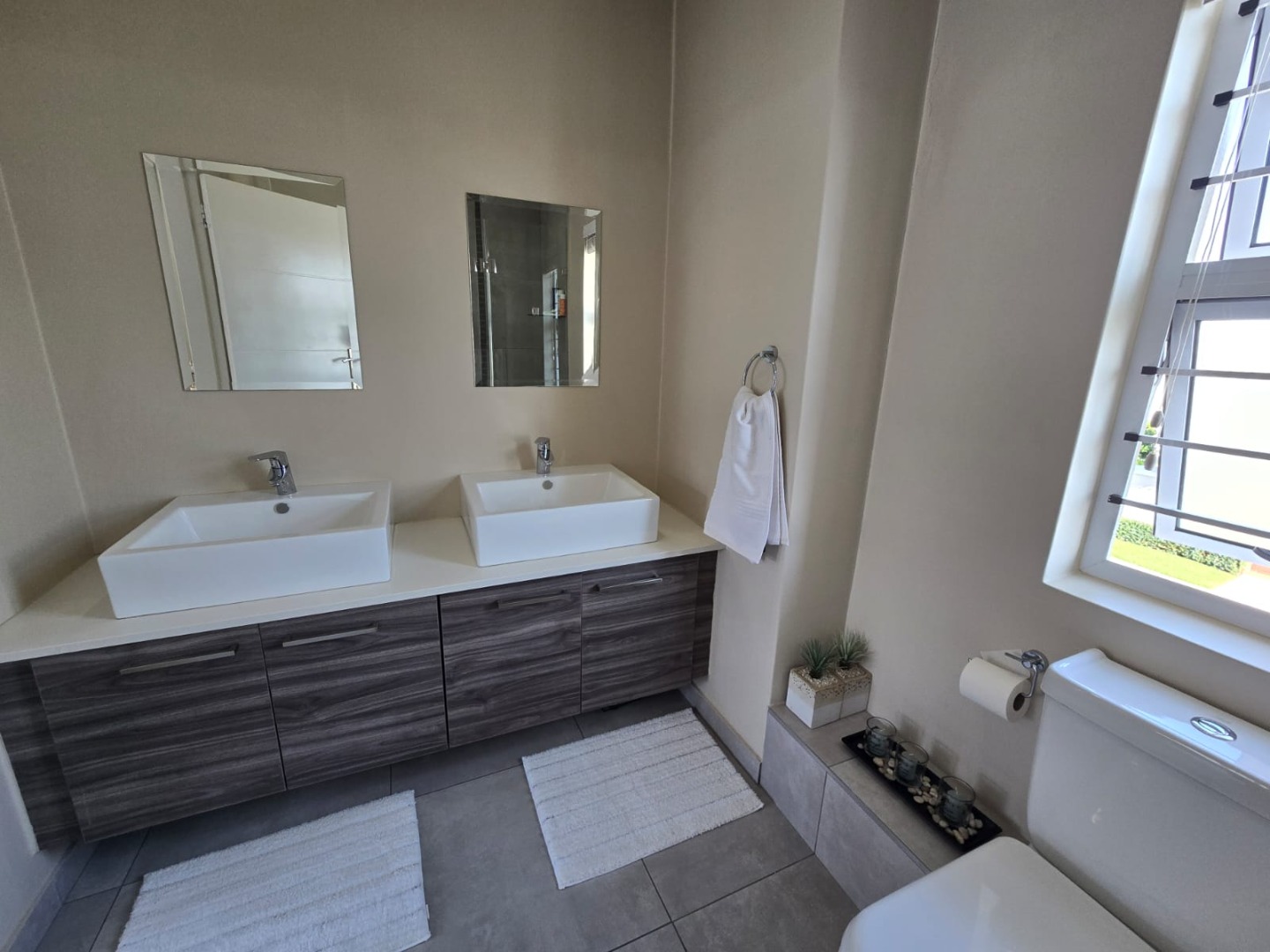 This sophisticated double-storey townhouse boasts three generously sized bedrooms and 2.5 stylish bathrooms, making it ideal for modern family living.