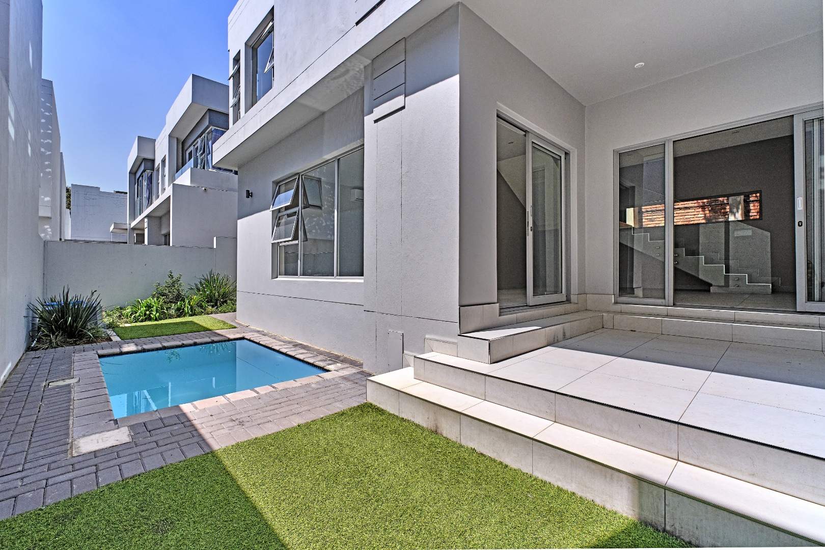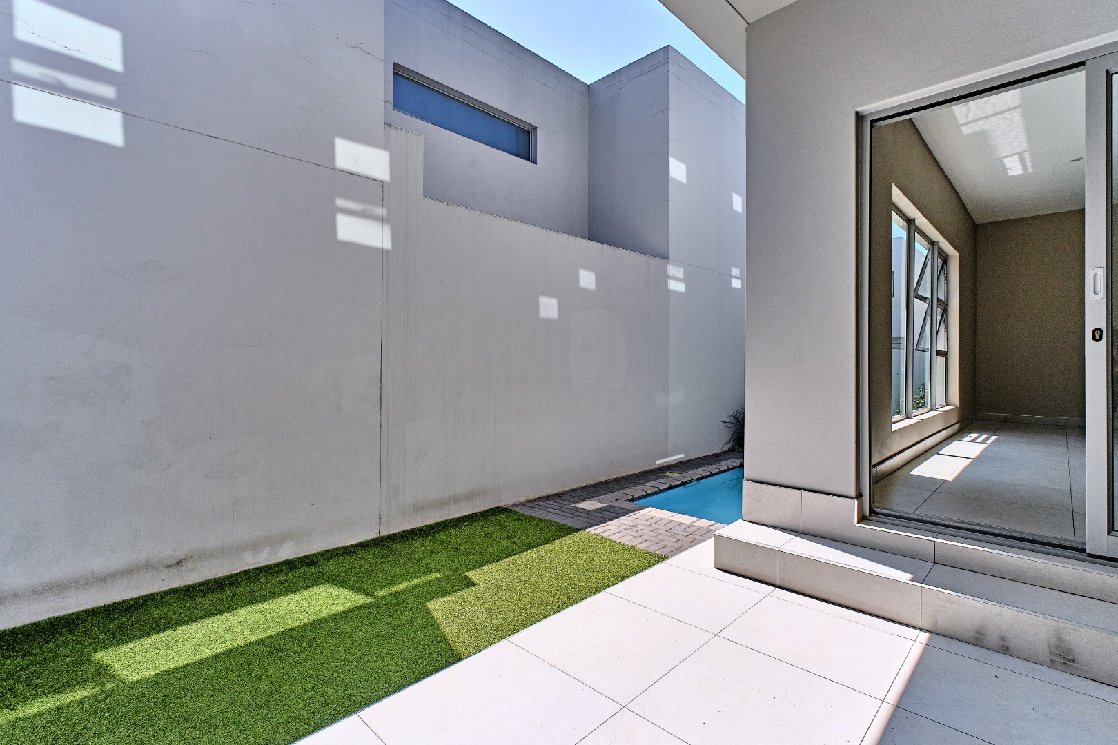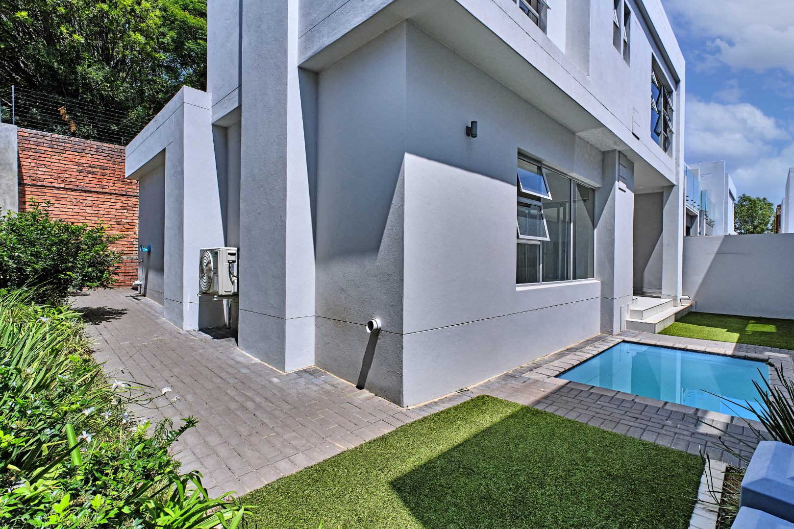 Discover an exquisite sanctuary within a prestigious security estate in Bryanston, Sandton, where sophisticated design meets unparalleled comfort. This magnificent residential offering, spanning 258 sqm of refined living space on a 302 sqm erf, immediately captivates with its elegant kerb appeal and meticulously crafted interiors. An inviting entrance hall ushers you into an open-plan layout, seamlessly connecting expansive lounge and a dedicated dining room, perfect for both grand entertaining and intimate family moments. The modern kitchen, equipped with premium finishes, forms the heart of this luxurious home, complemented by special doors, lighting, and air conditioning throughout.
