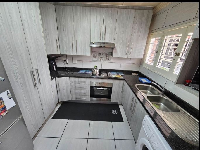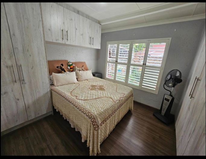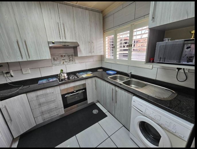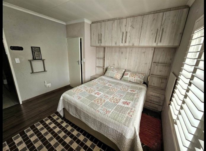 This inviting 3-bedroom, 2-bathroom residence is nestled within a secure complex in the sought-after Sandton suburb of Buccleuch. Designed for comfortable living, the home features a well-appointed kitchen, a dedicated dining room, and a spacious lounge, providing ample space for relaxation and entertaining. The layout promotes a seamless flow, ideal for modern lifestyles. The property offers three comfortable bedrooms, each thoughtfully designed with extensive built-in cupboards and modern wood-look laminate flooring, ensuring ample storage and a contemporary aesthetic. Large windows fitted with stylish plantation shutters provide privacy and control natural light. The two modern bathrooms include a main en-suite, featuring sleek fixtures, walk-in showers with glass partitions, and one with a separate bathtub, catering to both convenience and luxury. Step outside to discover a private, brick-paved courtyard, a low-maintenance outdoor oasis adorned with lush potted greenery, perfect for quiet enjoyment or intimate gatherings. The property includes a covered carport and two individual garages, providing secure parking for two vehicles and additional storage space. The generous 600 sqm erf offers potential for further landscaping or outdoor enhancements, complementing the 91 sqm floor size. Security is paramount within this complex, featuring 24-hour security, a security post, an alarm system, and burglar bars, ensuring peace of mind for residents. Located in Sandton, Buccleuch offers convenient access to major transport routes, business hubs, and a variety of amenities, making it an ideal location for discerning homeowners. Key Features: * 3 Bedrooms, 2 Bathrooms (1 en-suite) * 1 Lounge, 1 Dining Room, 1 Kitchen * Private Paved Courtyard & Garden * 2 Garages, 2 Parking Spaces * Built-in Cupboards & Laminate Flooring * Modern Bathrooms with Walk-in Showers & Bathtub * 24-Hour Security, Alarm System & Burglar Bars * Secure Complex Living in Sandton