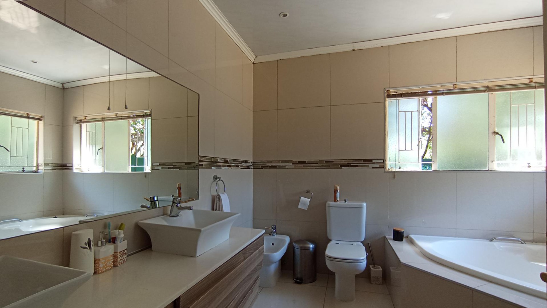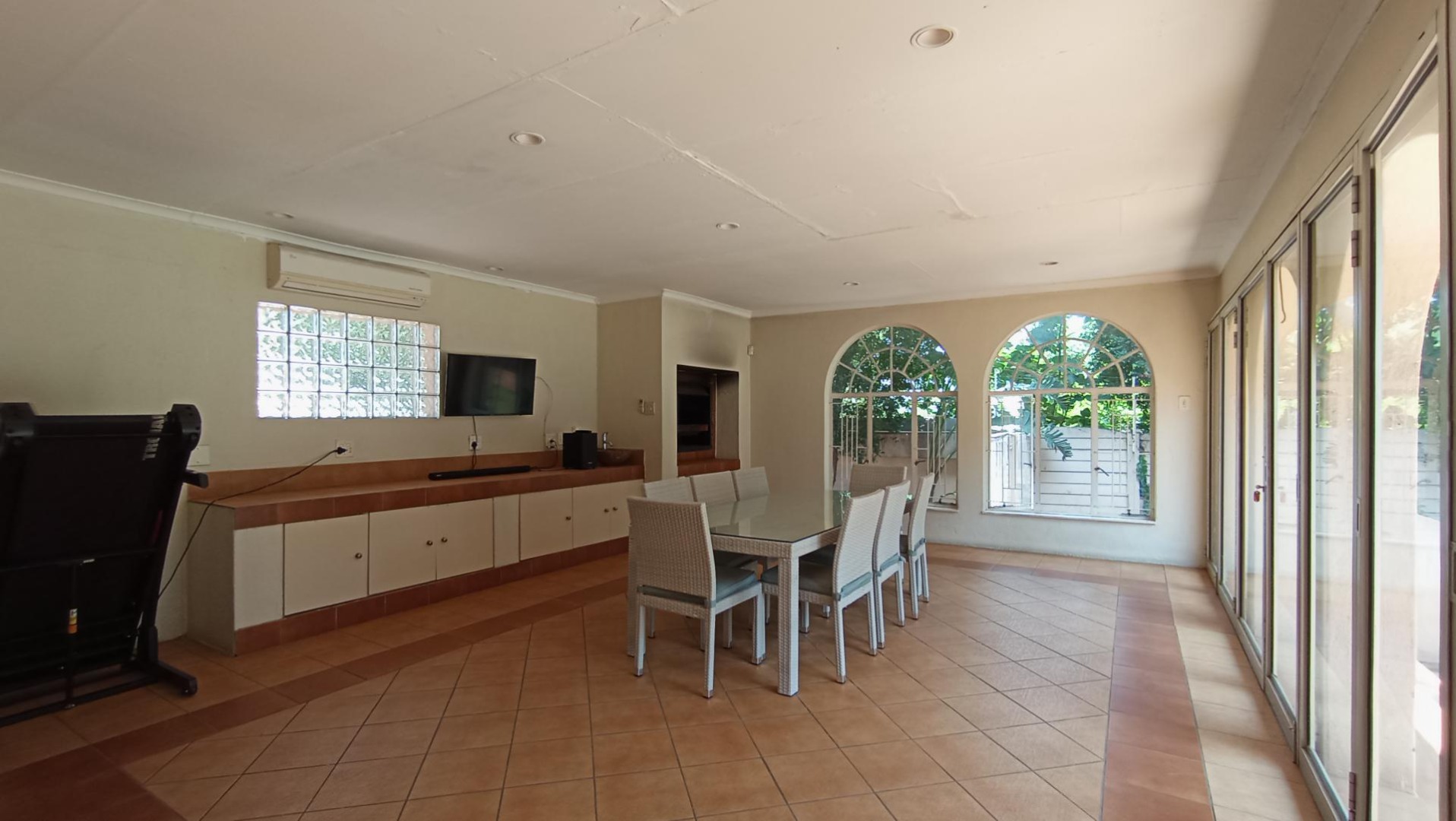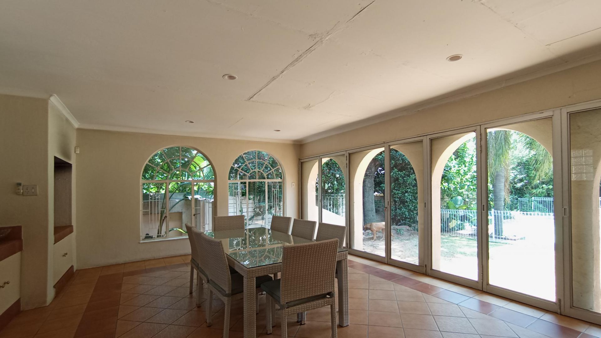 The expansive covered patio with a built-in braai and jacuzzi is perfect for hosting friends and family. Step outside to a sparkling pool and a well-established garden, both of which could shine with a little TLC.