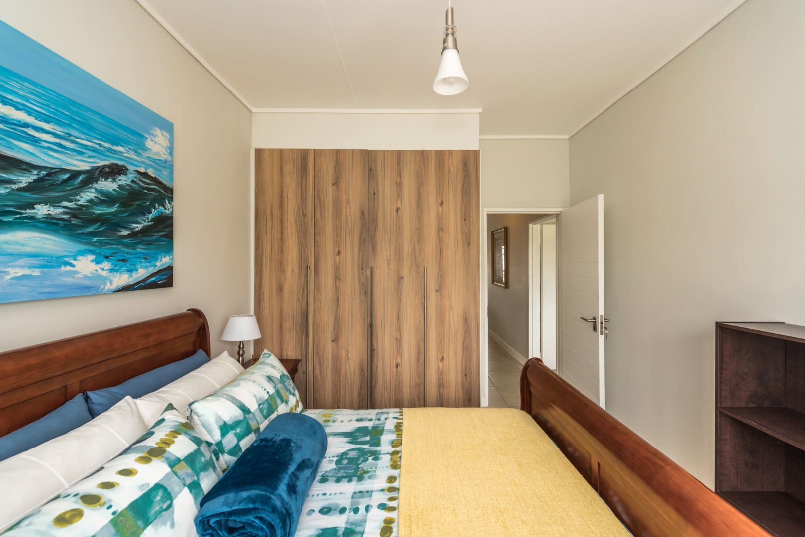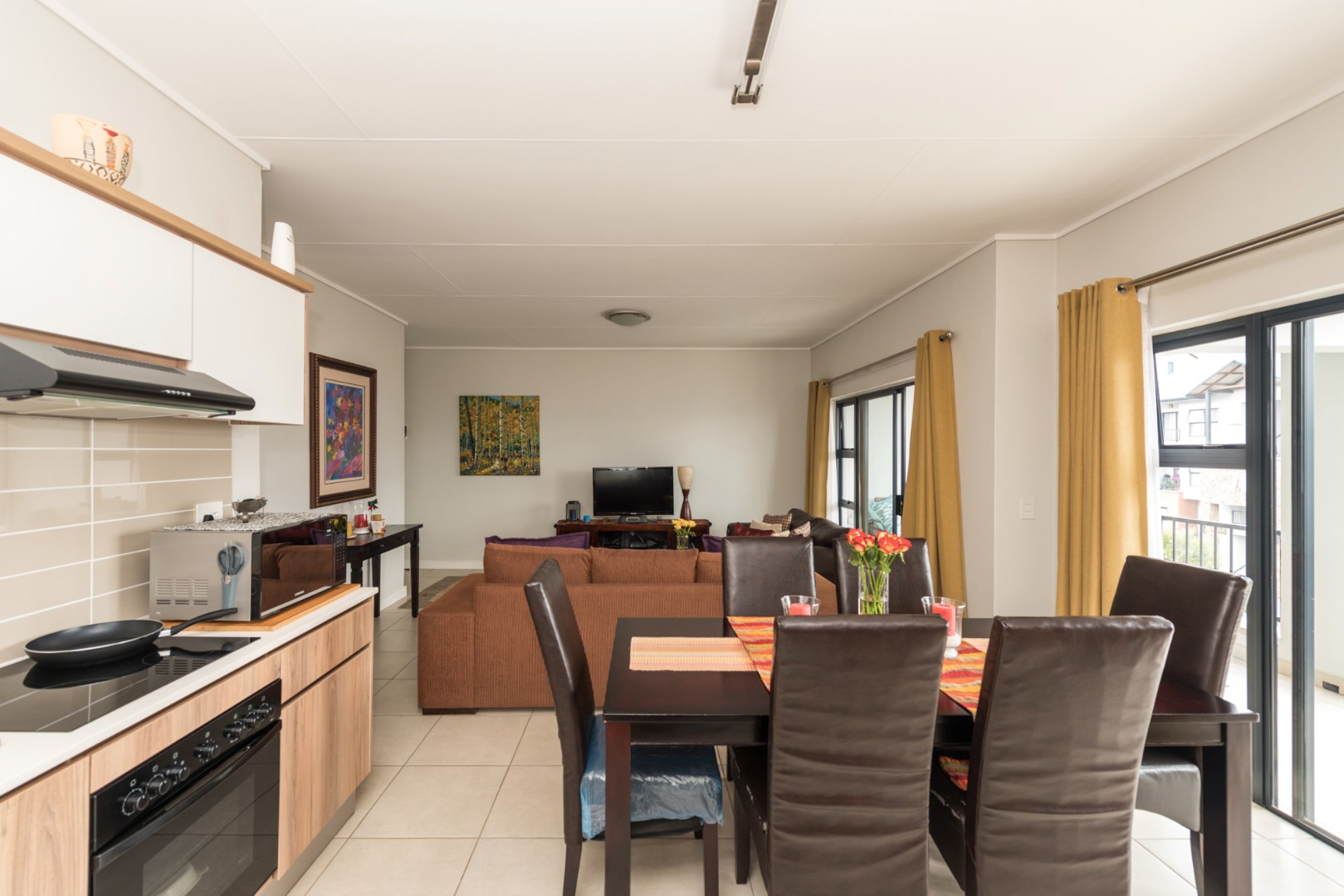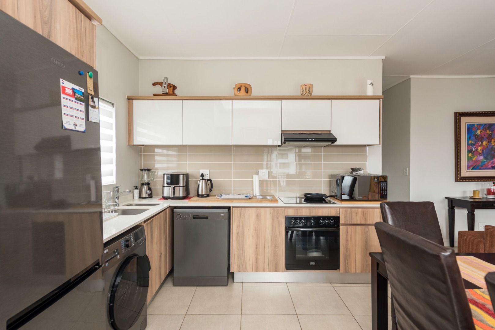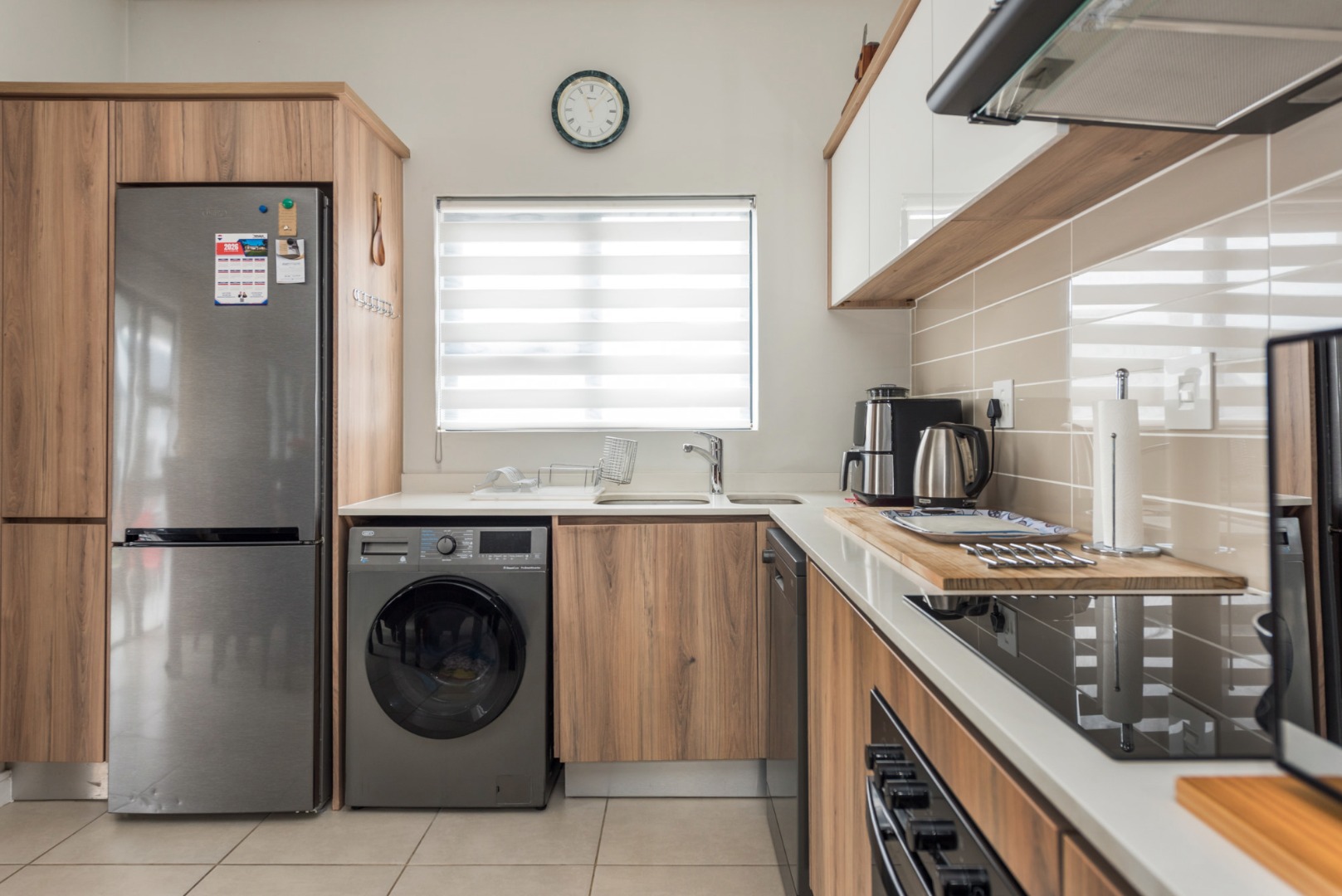 Discover deluxe modern living in this stylish 2-bedroom, 2-bathroom apartment located in a secure complex in Linbro Park, Sandton. Spanning 106 square meters, this residence offers a contemporary open-plan design, seamlessly connecting the lounge, dining area, and a sleek kitchen. The kitchen is a highlight, featuring two-tone cabinetry, a tiled backsplash, and integrated appliances including an oven, hob, extractor fan, dishwasher, and washing machine, ensuring both functionality and aesthetic appeal.